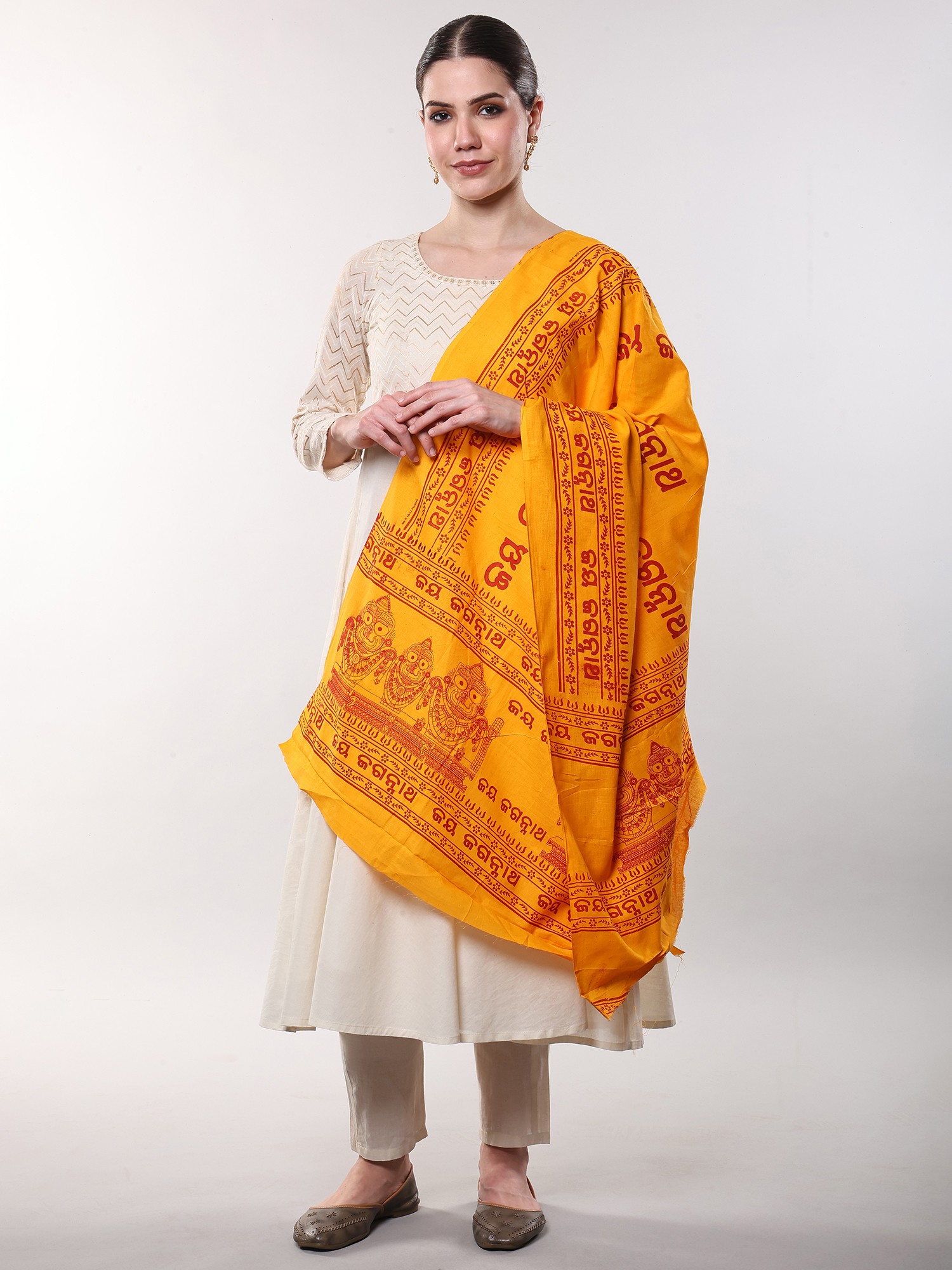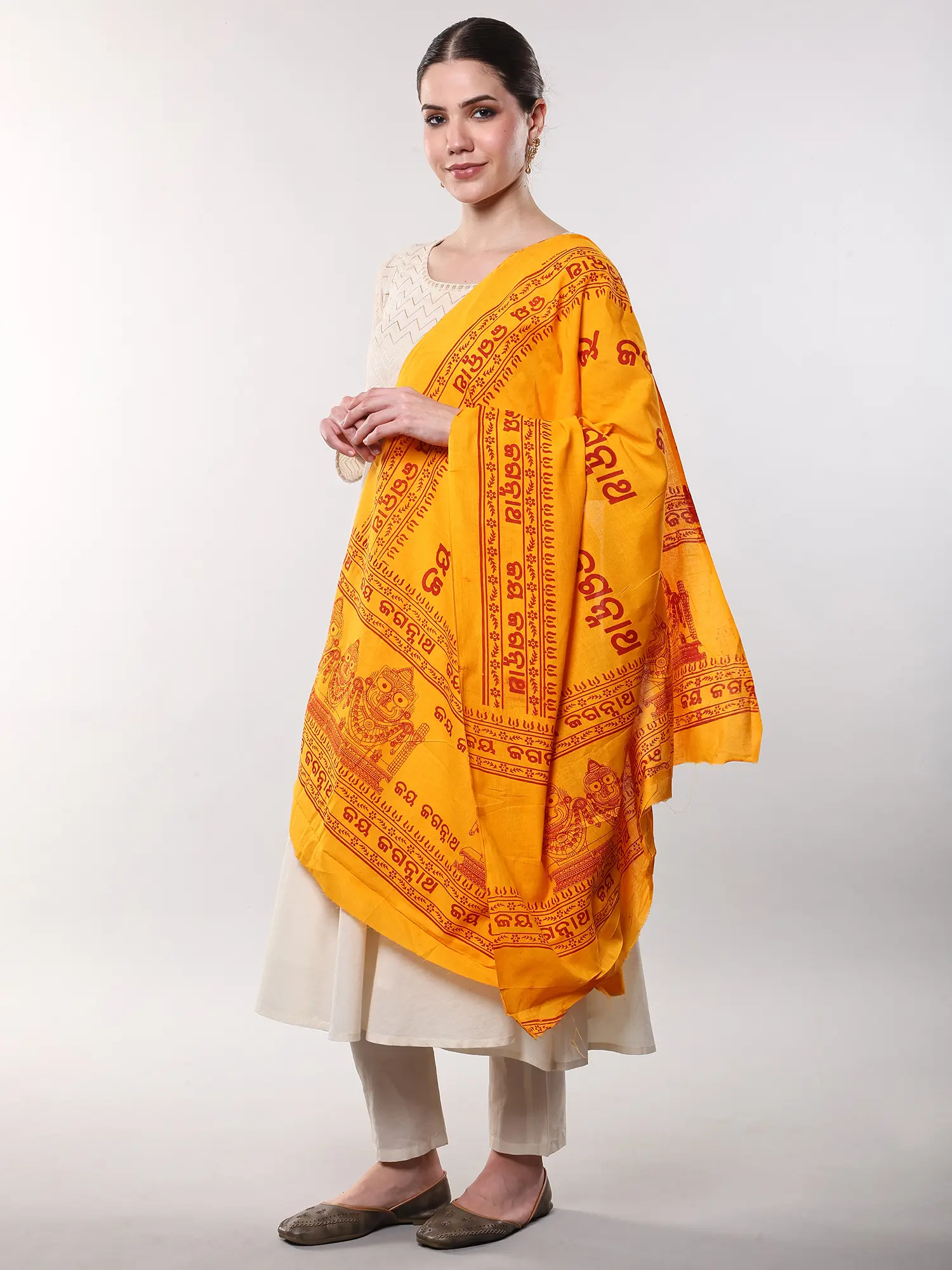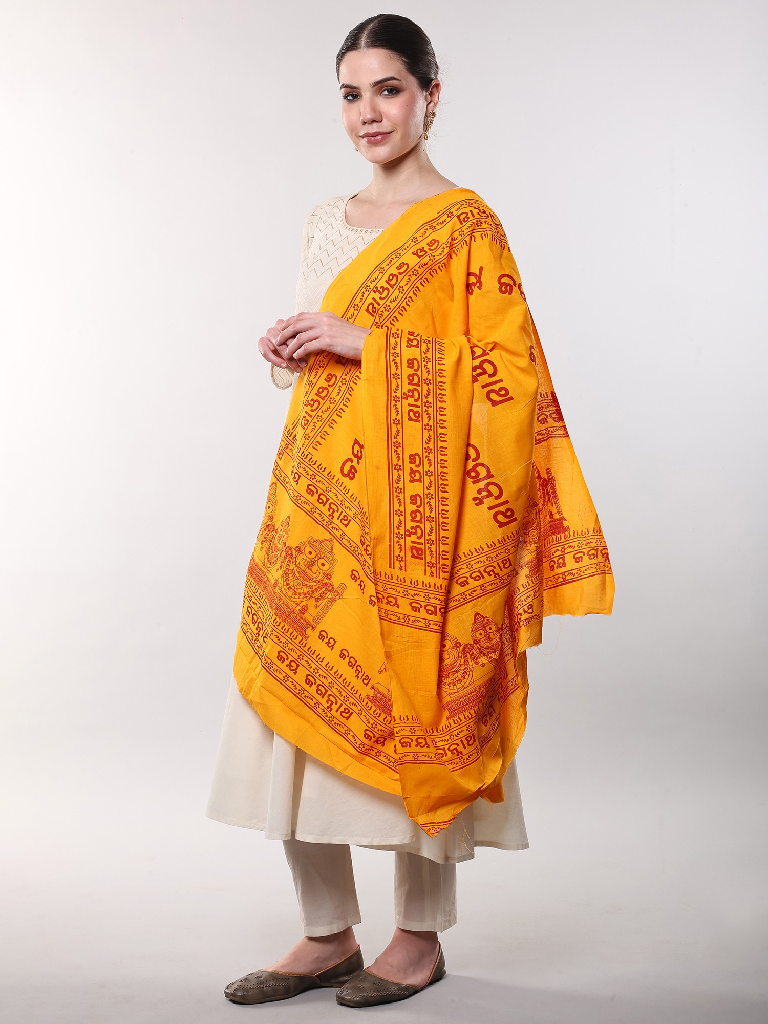 Yellow Hindu Dharma Prayer Shawl with Large Printed Om