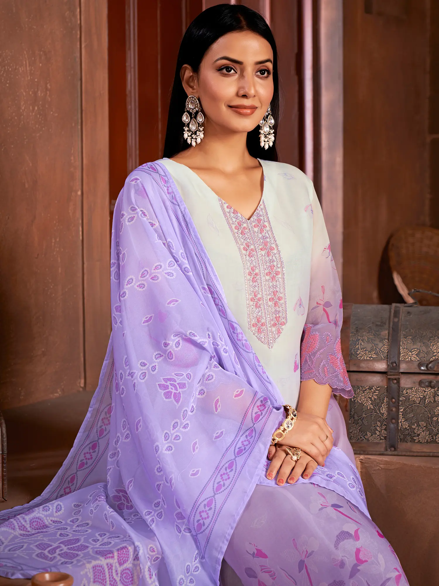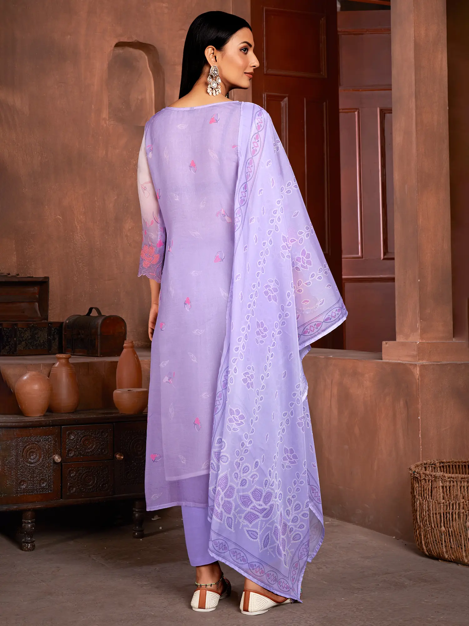 Digital Print & Floral Sequins Embroidery Pure Organza Salwar Suit with Dupatta