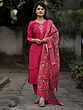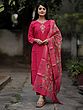 Watermelon-Pink Heavy Digital Printed Anarkali Style Fully Flared Pure Muslin Kurti And Bottom With Dupatta