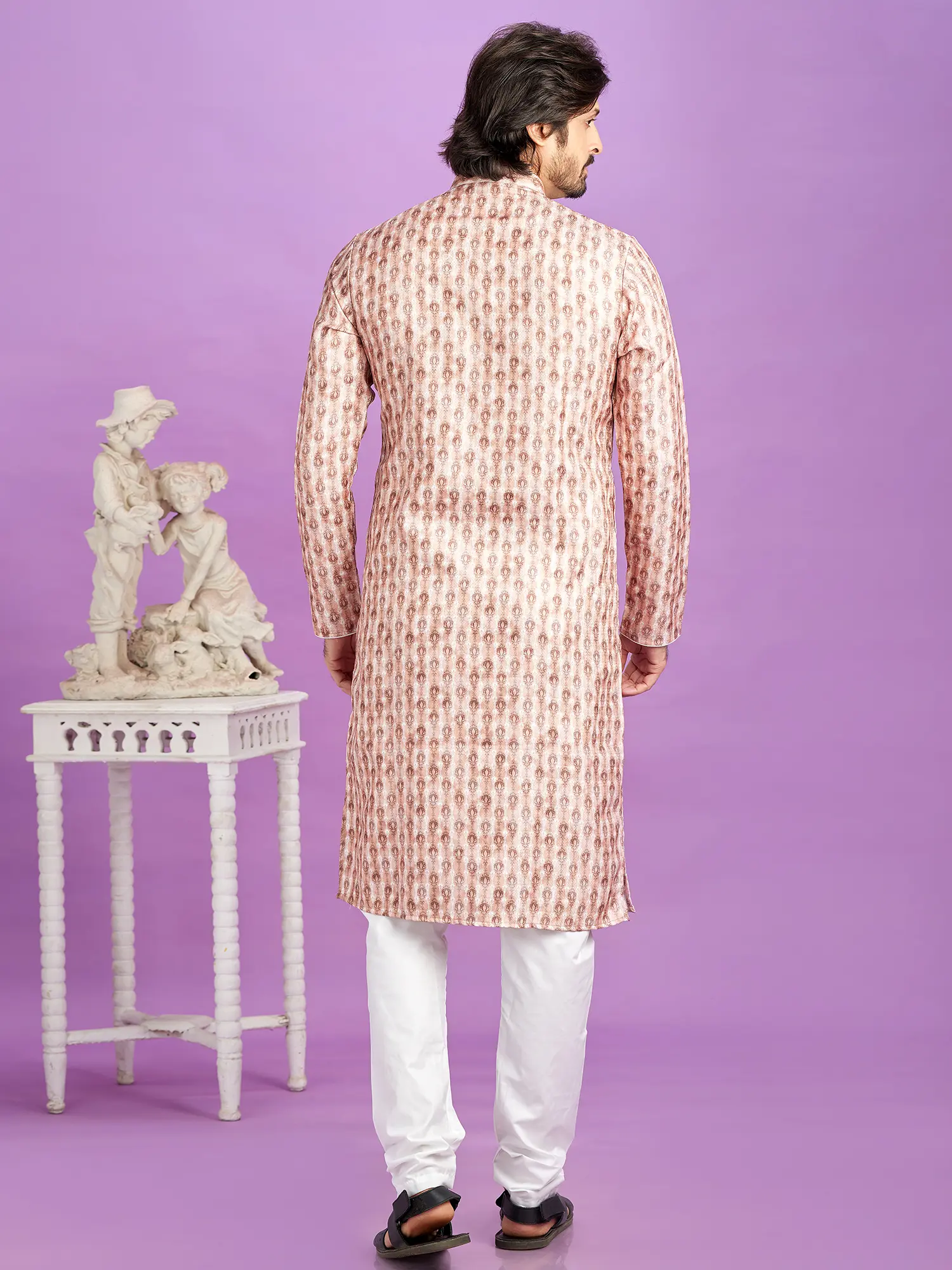 Peacock Motifs Thread And Sequins Work Mandarin Collar Pure Viscose Rayon Kurta For Wedding Occasion