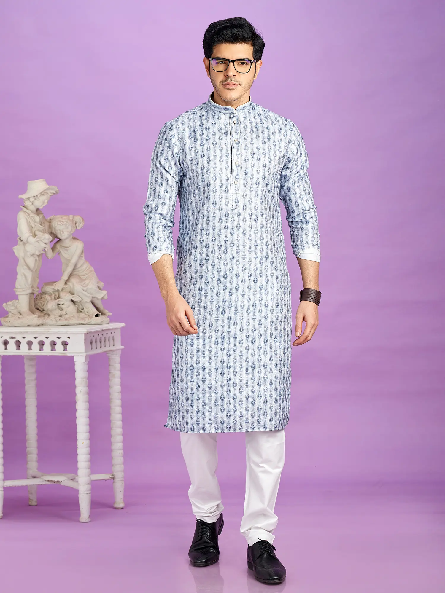 Viscose Silk Thread Sequins Work Attractive Mandarin Collar Festive Wear Kurta