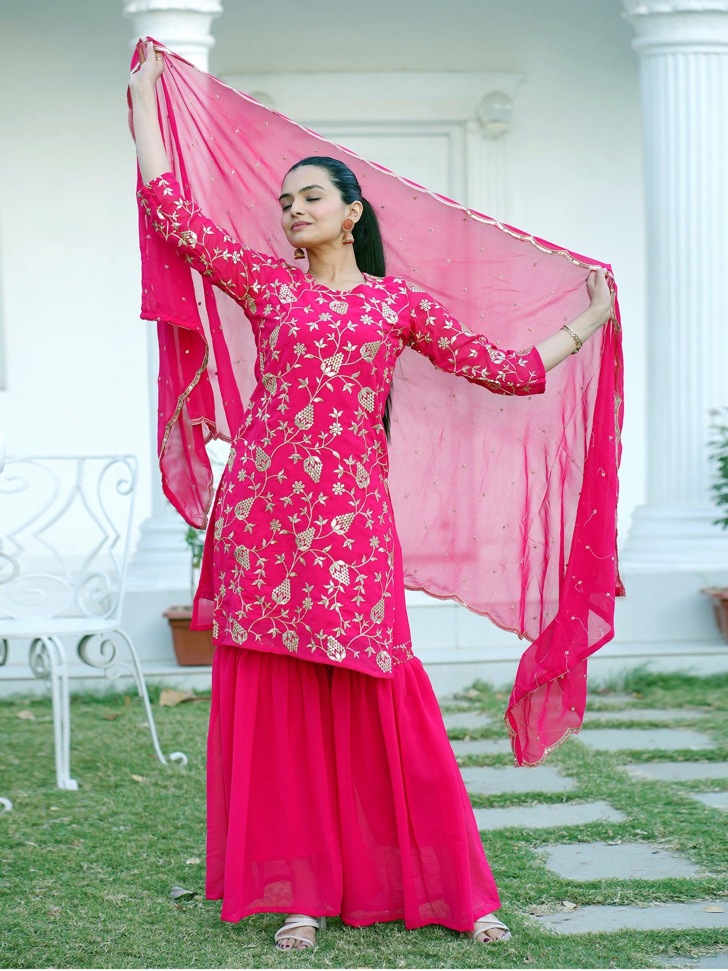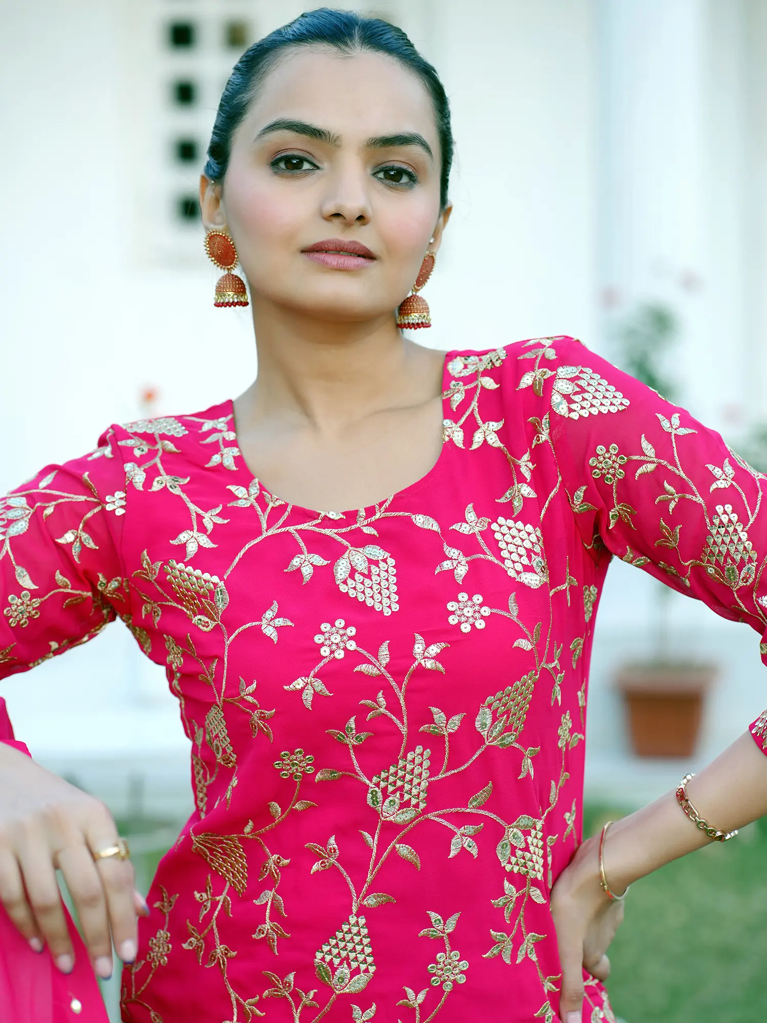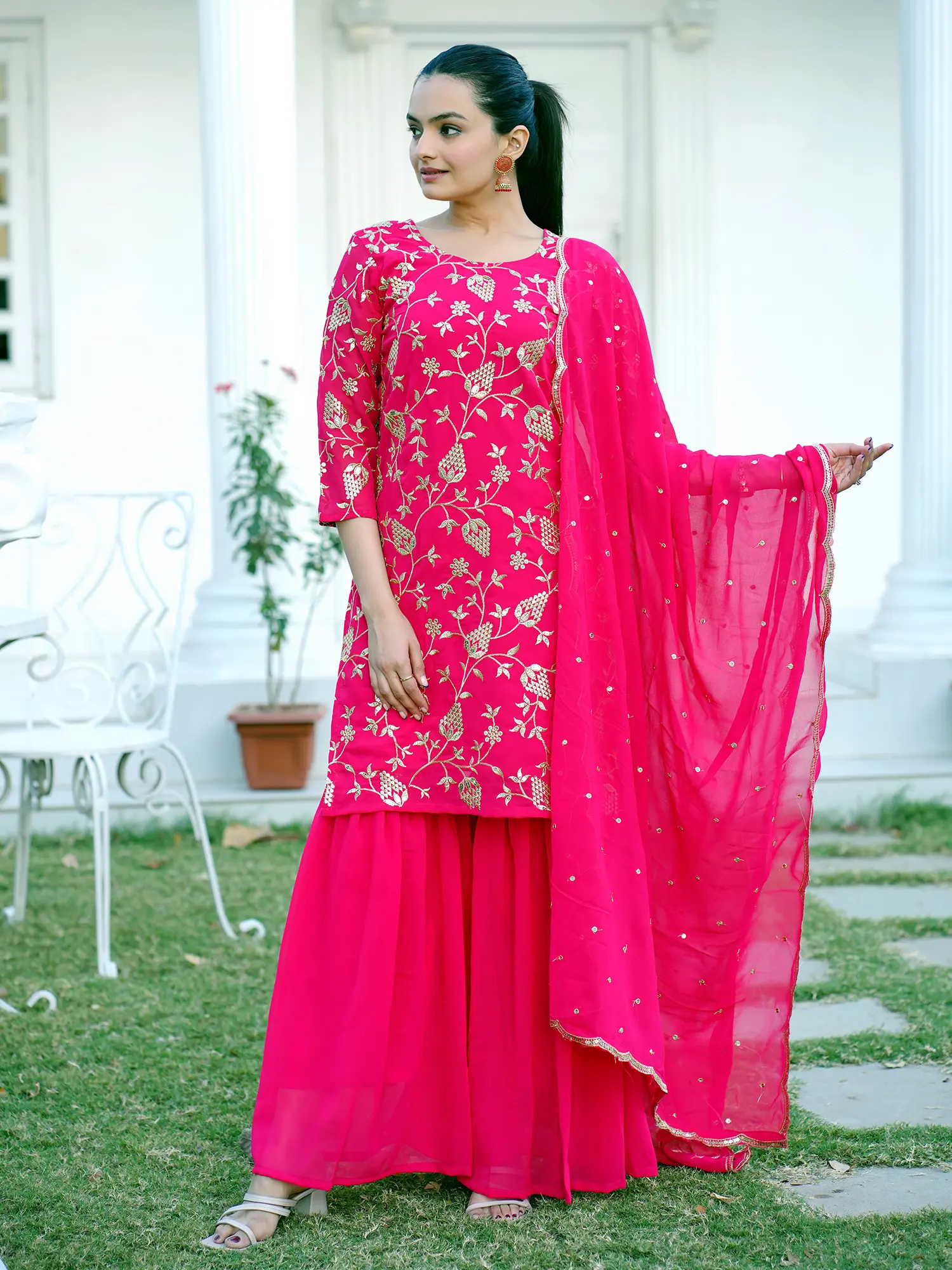 Three-Piece Salwar Kameez with Dupatta and Heavy Embroidered Floral Motifs