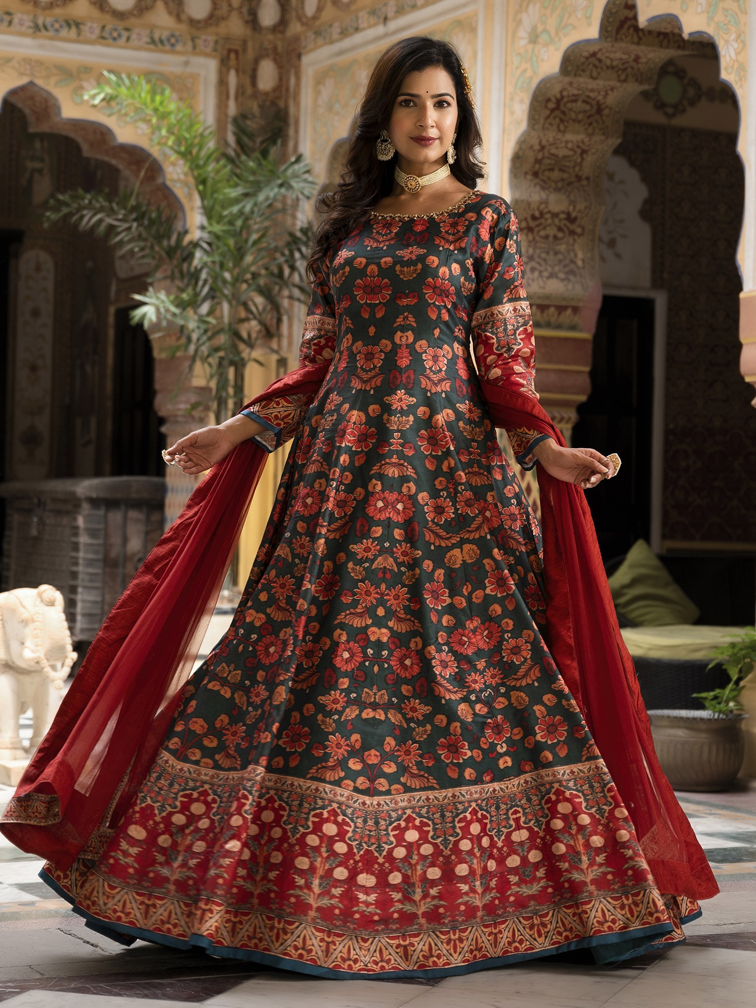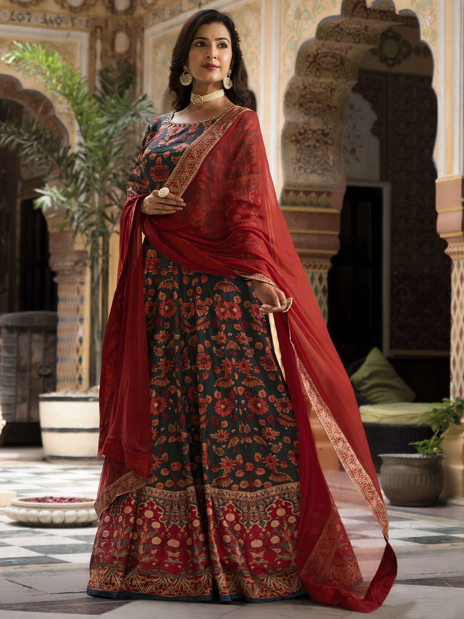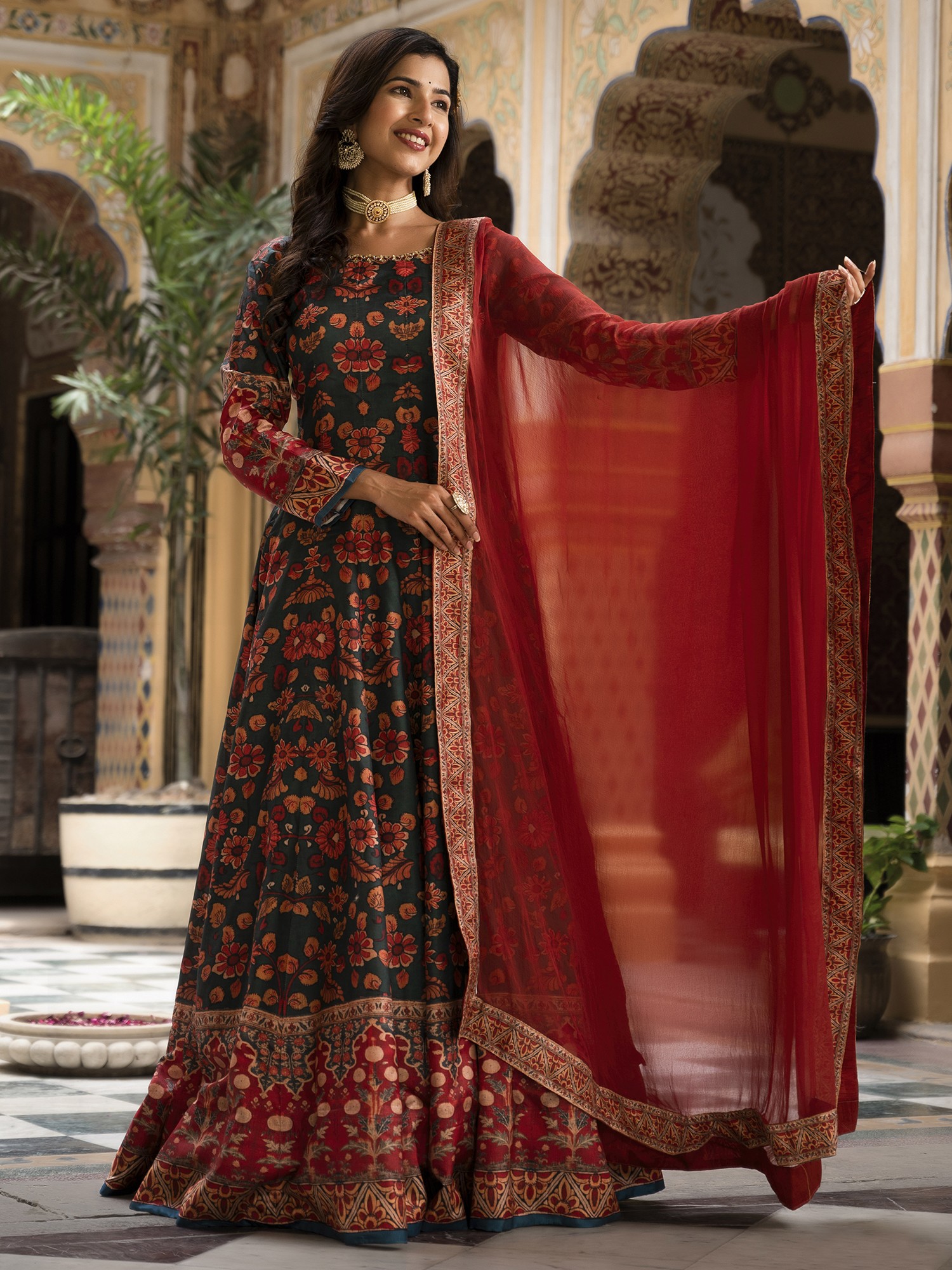 Afterglow Floral Zari Woven Organza Kameez with Cotton Salwar and Dupatta