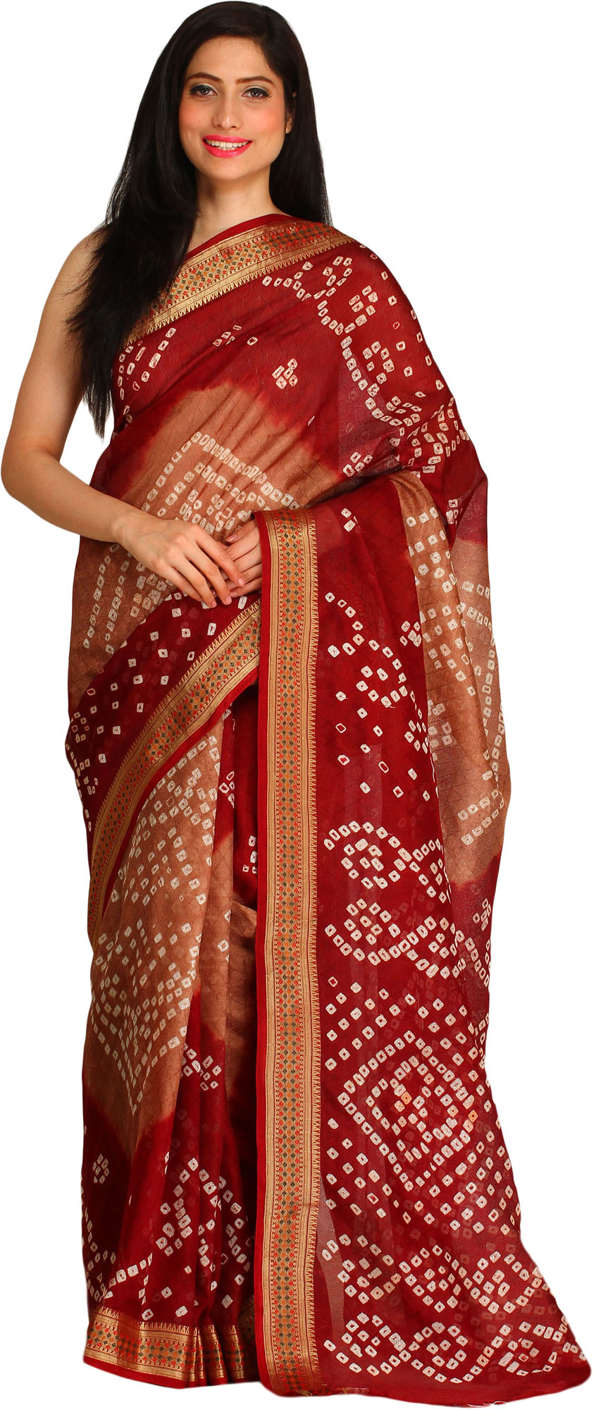 Dual-Shaded Georgette Bandhani Saree with Zari Woven Floral Jaal from Gujarat