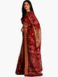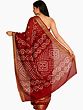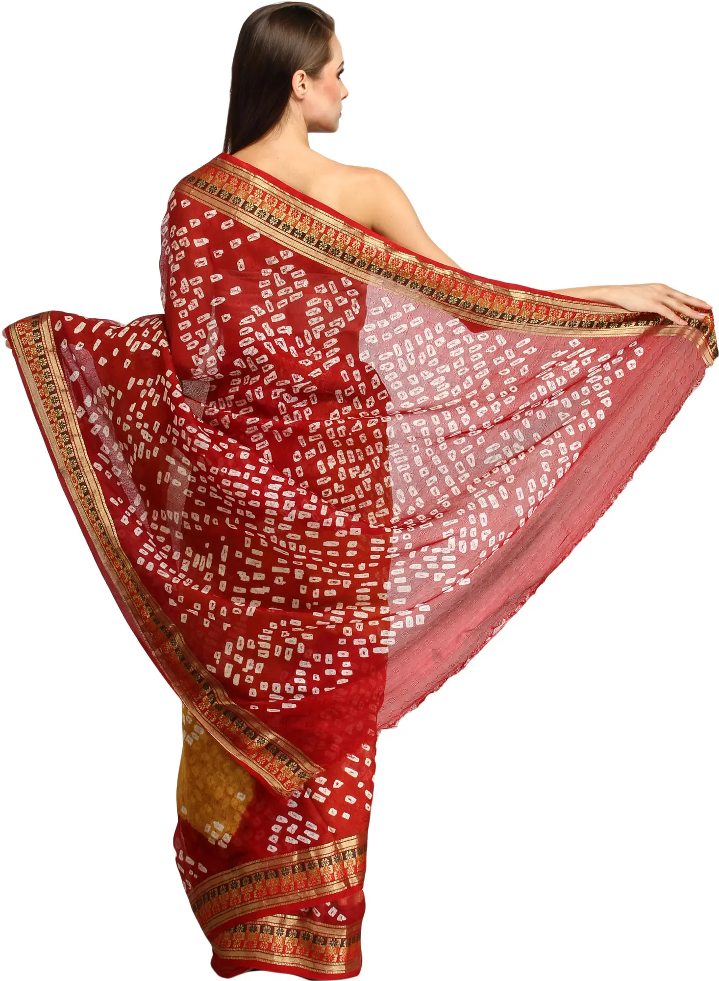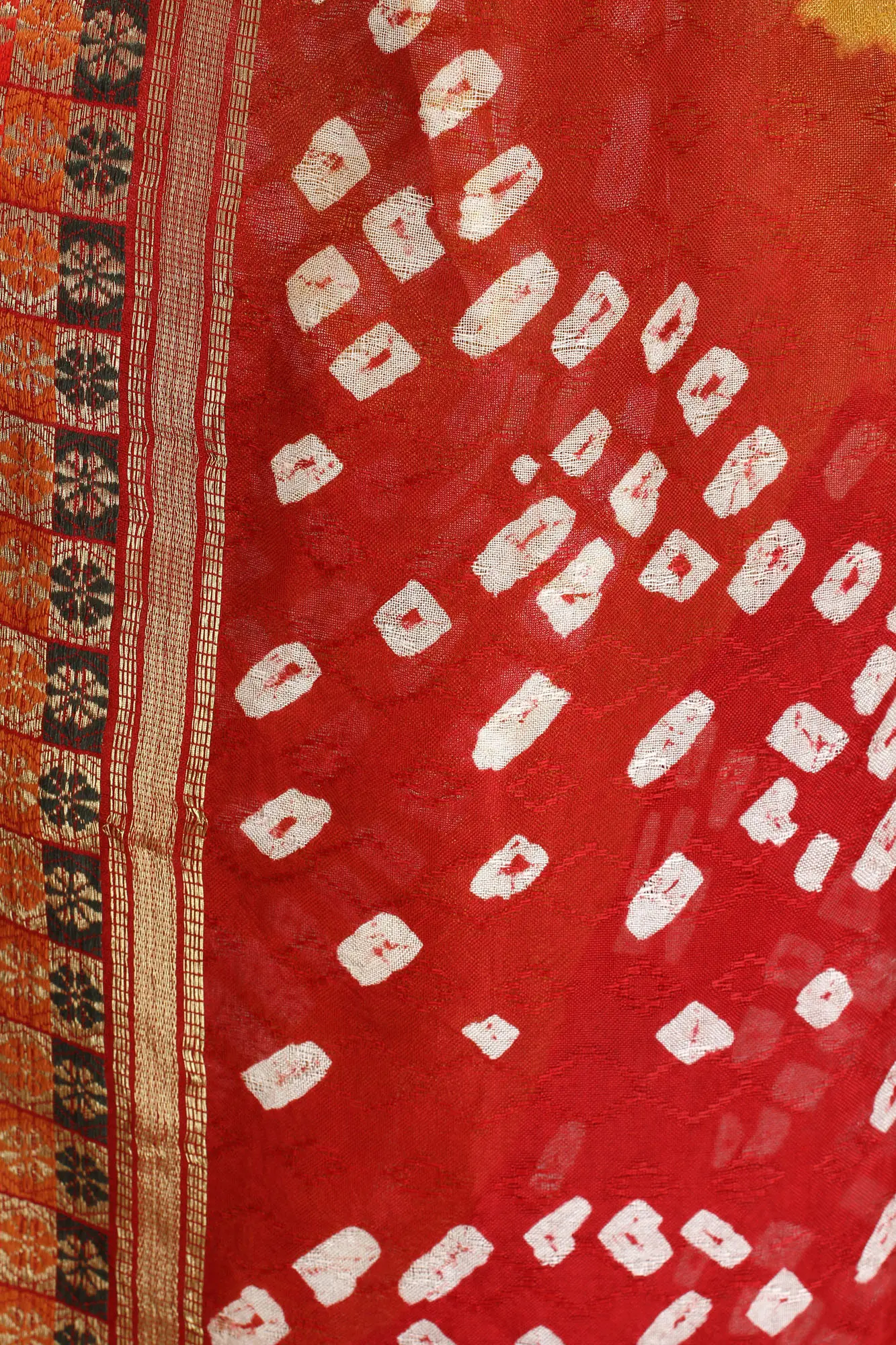 Tango-Red Georgette Bandhani Saree with Zari Woven Floral-Paisley jaal from Gujarat
