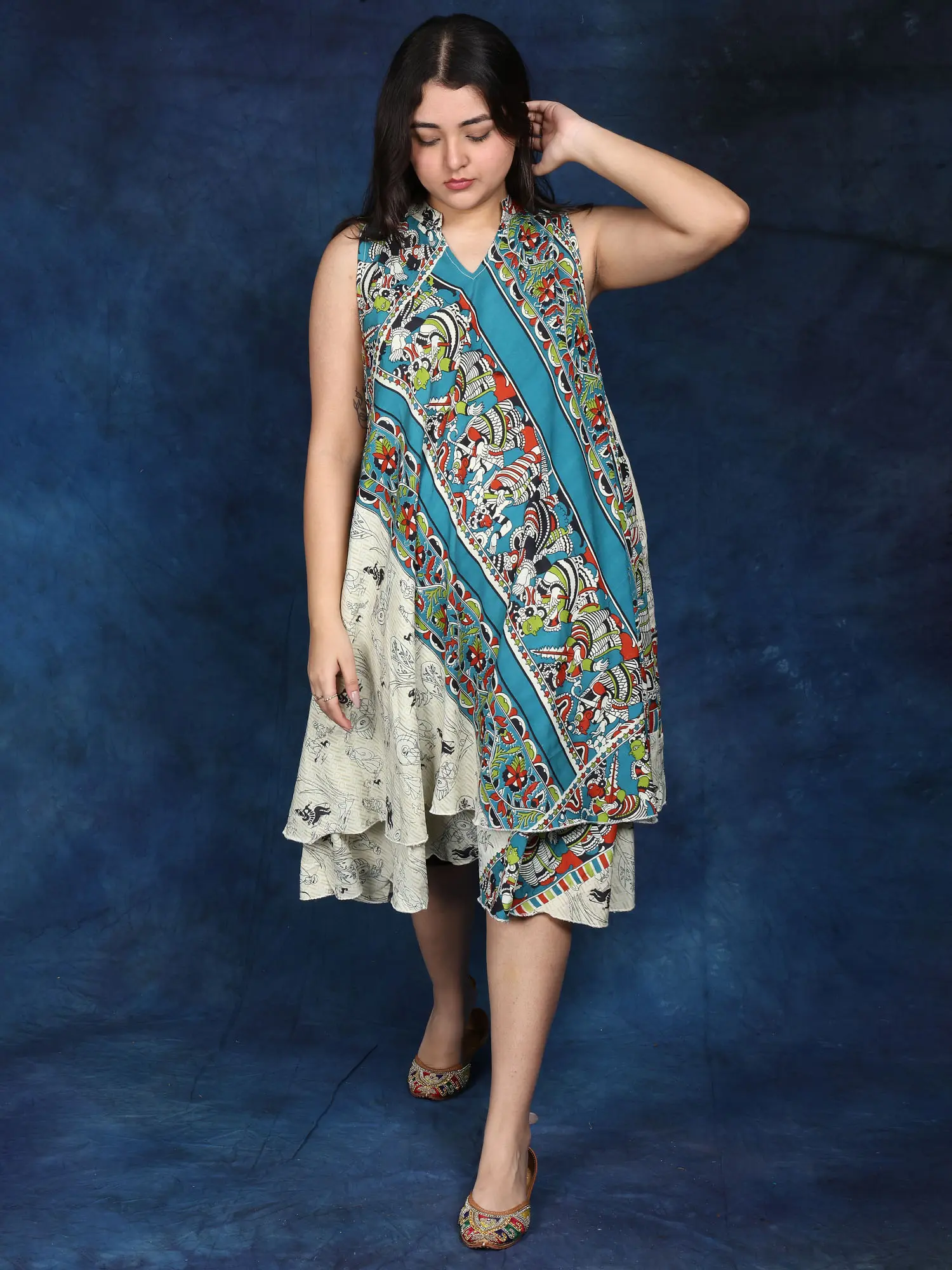 Ivory and Midnight-blue Barbie Dress with Ikat Print