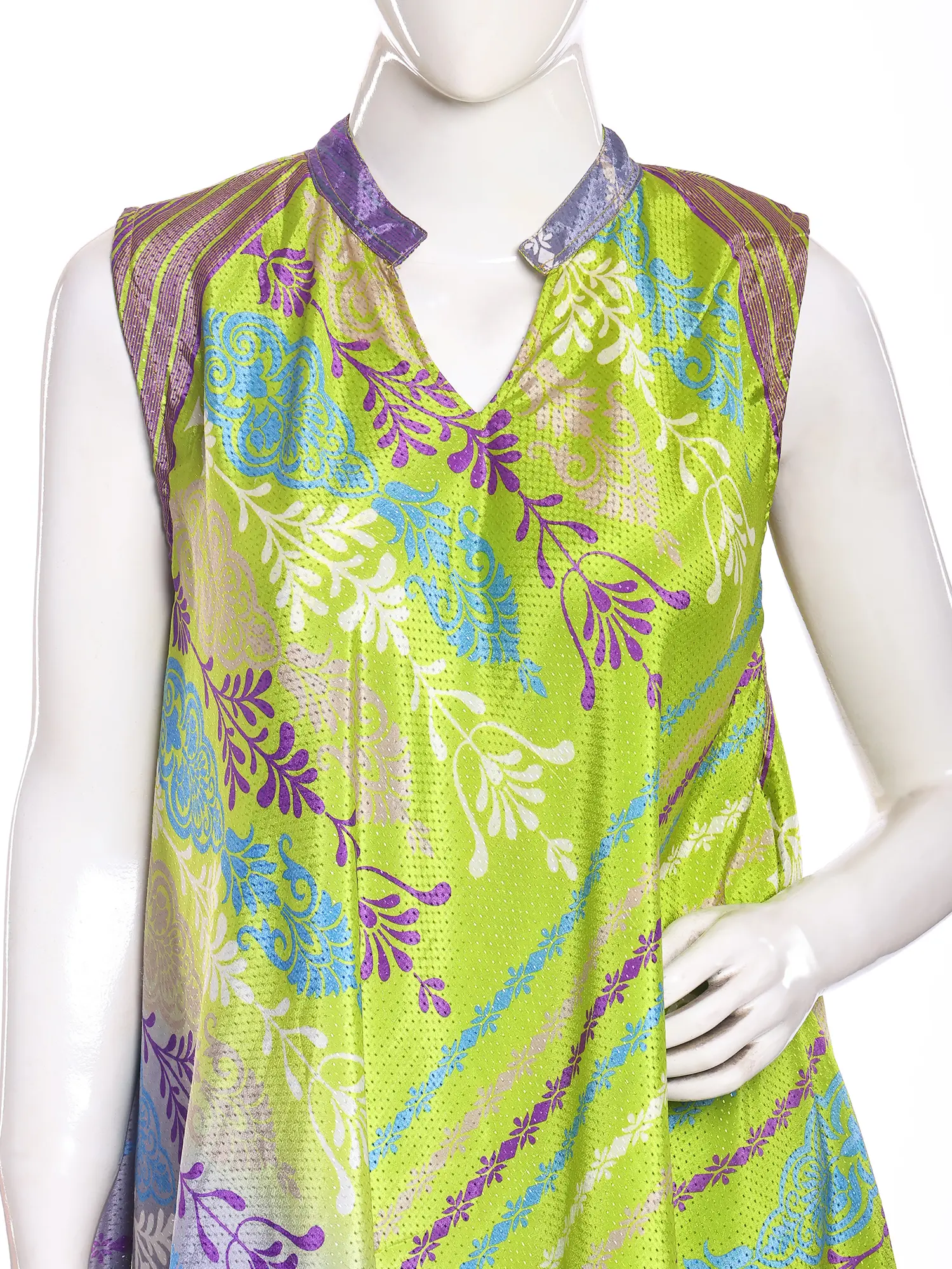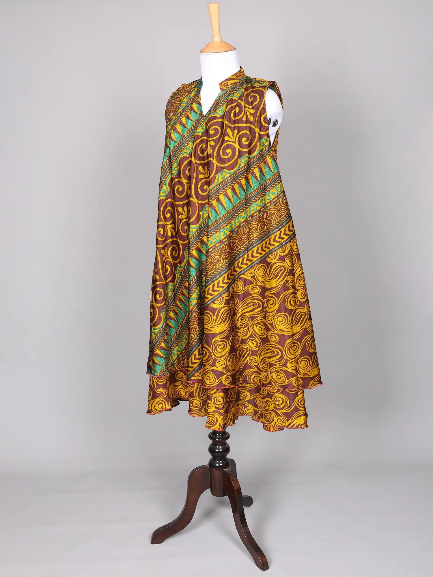 Bud-Green Printed Barbie Dress with Patchwork
