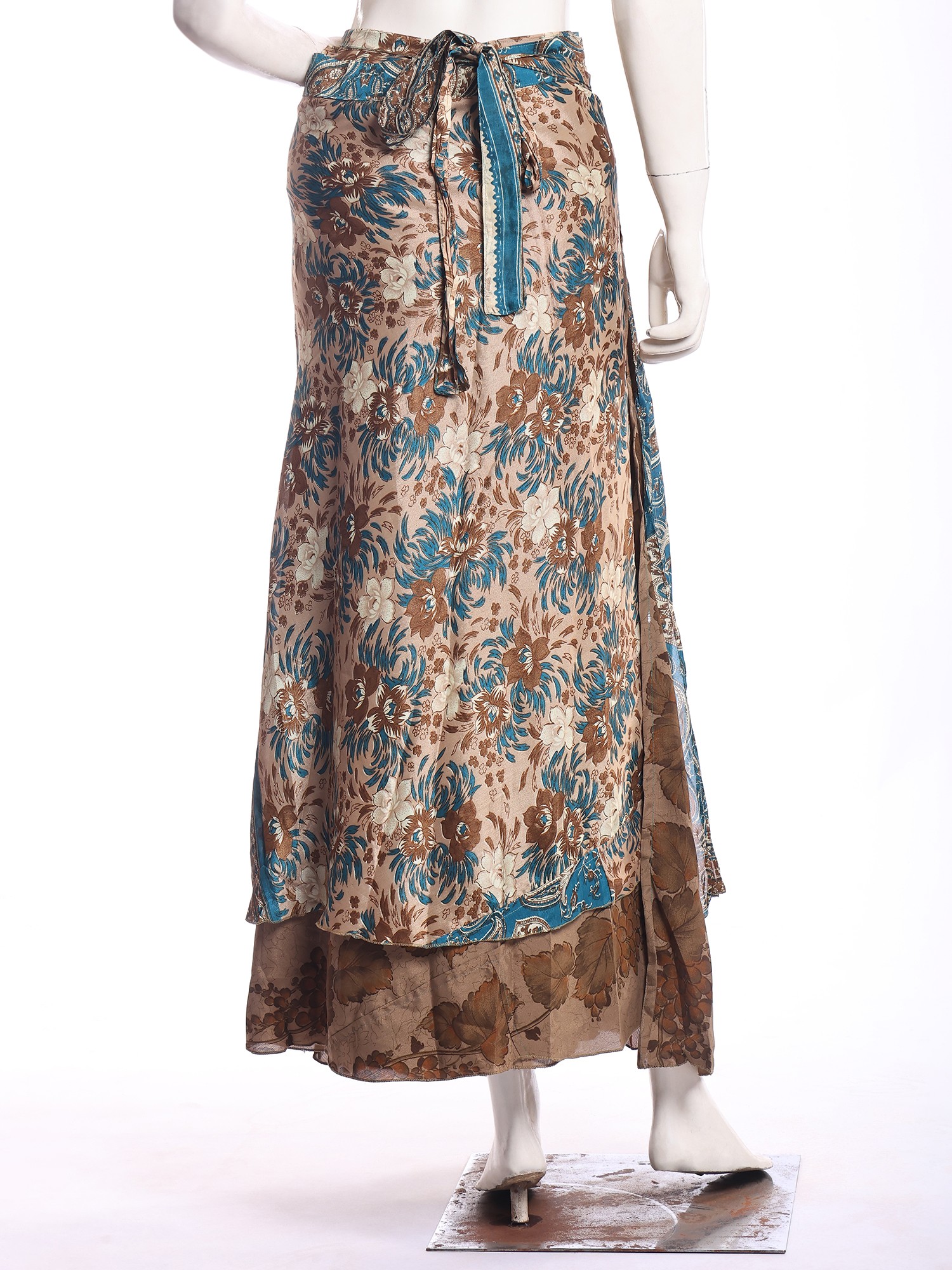 Double Layer Wrap-Around Long Skirt with Floral Print