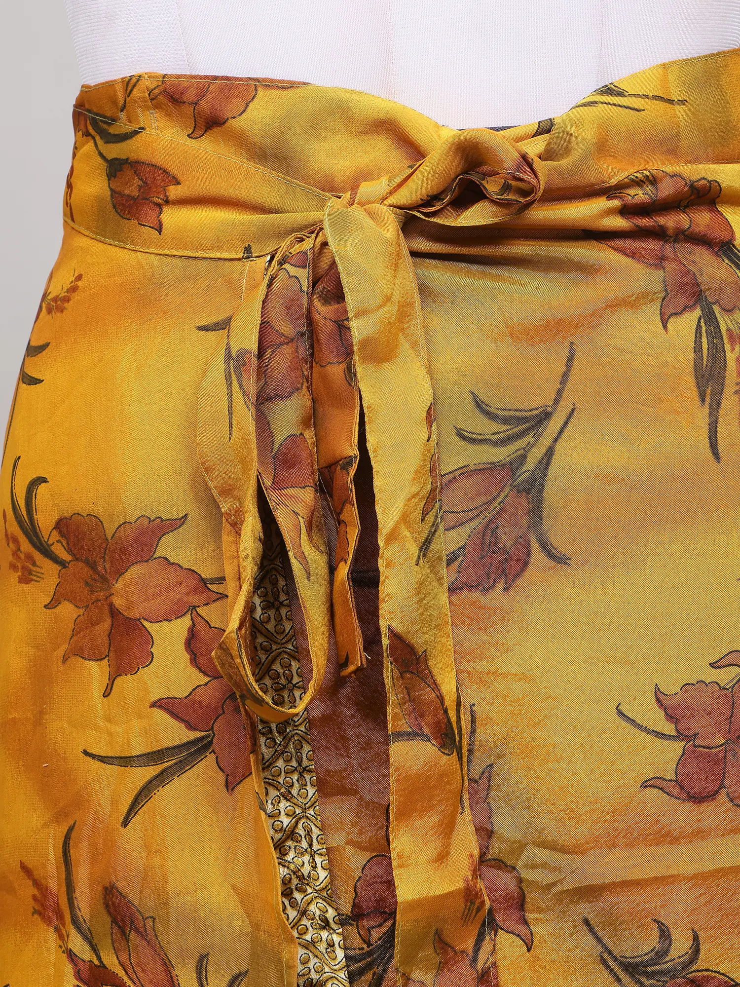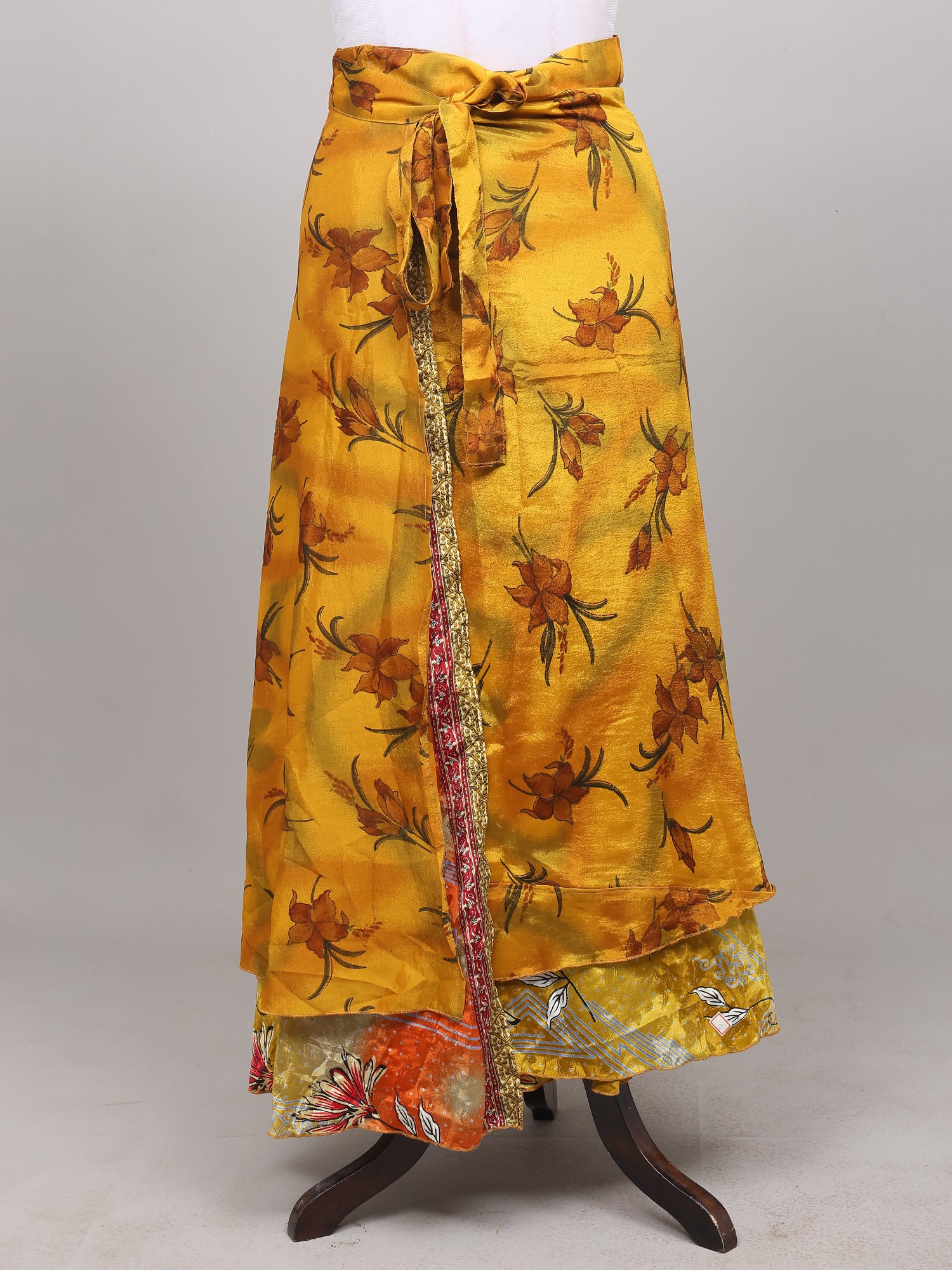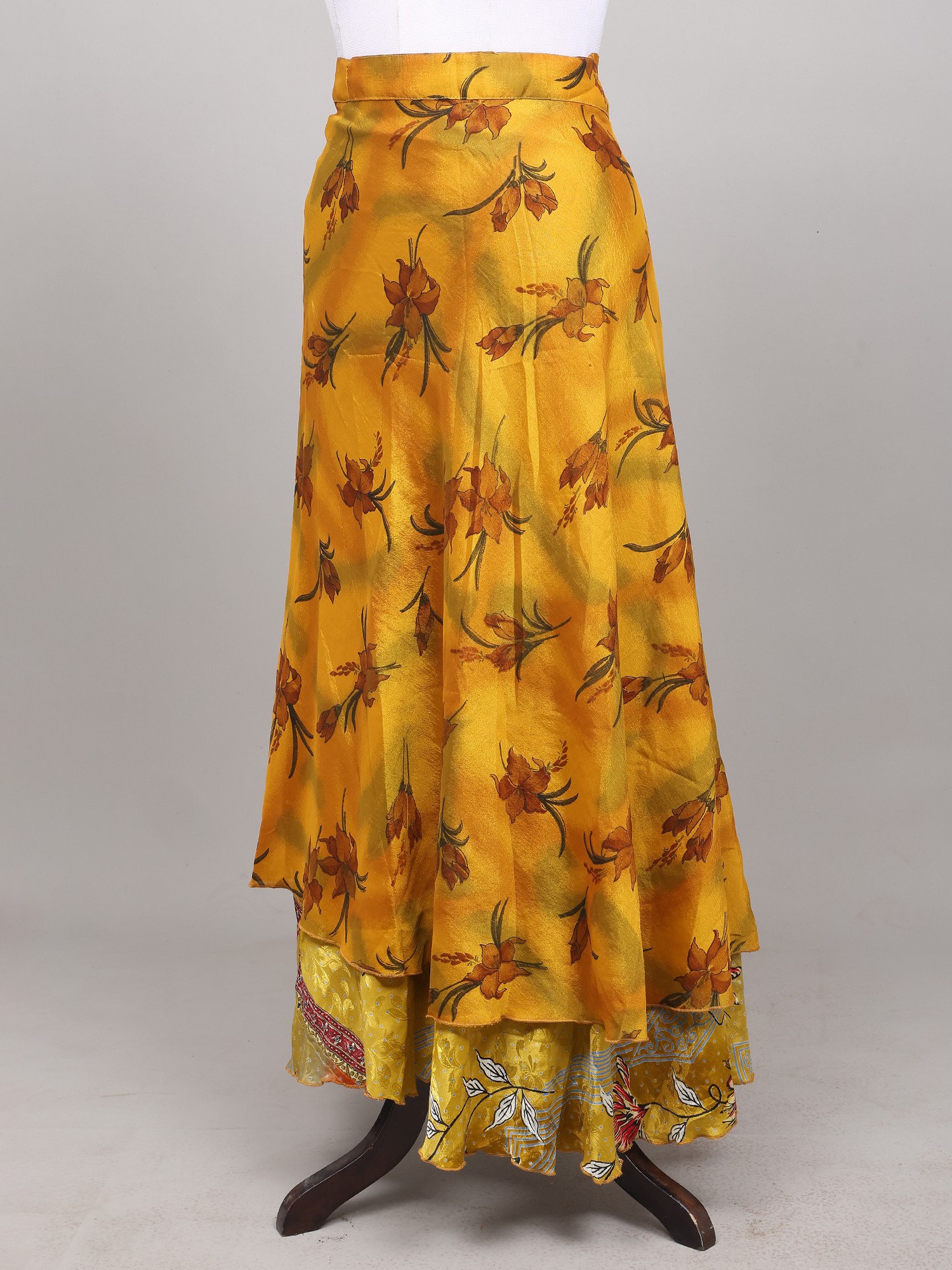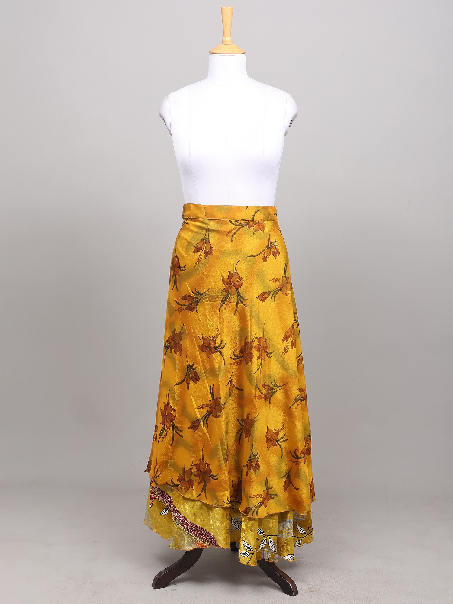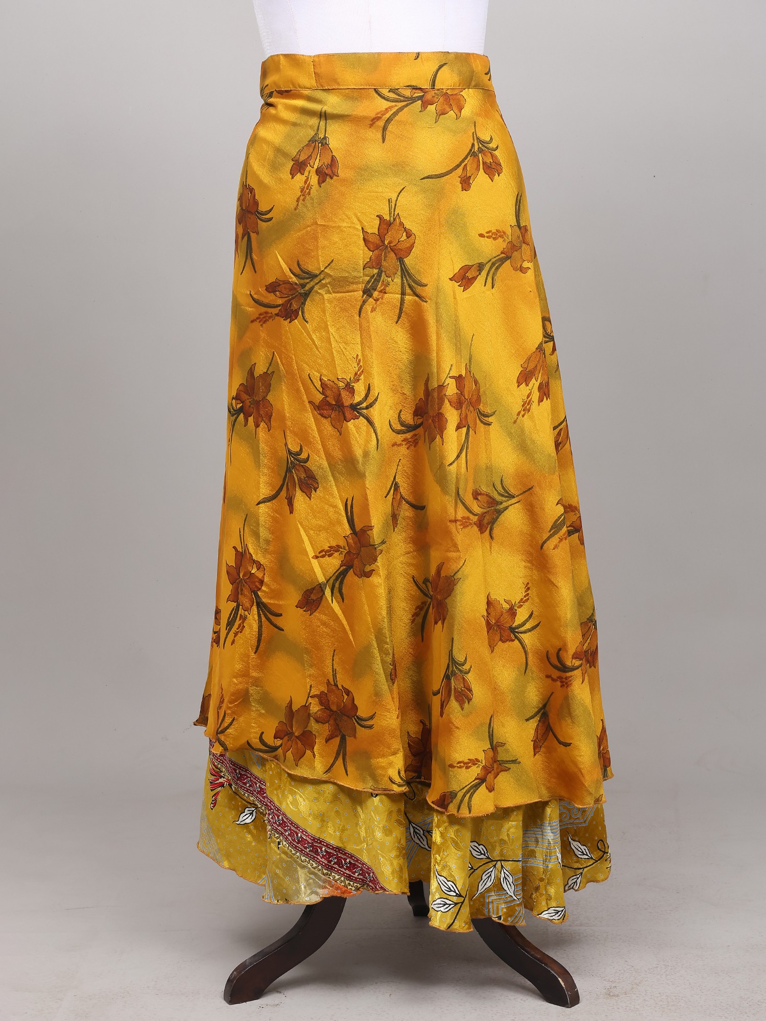 Wrap-Around Long Skirt With Printed Flowers