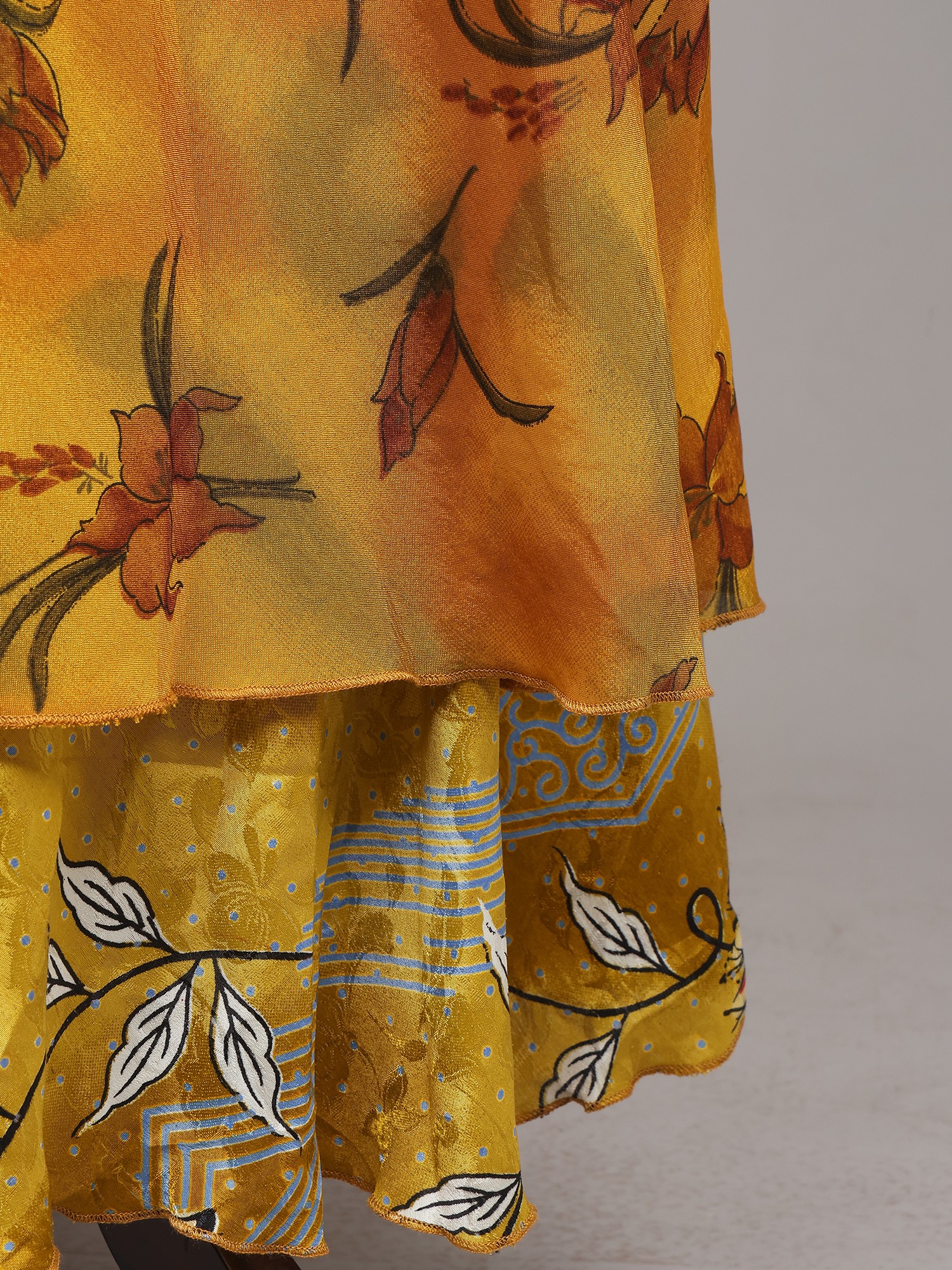 Cream Floral Printed Wrap-Around Long Skirt from Pilkhuwa
