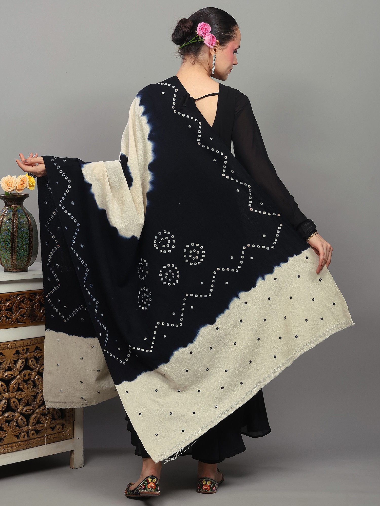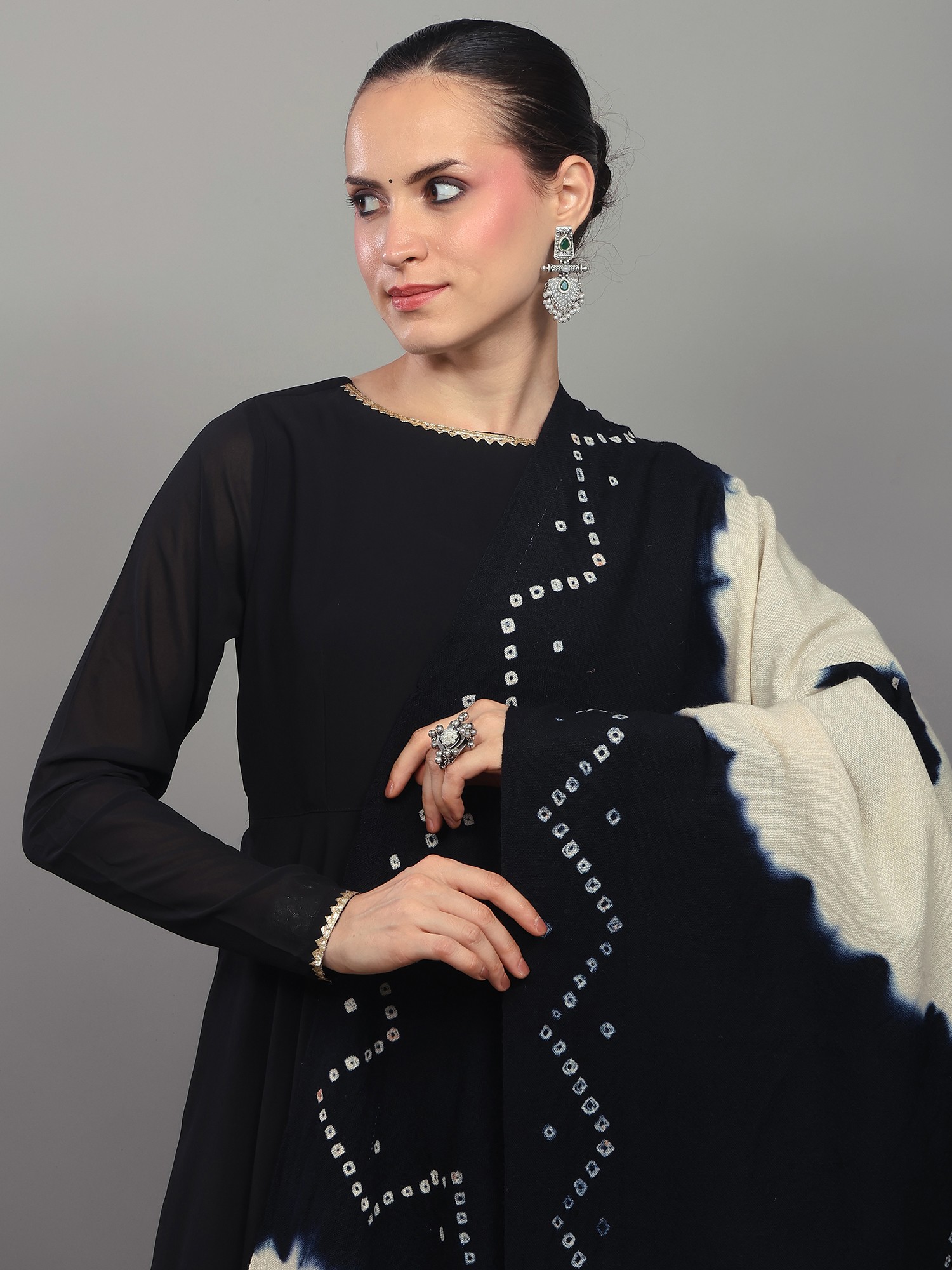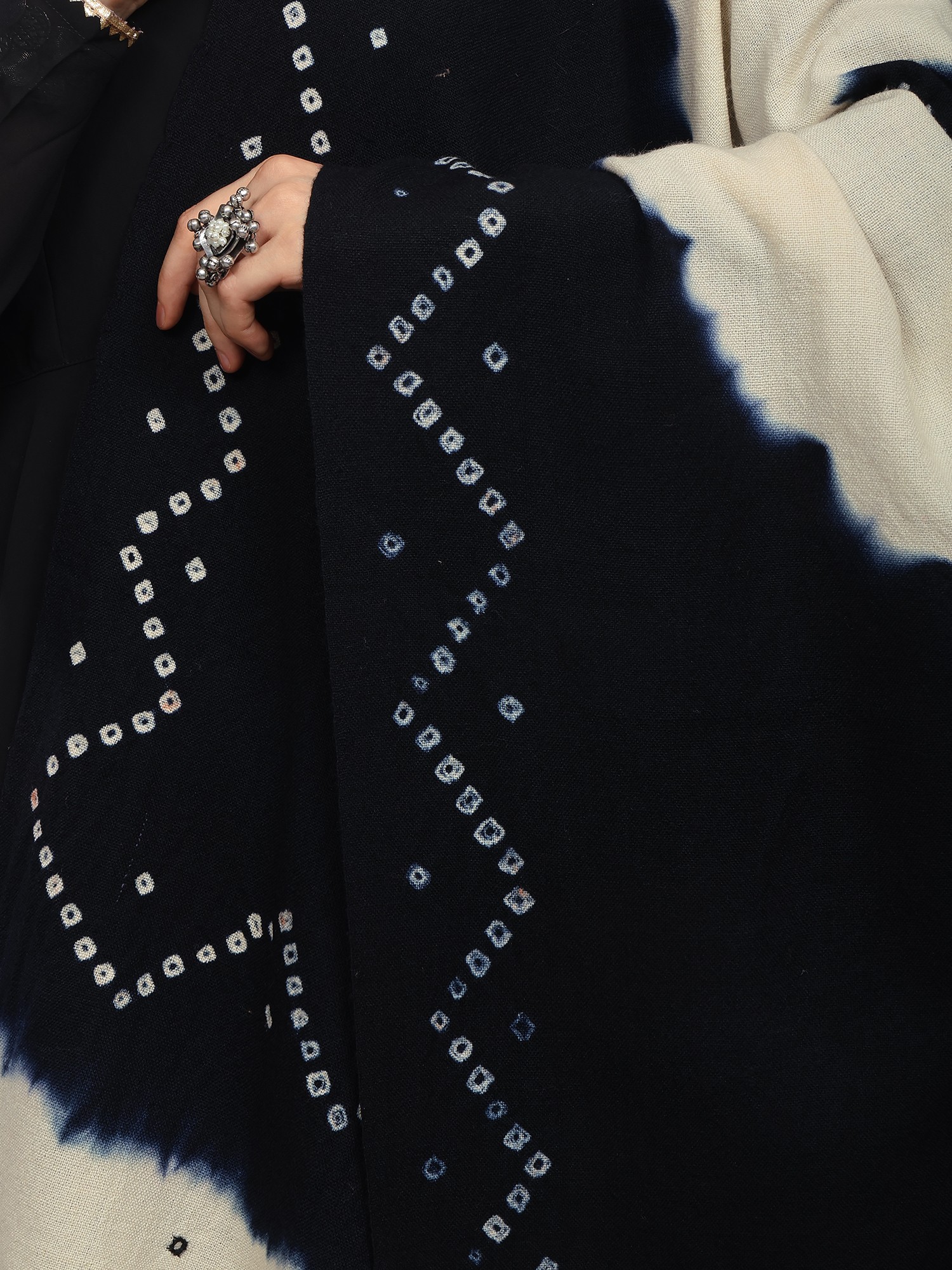 Phantom-Black Bandhani Tie-Dye Scarf