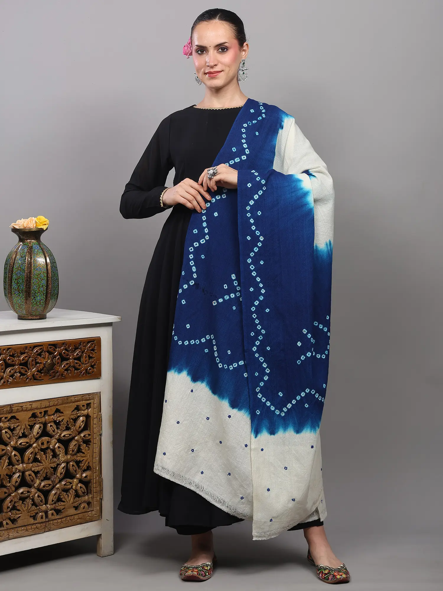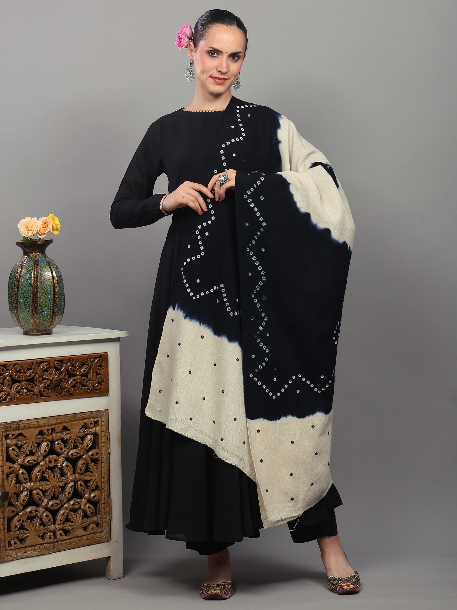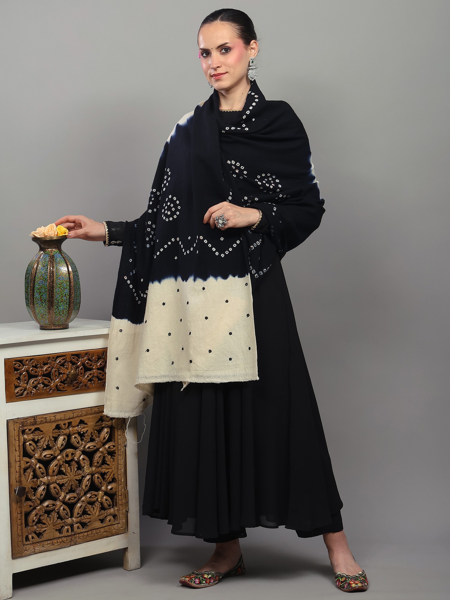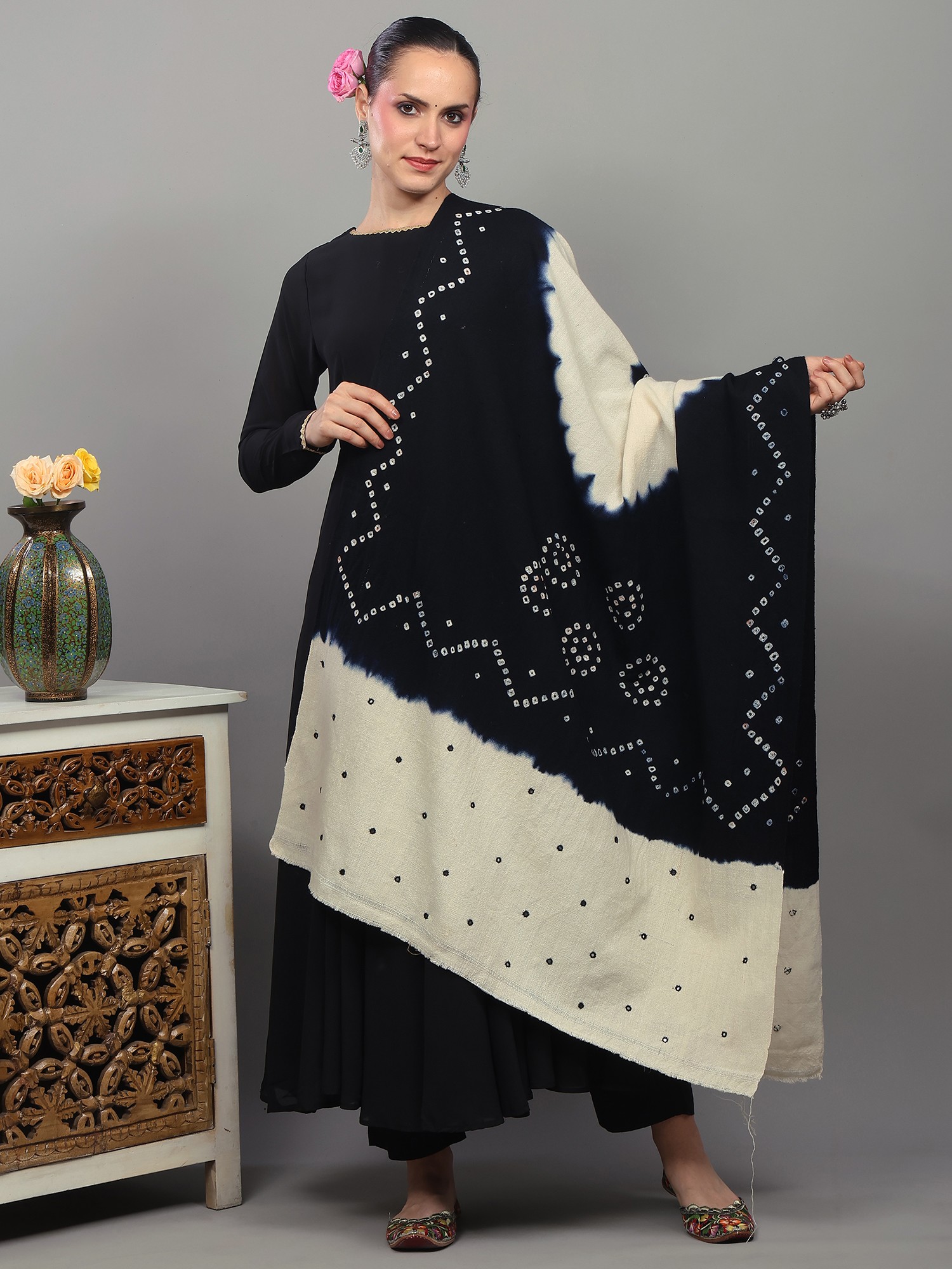 Phantom-Black Bandhani Tie-Dye Scarf