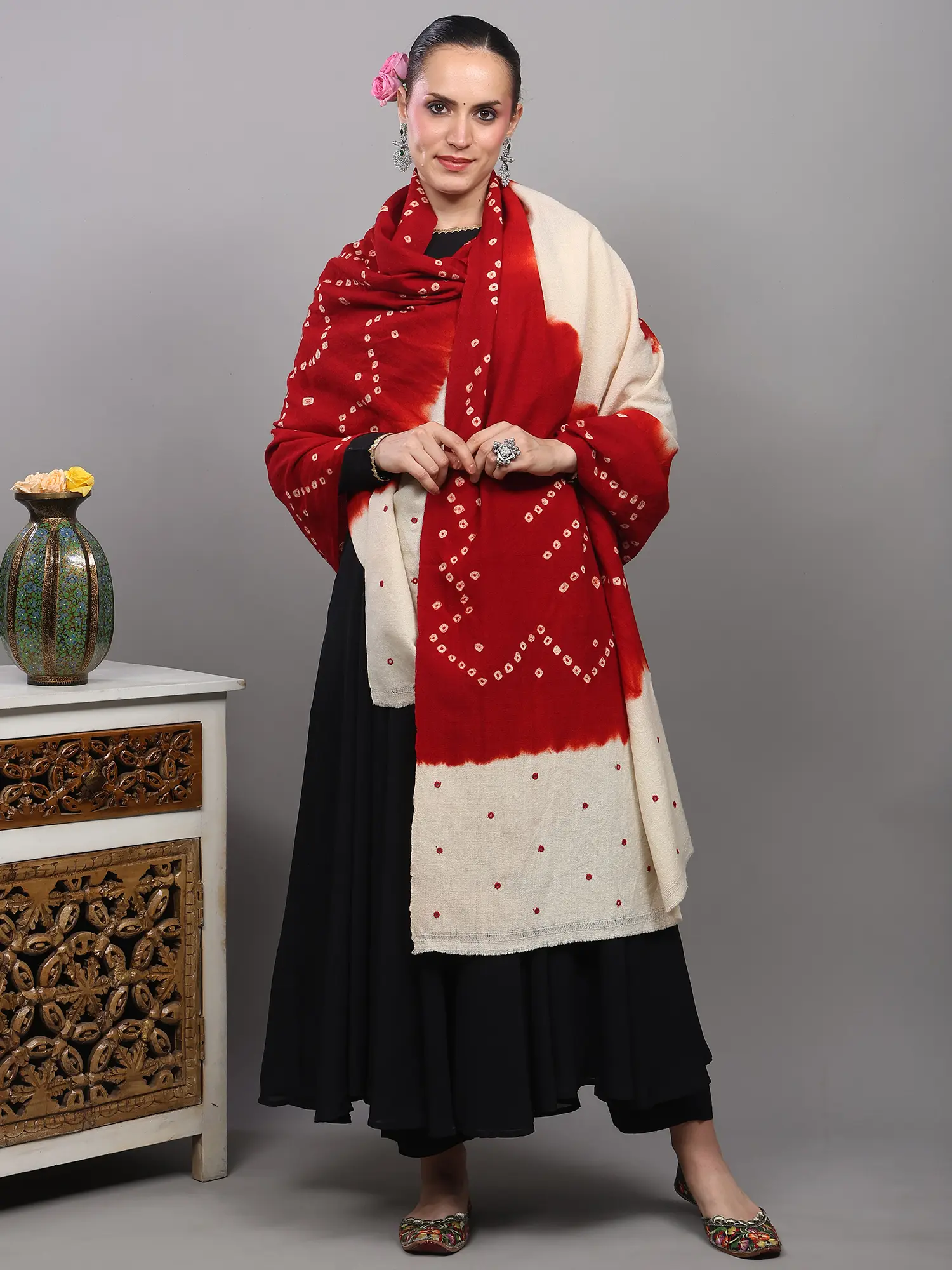 Tie-Dye Bandhani Dupatta From Gujarat with Embroidered Border
