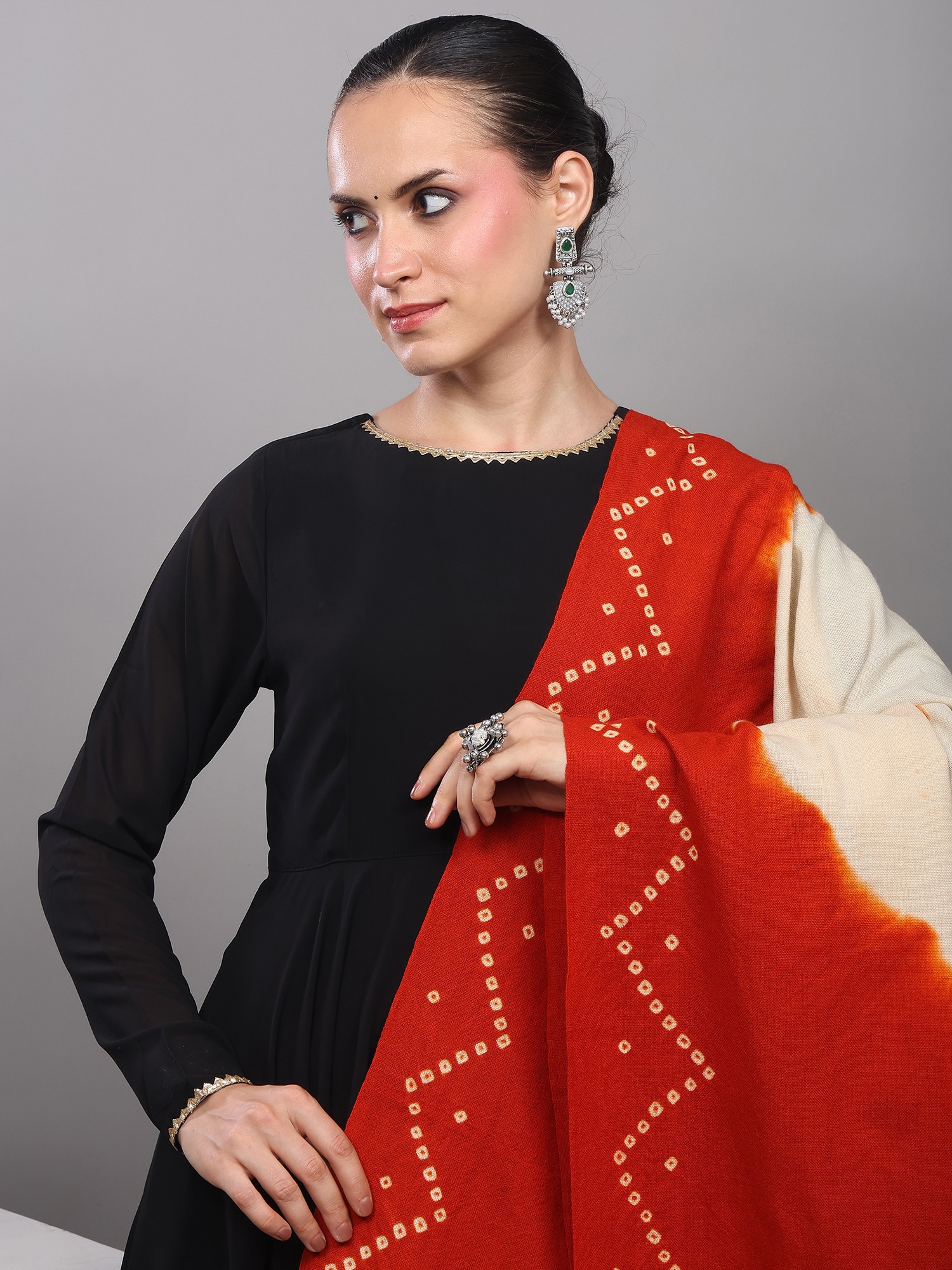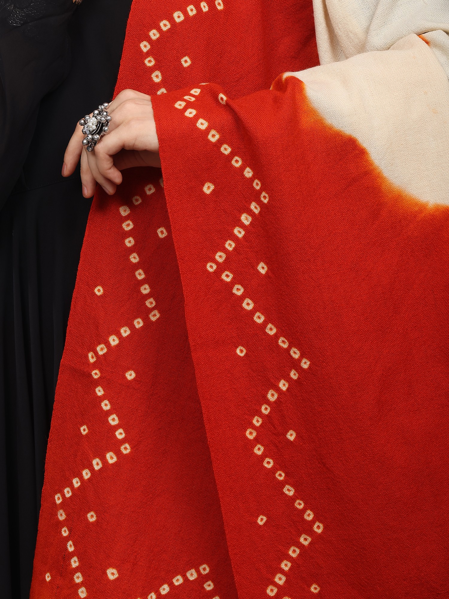 Phantom-Black Bandhani Tie-Dye Scarf