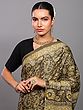 Black-Onyx Radha Krishna Print Kalamkari Saree with Jungle Scene from Telangana