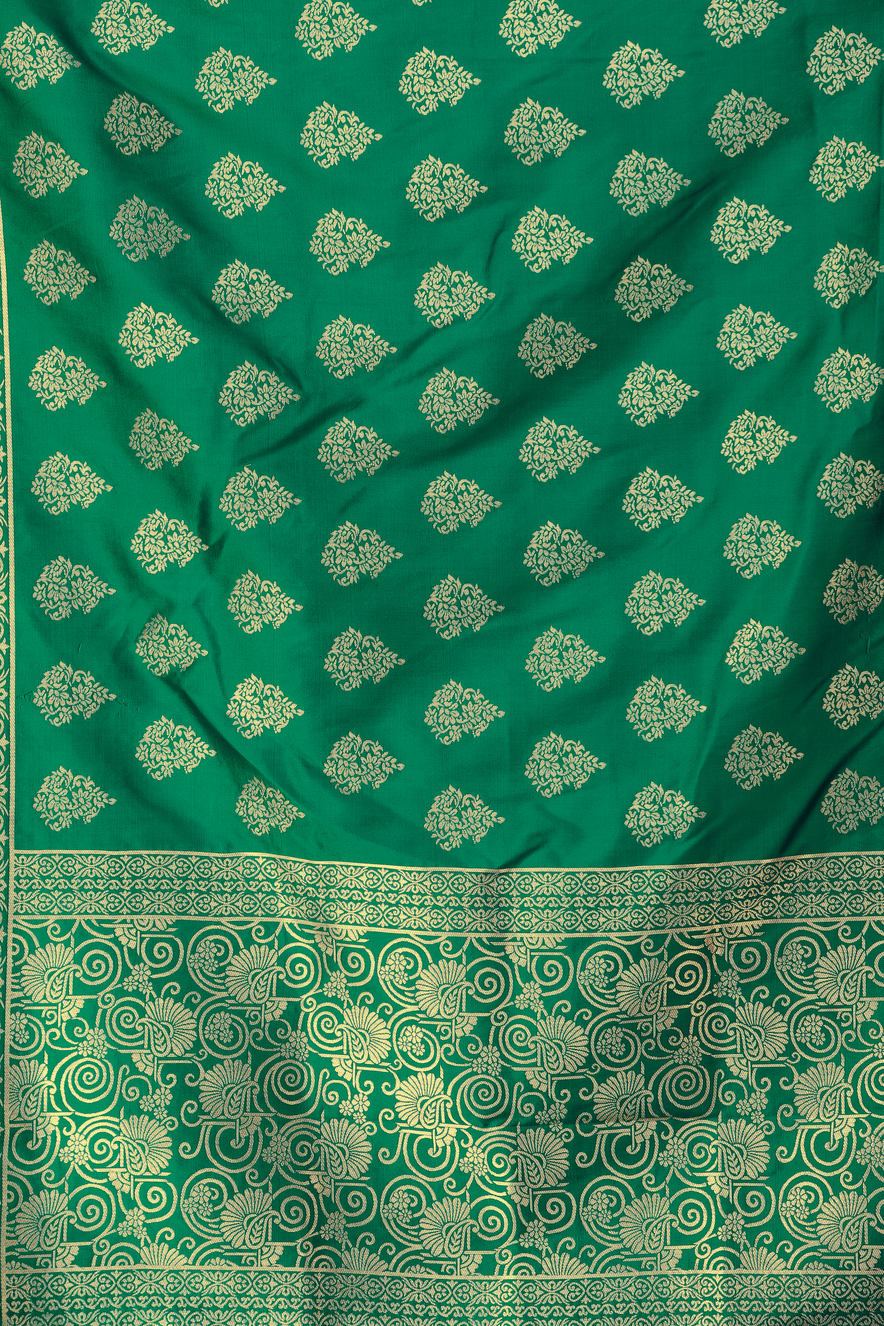 A signature Dupatta from Gujarat with Brocaded Bootis, laced in a delightful pattern. The floats of gold pattern on a vibrant orange-colored art silk fabric create an intricate motif and border. This dupatta is perfect to pair with an Indian Kurti, as a layering piece for everyday outings with friends and family, or as a gift for your special ones. The radiant art silk dupatta can also be used as a wrap on any of your favorite traditional outfits. You will know you are the best version of yourself when acquaintances and friends ask you about this new accessory you have draped.