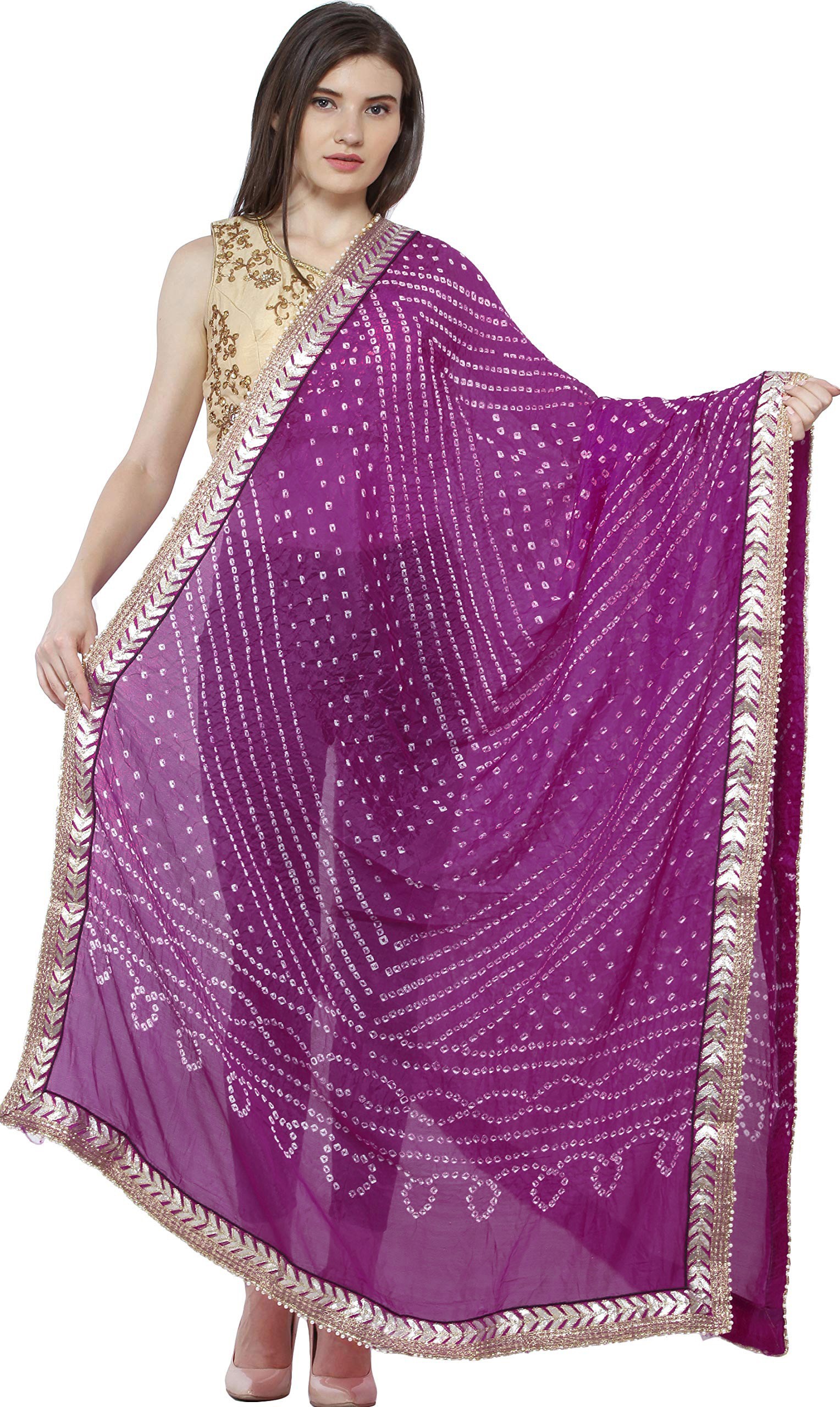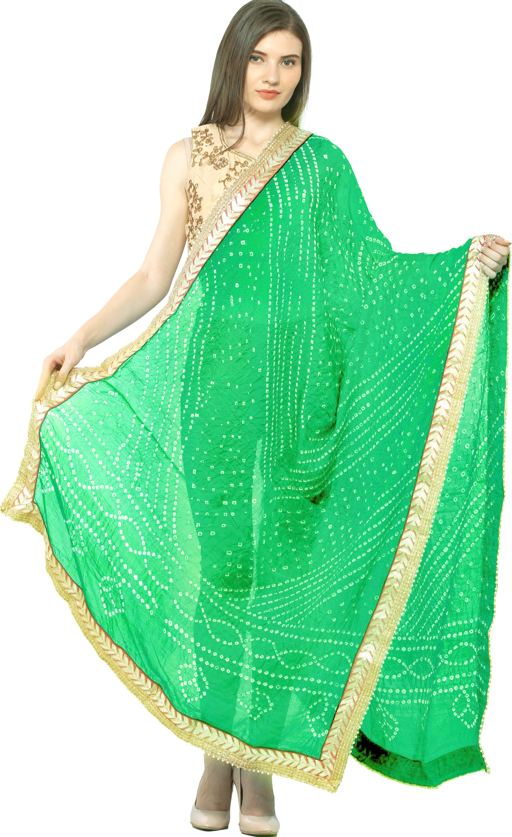 For the advocates of classic fashion, this Jodhpuri dupatta is just what you need. The tie dye print and gota border prompt a mesmerizing appeal. Available in beautiful bright shades, this dupatta is crafted in silk fabric and an elegant pick to don for traditional occasions and events. Style this dupatta with your ethnic outfits and footwear to make a statement. Jazz up your attire with a pair of jhumkas to look ravishing in a stunning desi look. Take your season fashion statement to the next level, with this piece from the paradisiacal lands.