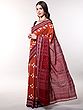 Mars-Red Pure Cotton Ikat Saree from Sambalpur with Rudraksha Woven Border and Birds Pallu
