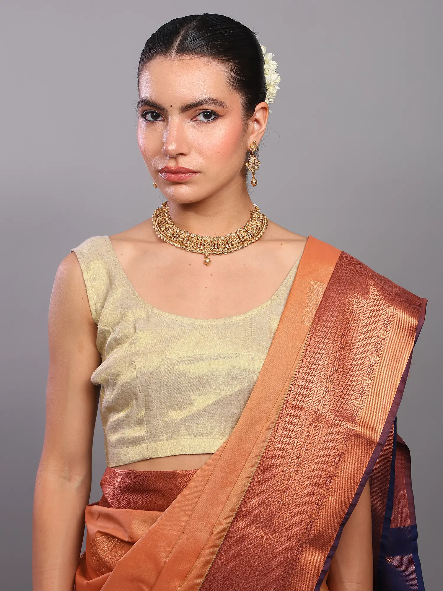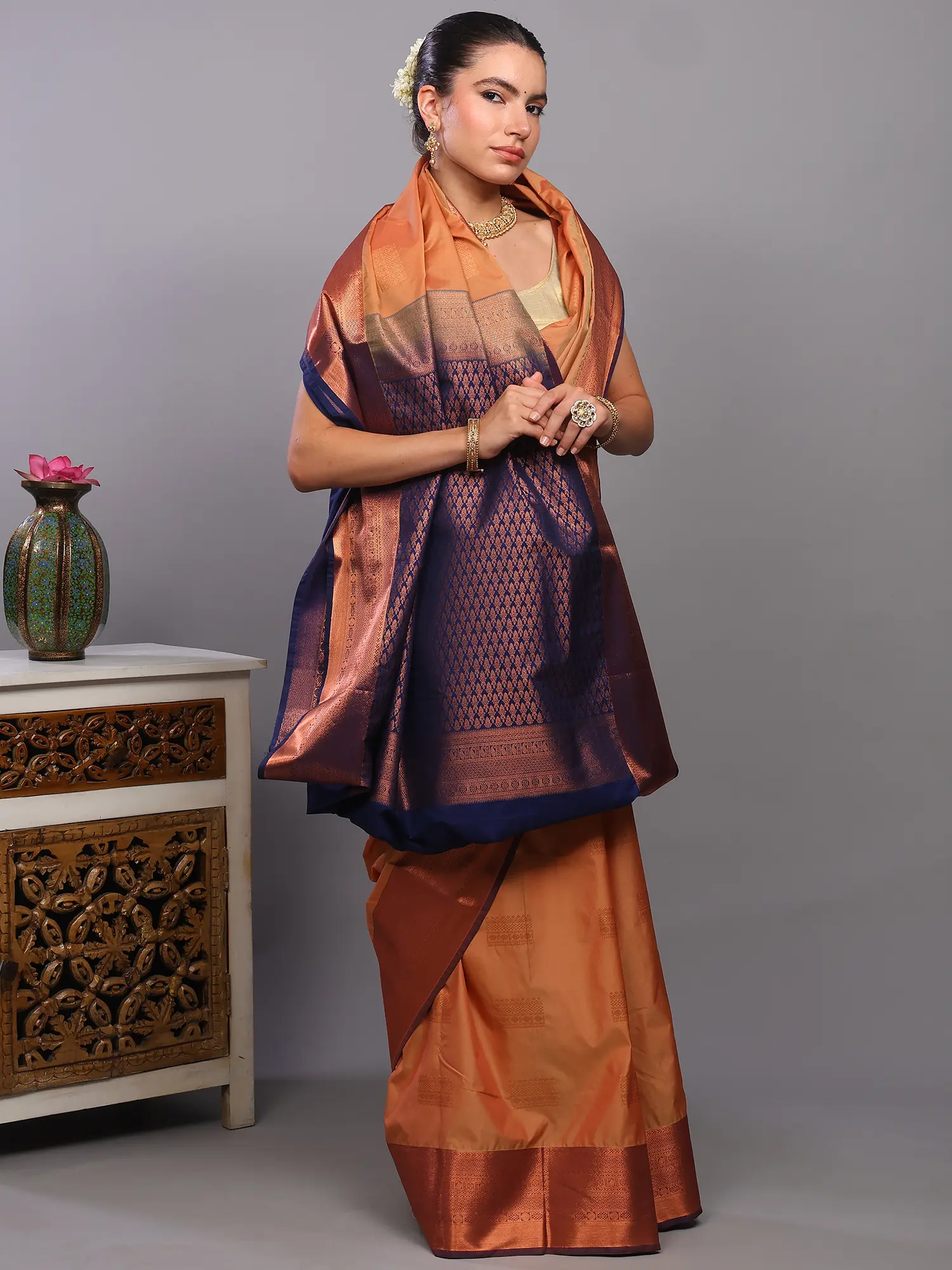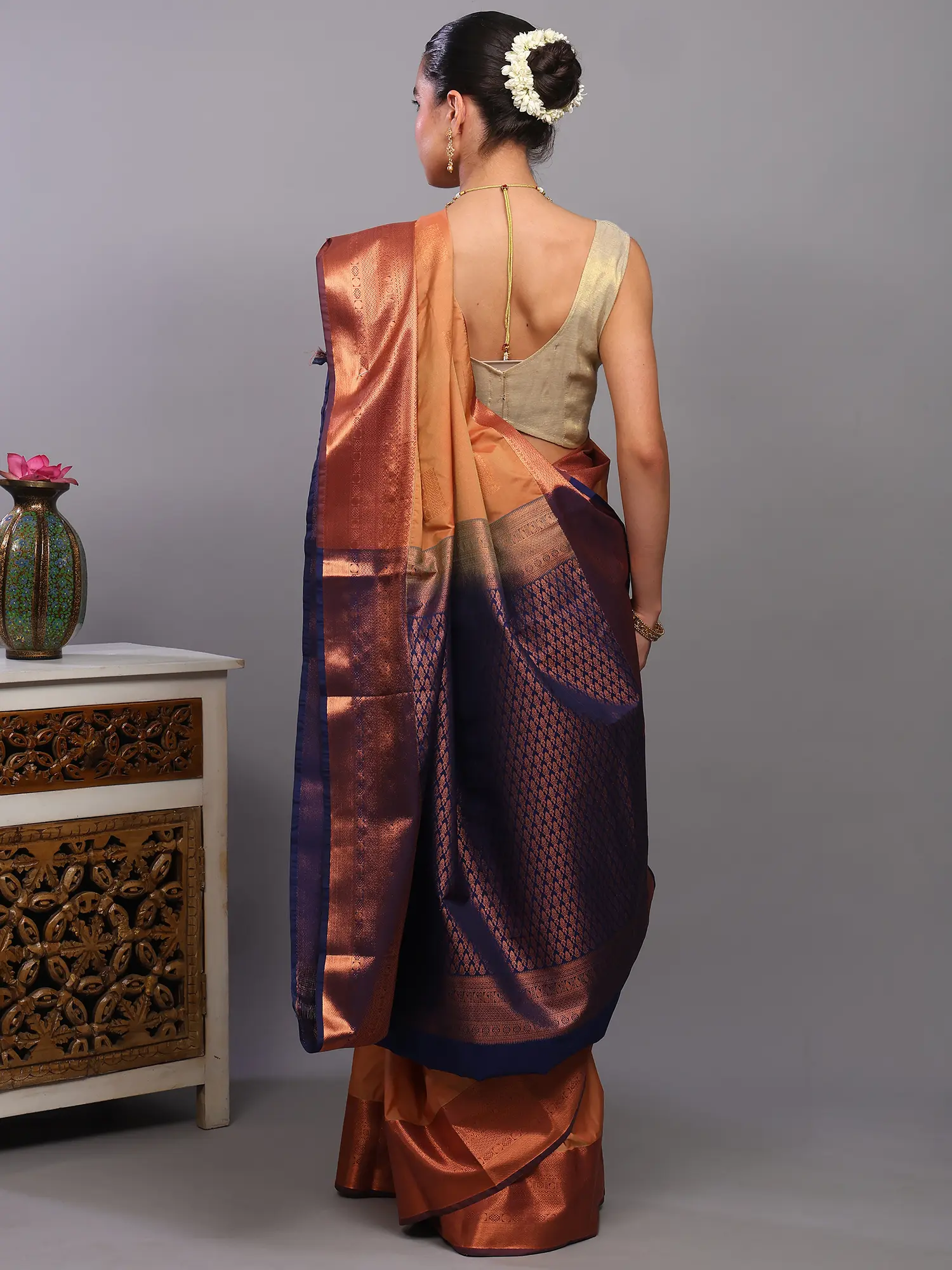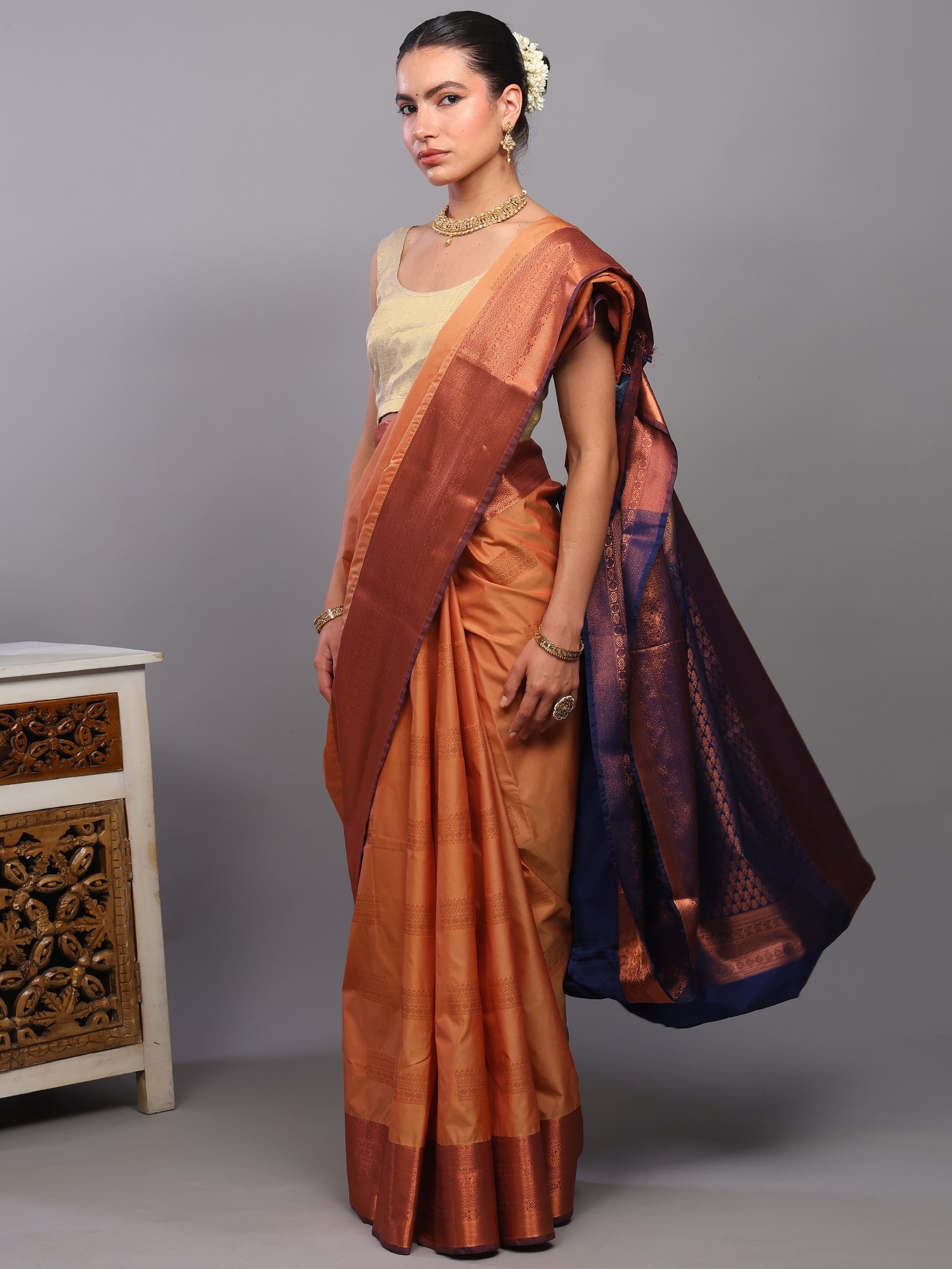 Apricot-Brandy Kanjivaram Saree from Bangalore with Wide Temple Border