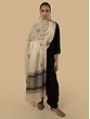 Envelop yourself in the Dutch white Cashmere shawl decorated with boti dar sozni embroidery. The shawl’s grandeur, with its intricate boti dar sozni embroidery, makes a bold statement about your appreciation for the rich traditions of textile artistry. Whether worn as a shoulder wrap, draped elegantly over formal attire, or causally thrown over the shoulder, it is the embodiment of luxury and style.