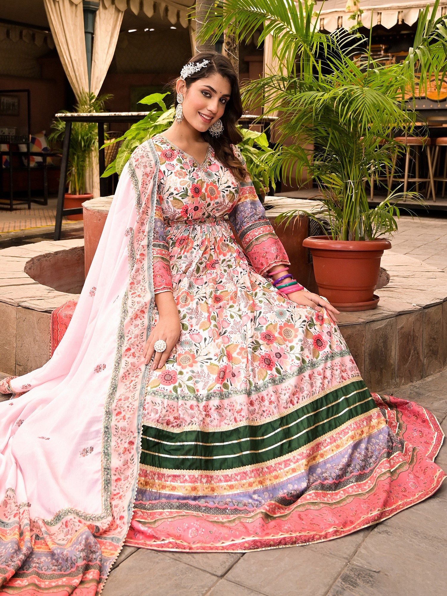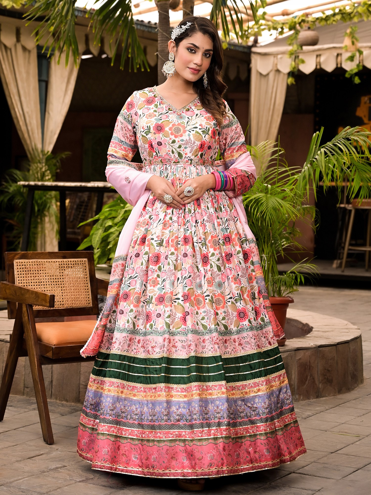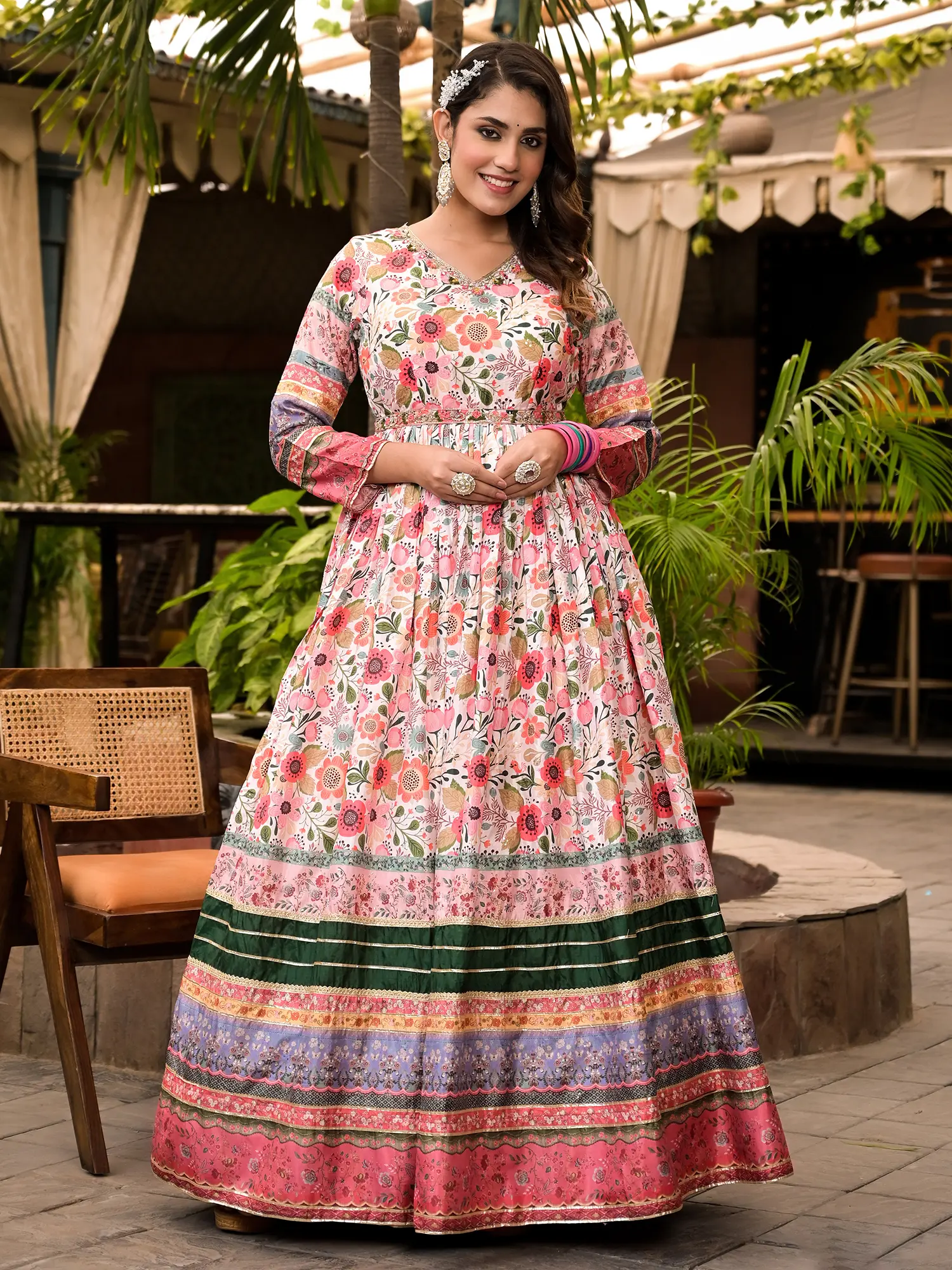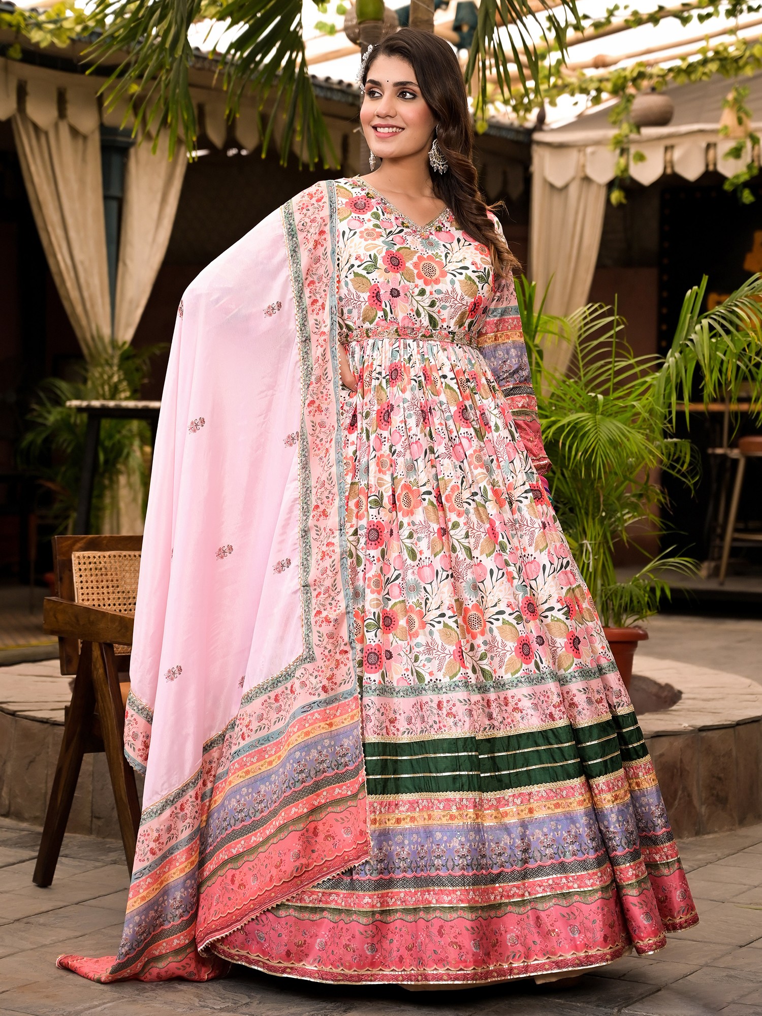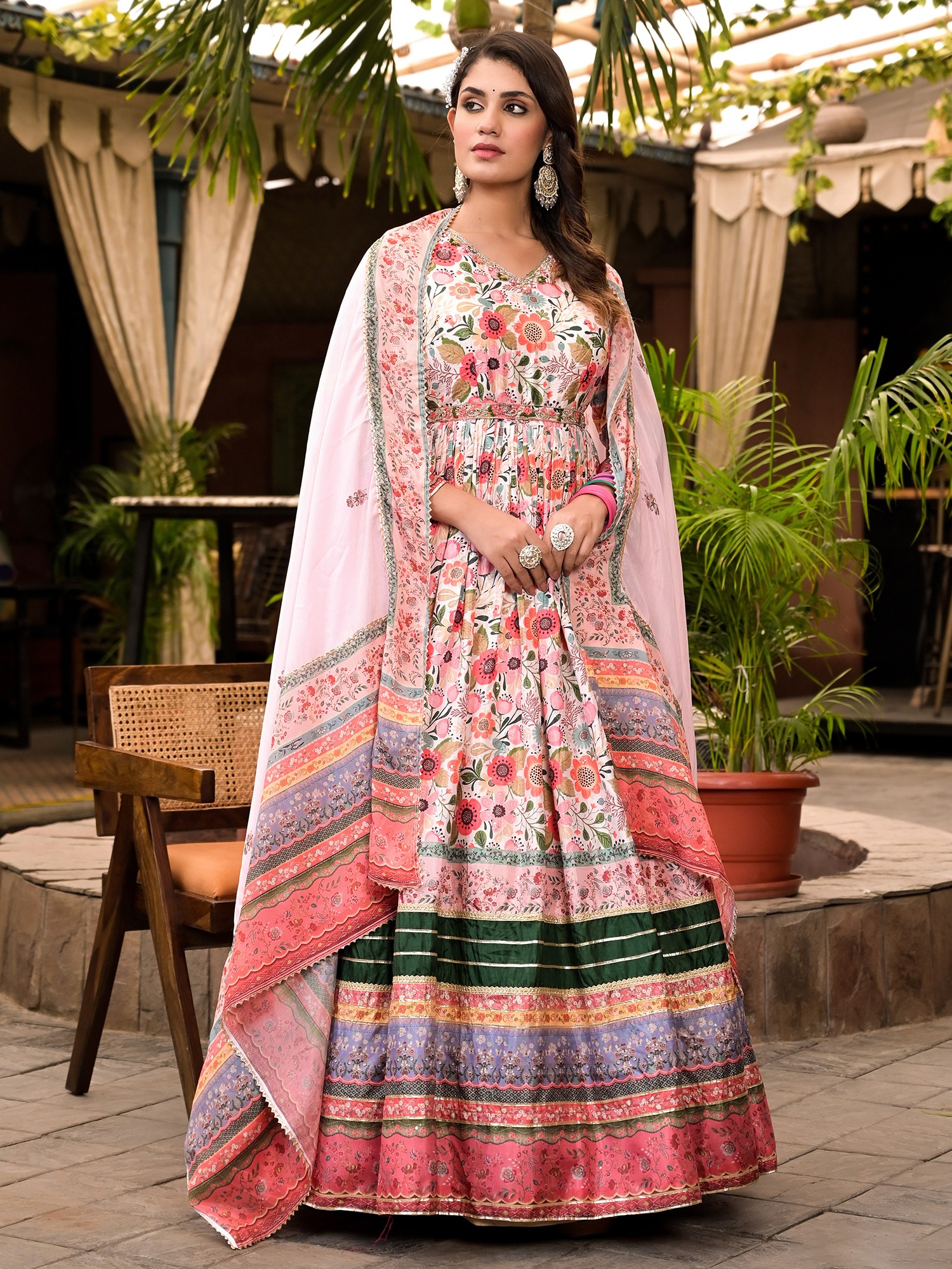 Pure Cotton Kaftan Style Co-Ord Set with Printed Floral Bootis