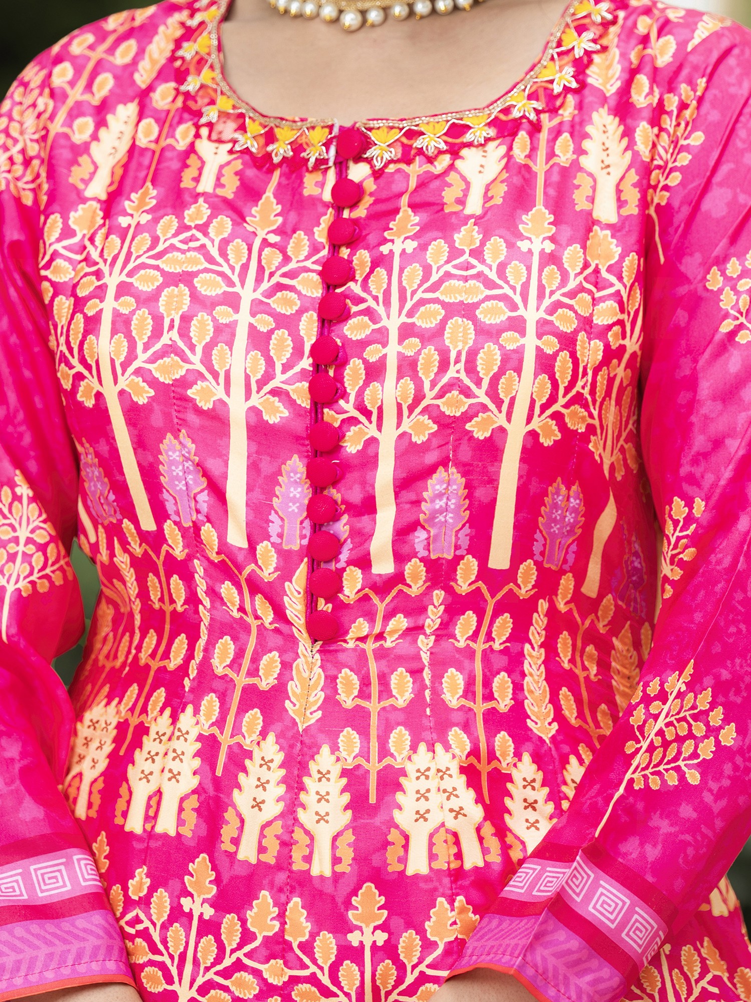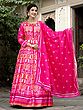 Step into the spotlight with this captivating Anarkali gown, a celebration of color and timeless design. The silhouette flatters with its graceful flare, offering both comfort and unparalleled style. Crafted from soft Dola silk, the fabric drapes beautifully, creating a luxurious feel against the skin. This ensemble is perfect for festive occasions, weddings, or any event where you want to make a lasting impression.