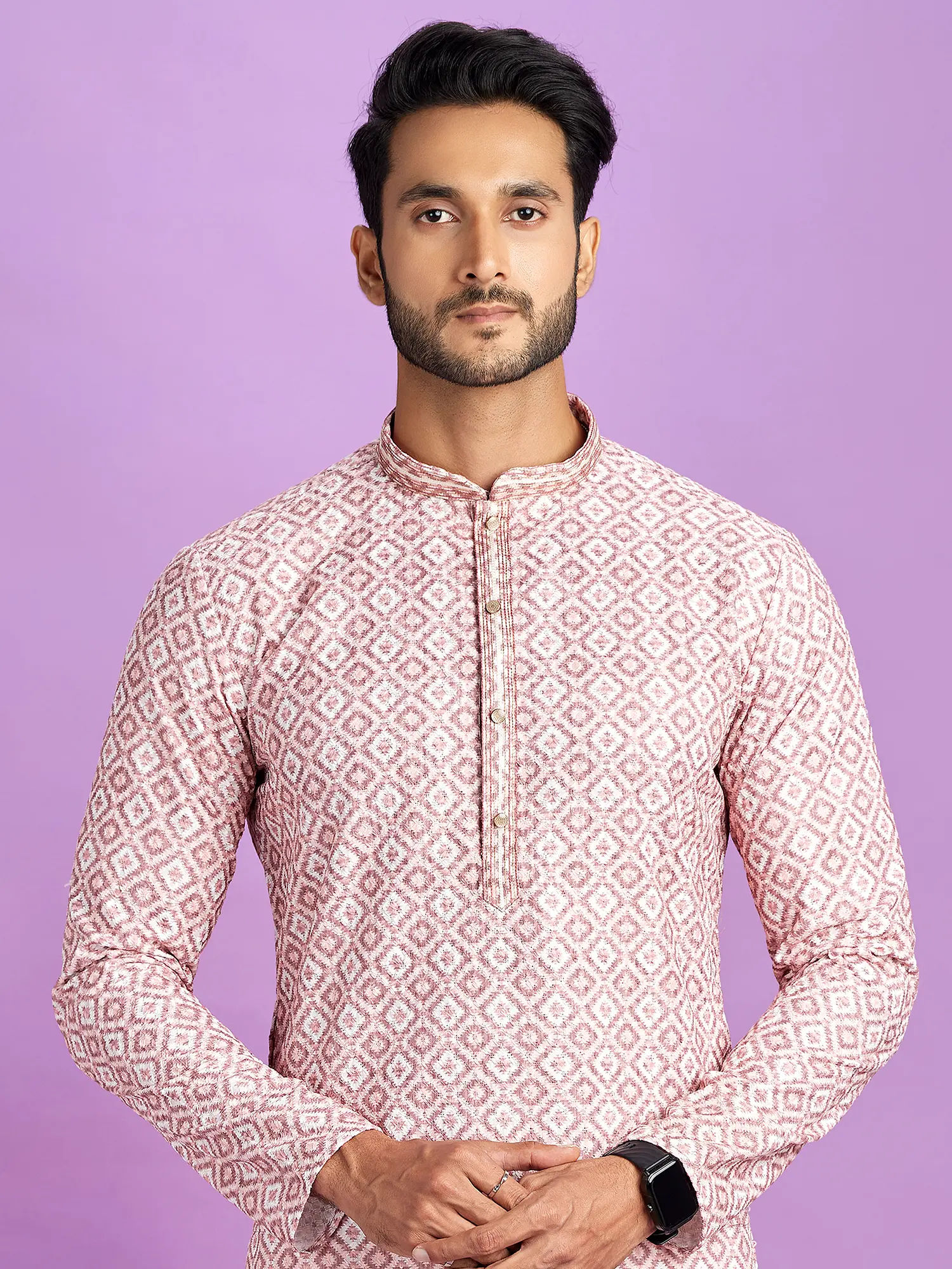 Rainbow Pure Cotton Kurta Pajama Set with Thread Embroidery in Diamond Pattern