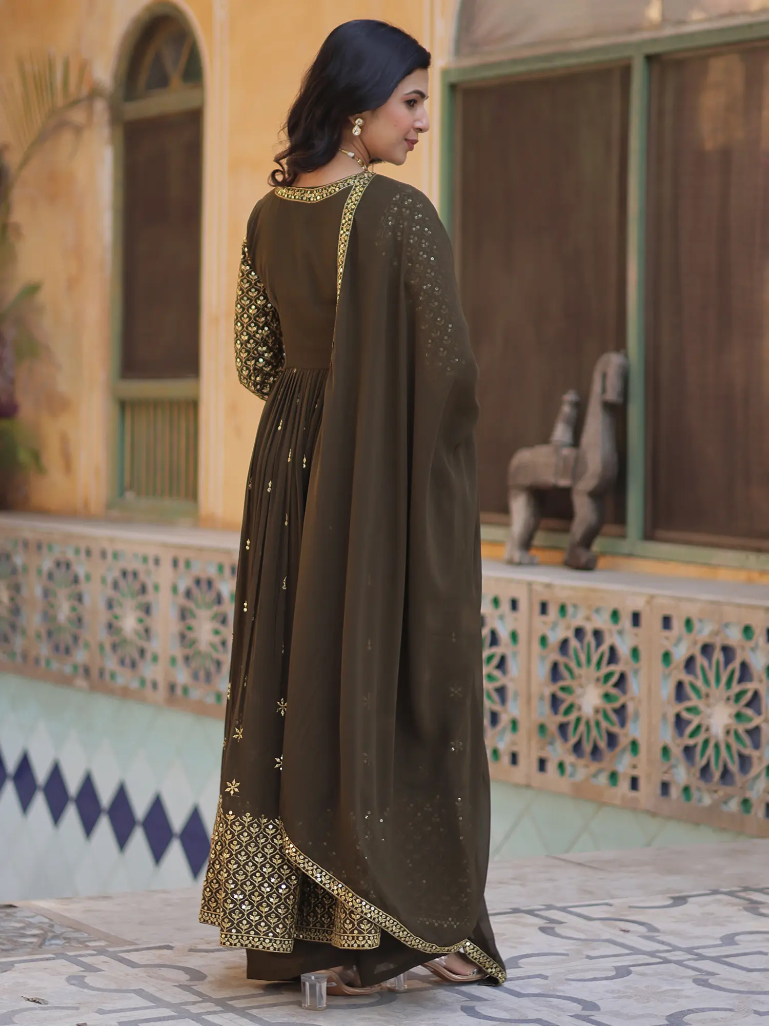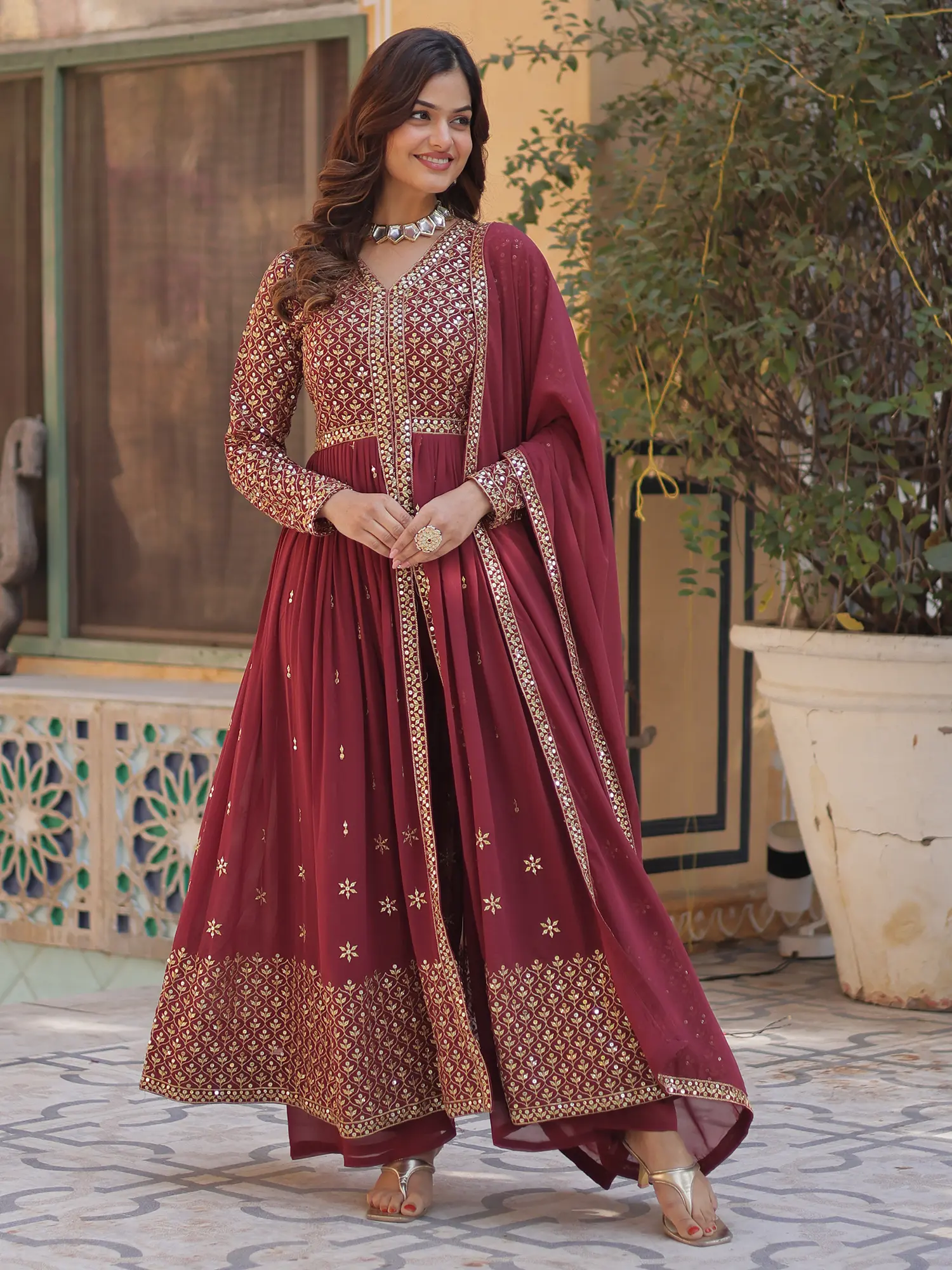 Heavy Embroidered Faux Georgette Designer Anarkali Gown Set with Dupatta