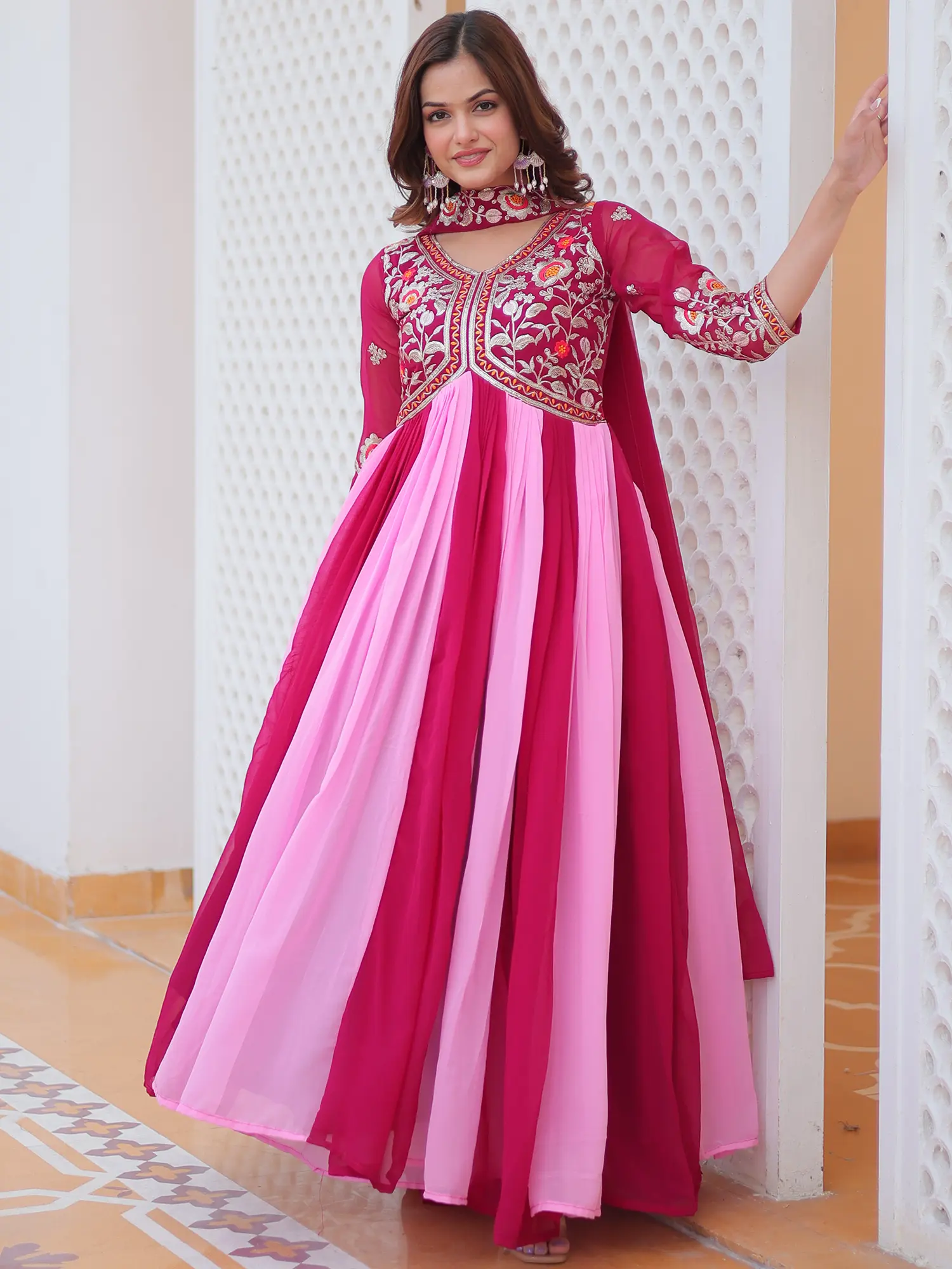 Heavy Embroidered Faux Georgette Designer Anarkali Gown Set with Dupatta