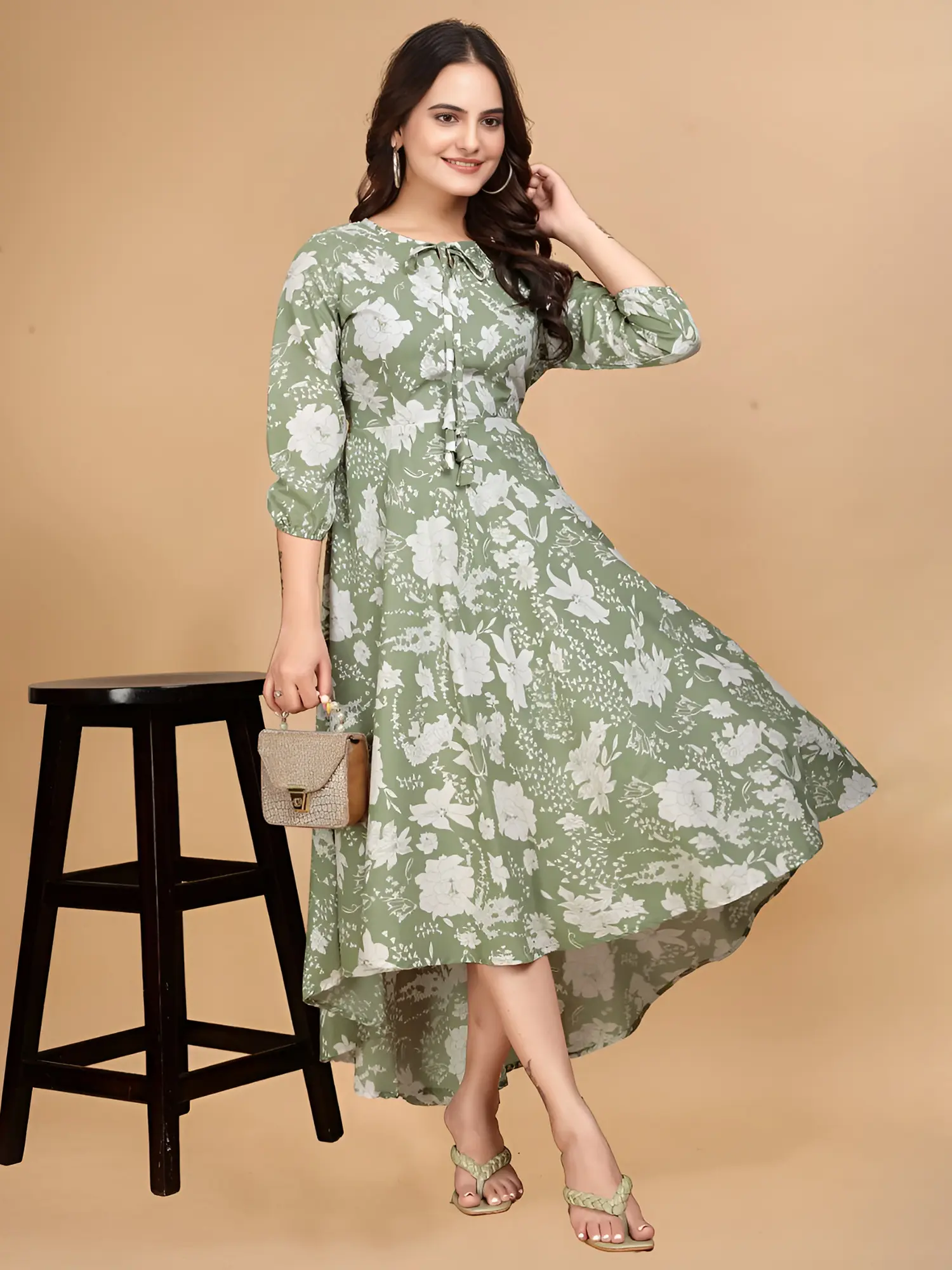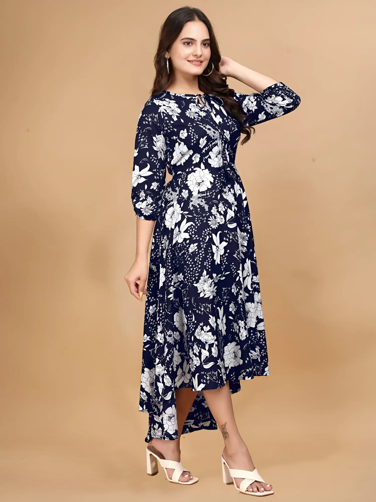 Elegant Floral Digital Print Flared Dola Silk Festive Wear Long Gown With Matching Nazneen Dupatta