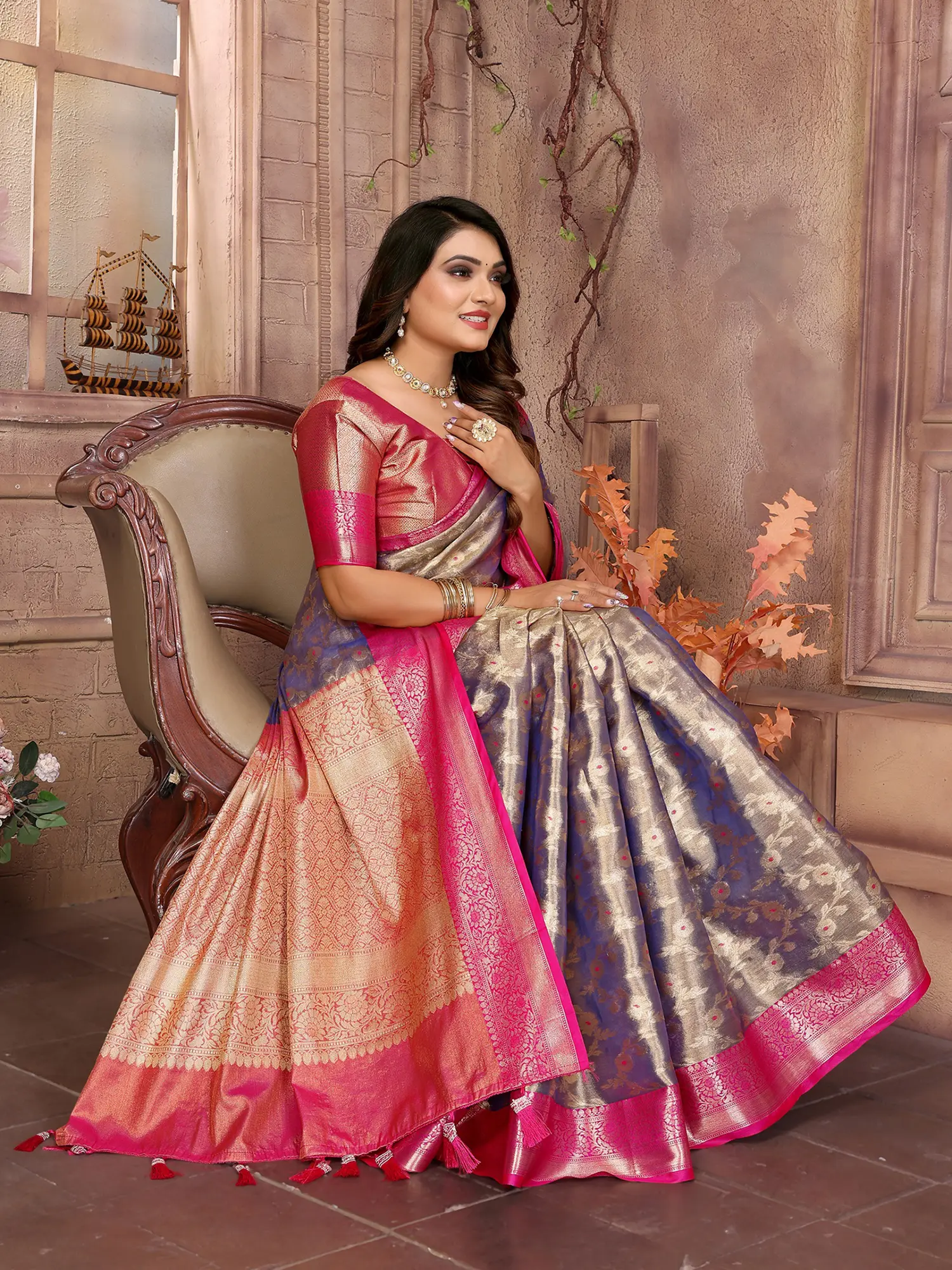 Silk Sequins Work Attractive Party Wear Saree With Matching Blouse