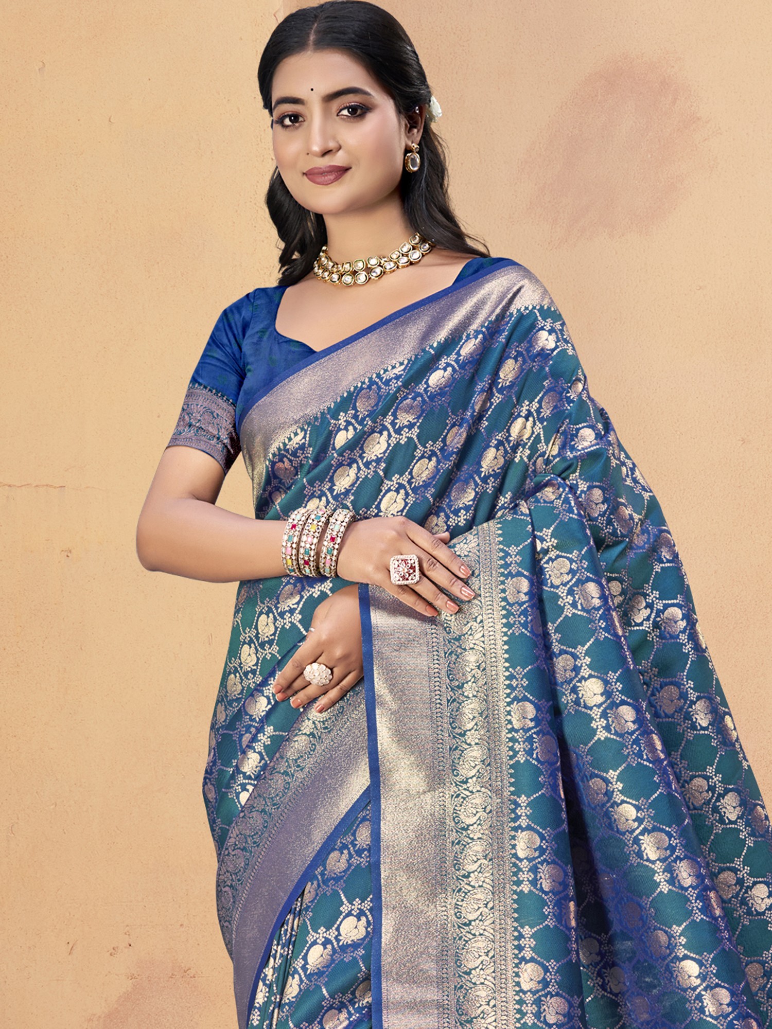 Whether you're attending a wedding, festival, or any grand celebration, this saree will make you the center of attention. Its vibrant colors and luxurious fabric exude sophistication and charm. Pair it with your favorite jewelry and accessories to create a personalized look that reflects your unique personality. The saree is not just a garment; it's an experience, a journey into the heart of Indian tradition and artistry. Embrace the legacy of silk weaving and make a statement that will be remembered long after the event is over.