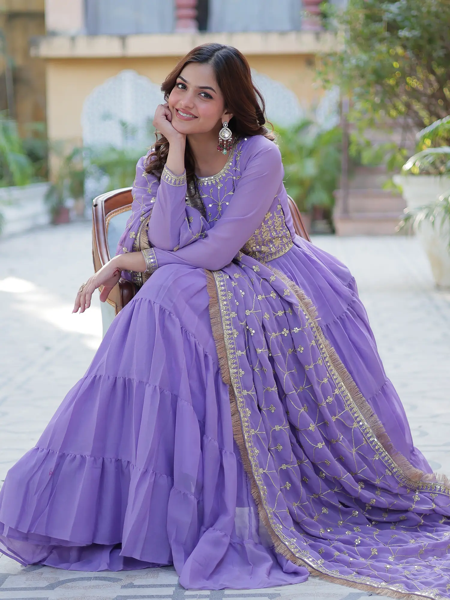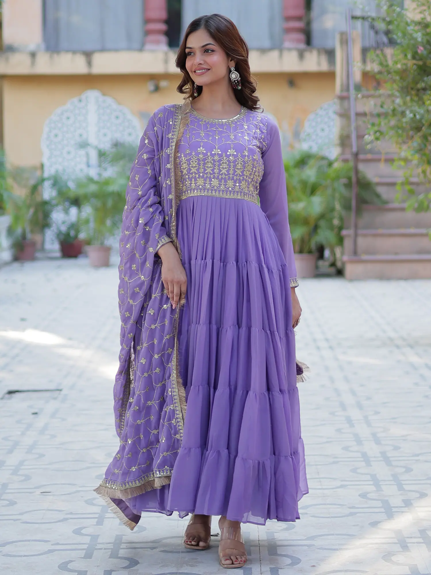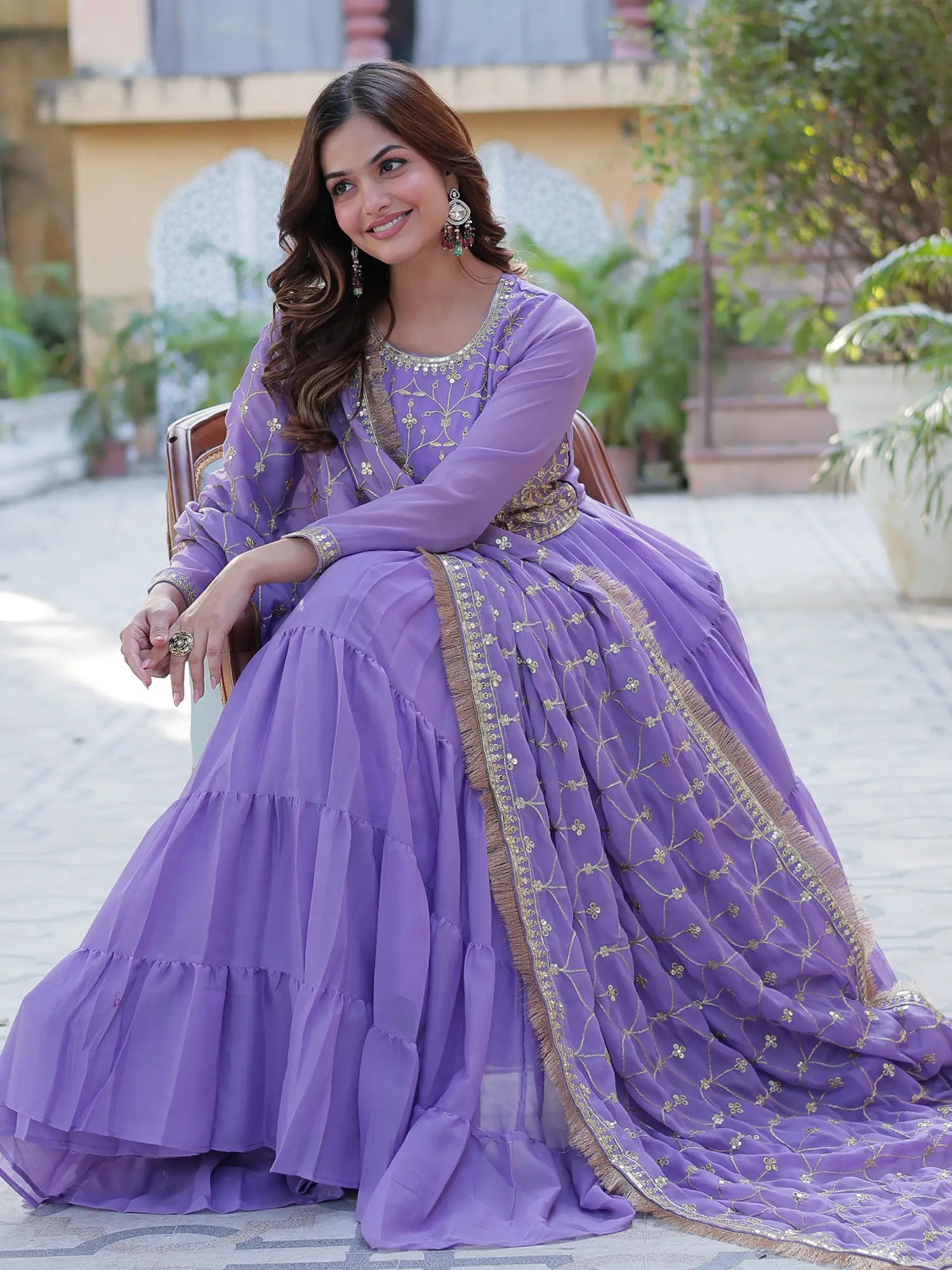 Heavy Embroidered Faux Georgette Designer Anarkali Gown Set with Dupatta