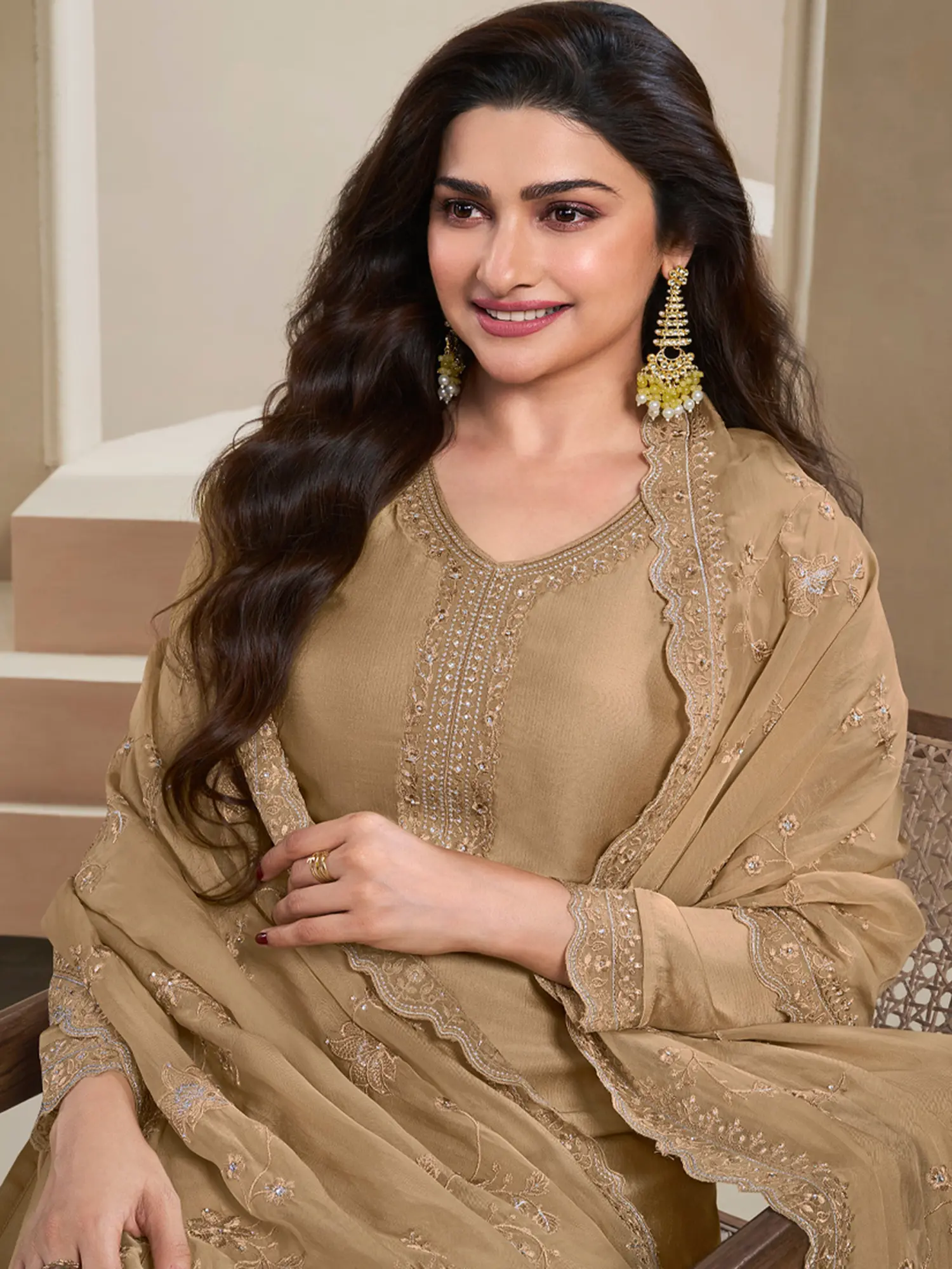 Chinon Salwar Suit with Intricate Thread Sequin Dori Embroidery for Wedding and Festive Wear