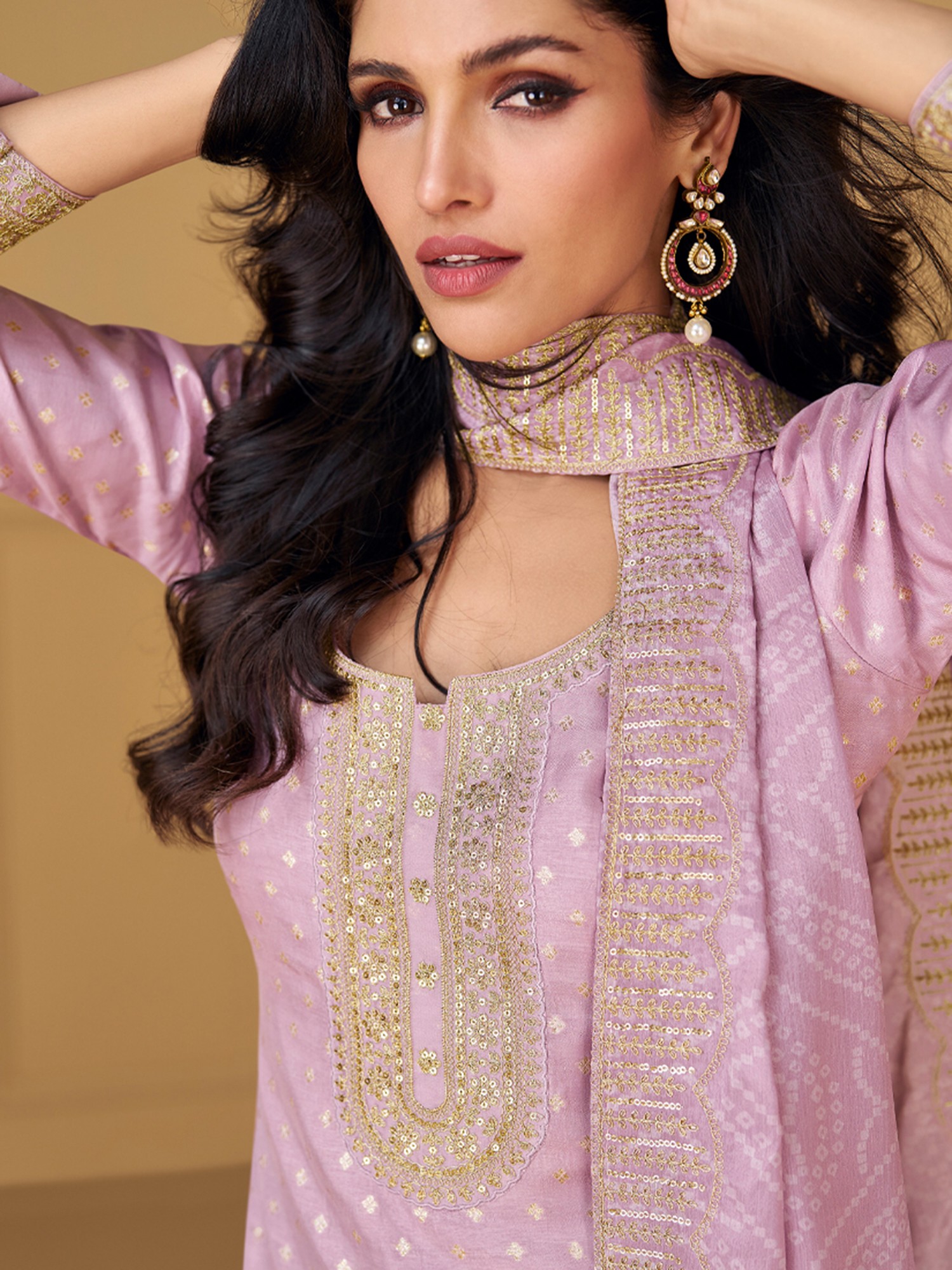 The dupatta features a mesmerizing Bandhani print, an age-old tie-dye technique that adds a unique and vibrant character to the outfit. The distinctive patterns and subtle color variations of the Bandhani print lend an air of artistry and tradition, complementing the overall aesthetic of the ensemble. Drape it gracefully over your shoulders or let it flow freely for an effortlessly elegant look. The straight cut of the kurta offers a flattering silhouette, while the coordinating bottoms complete the look with a refined touch. This Salwar Kameez seamlessly blends traditional motifs with modern sensibilities, making it a versatile addition to your wardrobe. The soft and breathable Viscose fabric ensures a comfortable fit, allowing you to move with ease and confidence. This ensemble is designed for a relaxed yet stylish look, perfect for occasions that call for effortless elegance. To maintain the beauty of this ensemble, we recommend gentle hand washing or professional dry cleaning. Store it in a cool, dry place away from direct sunlight to preserve the colors and delicate embroidery. Embrace the artistry and craftsmanship of this stunning Salwar Kameez and make a statement wherever you go.