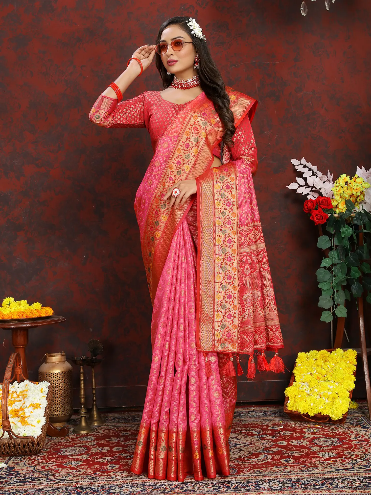 Attractive Weaving Work Patola Silk Festive Wear Saree With Tassels Pallu
