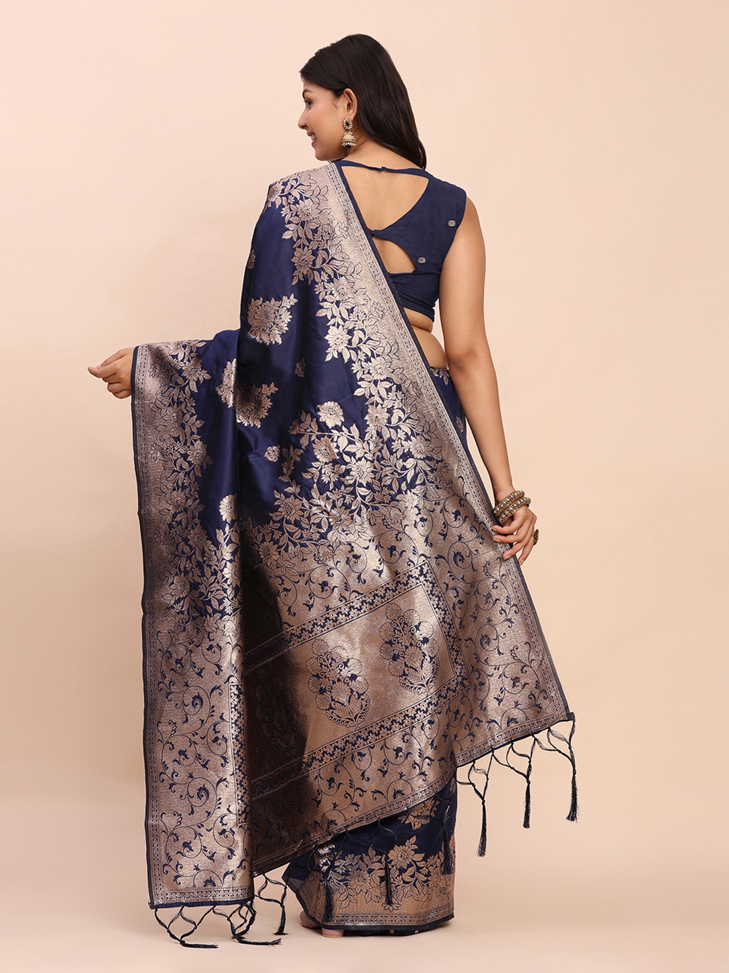 Floral Motifs Banarasi Silk Saree with Zari Woven Border and Tassel Rich Pallu