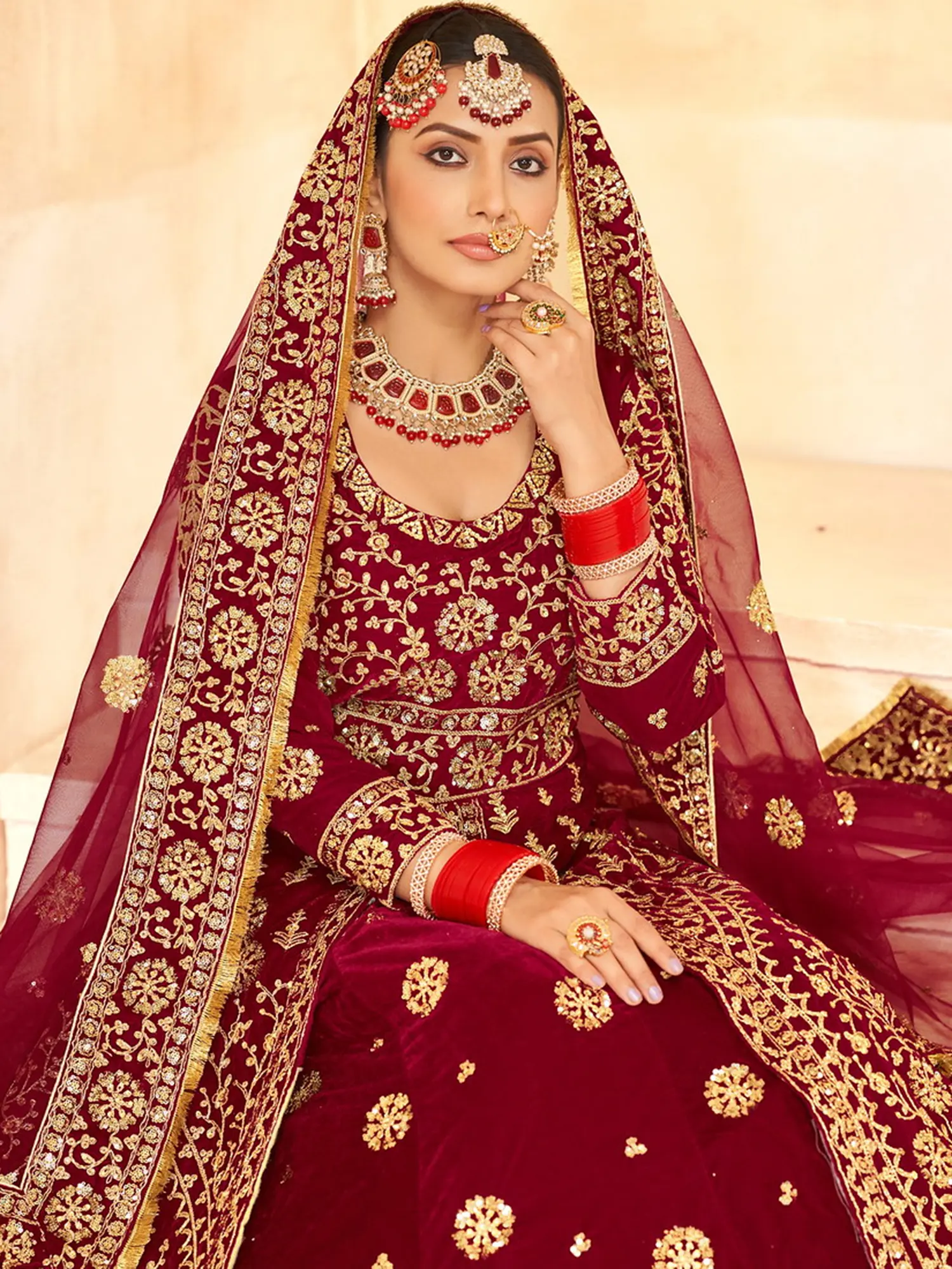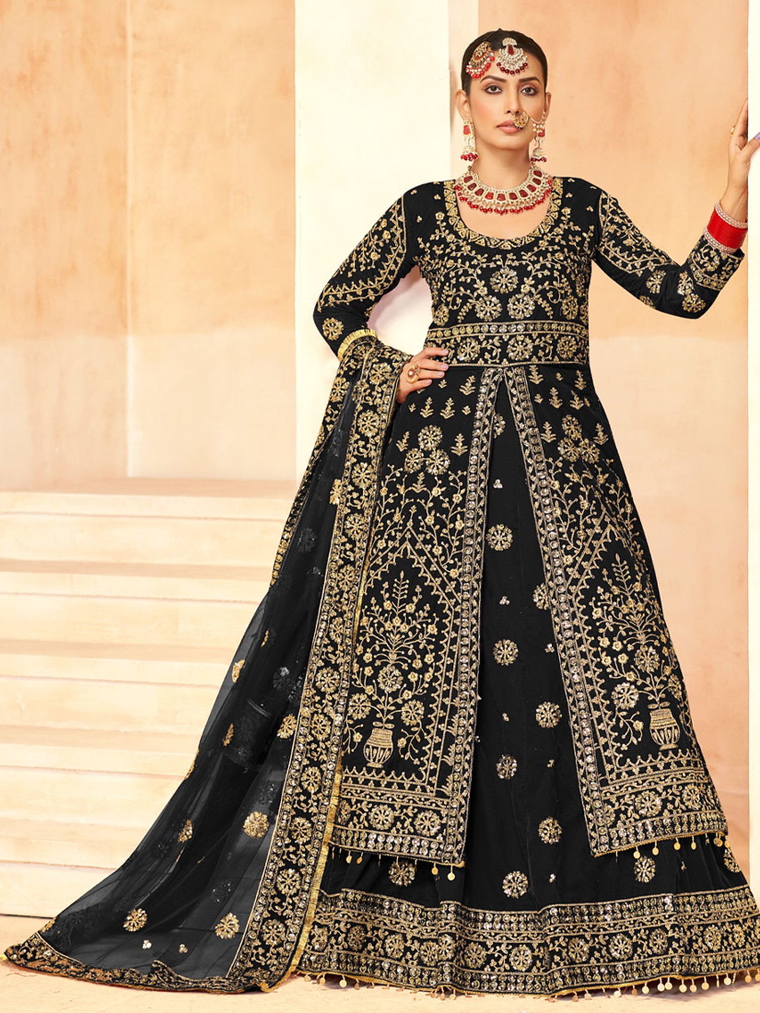 Chinon Pleated Anarkali Gown with Thread-Sequins Embroidery and Dupatta