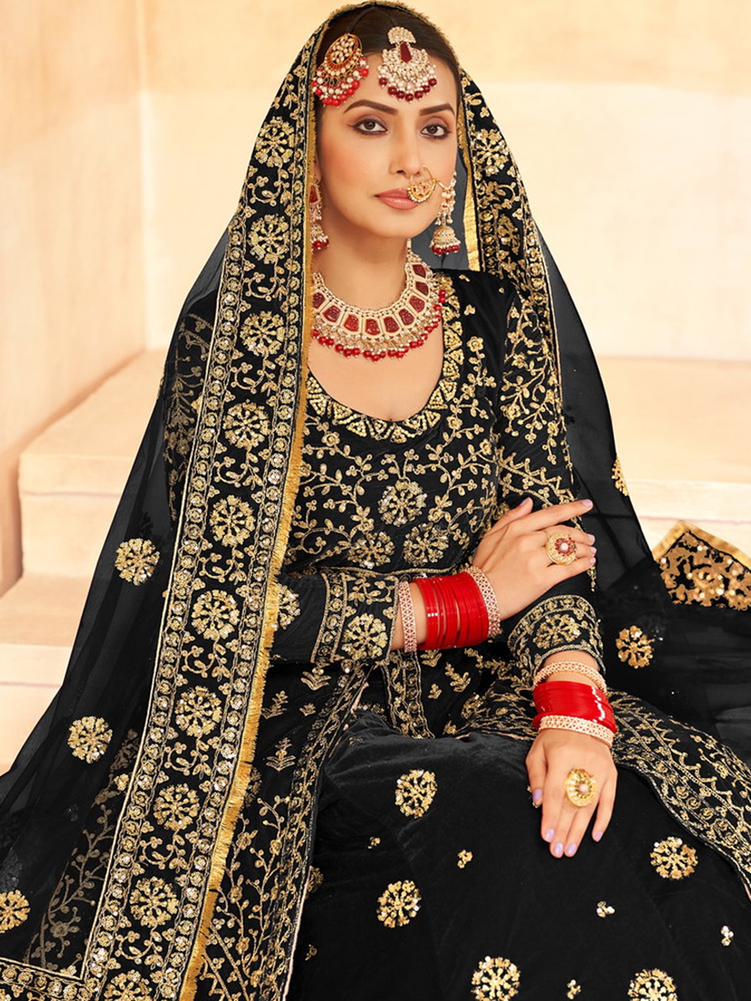 Georgette Laddi Pattern Anarkali Gown with Sequins-Thread Embroidery and Matching Dupatta