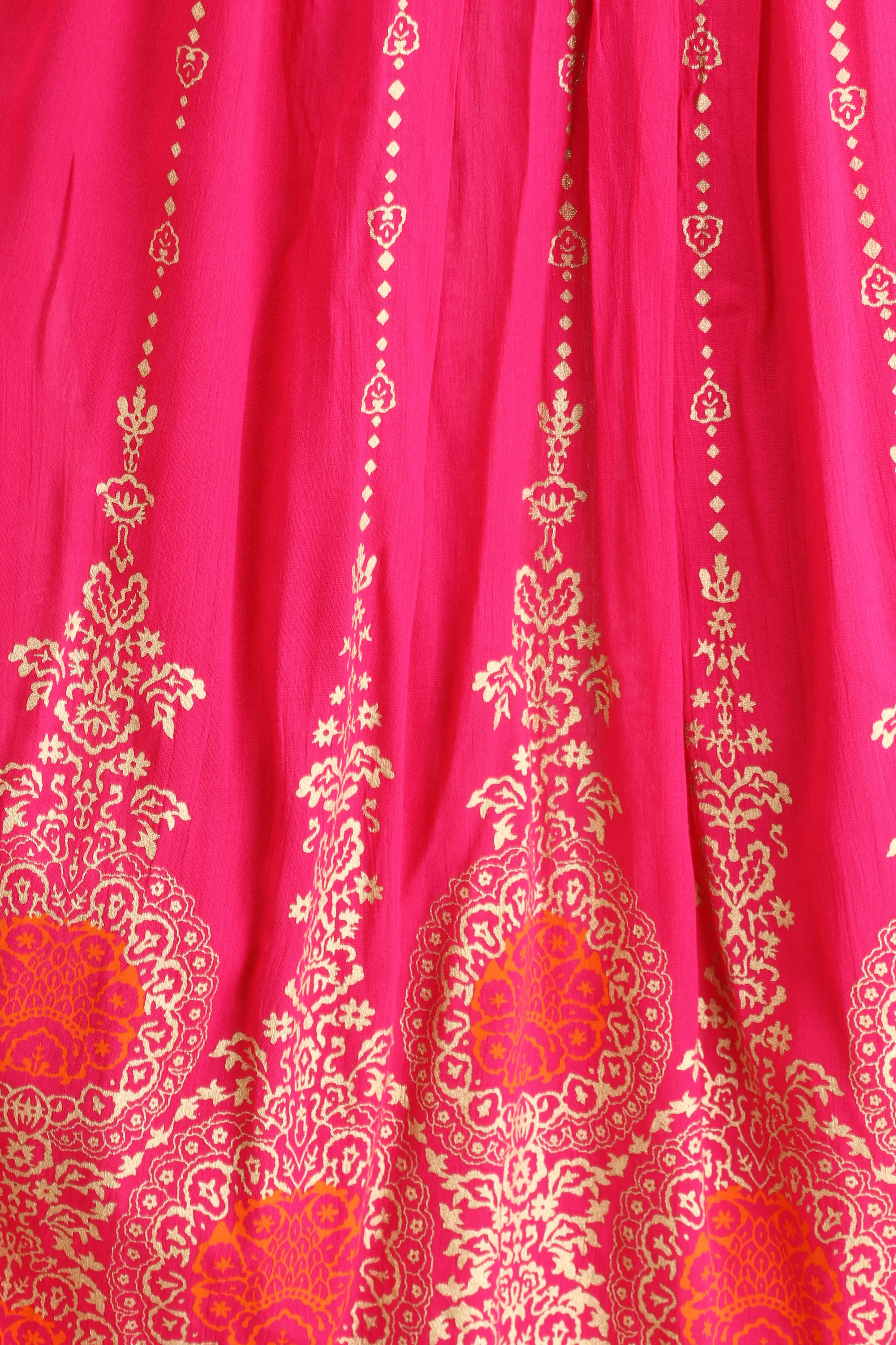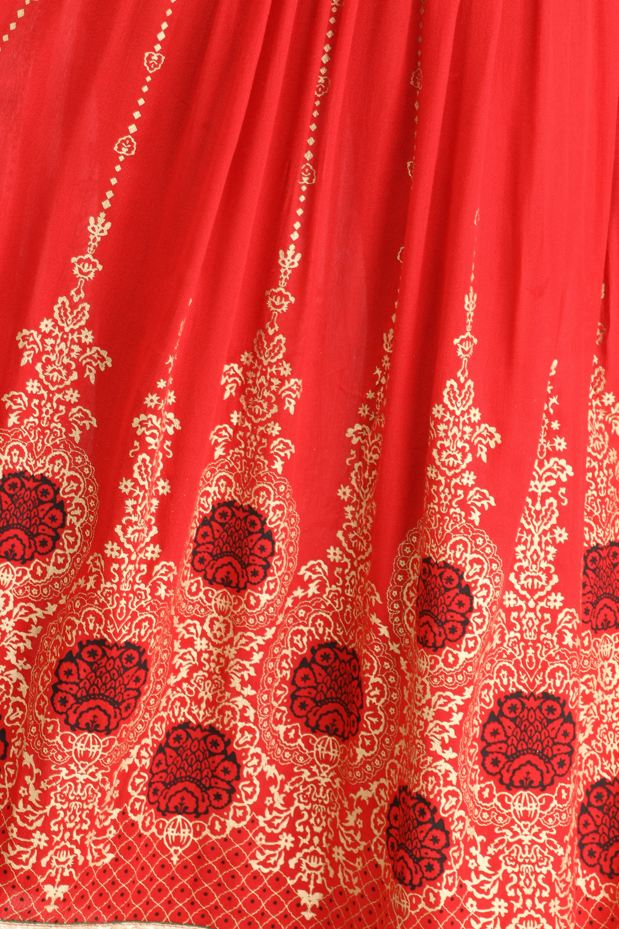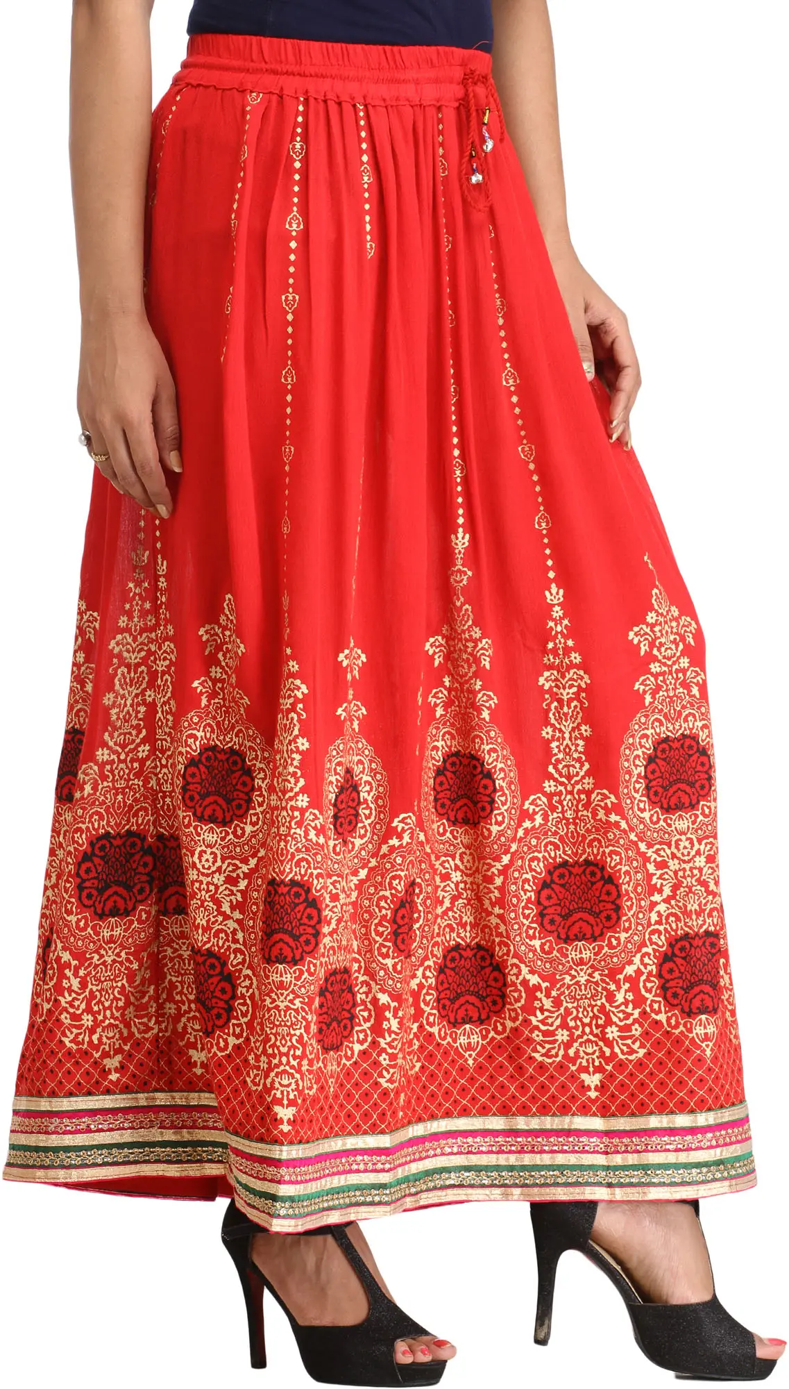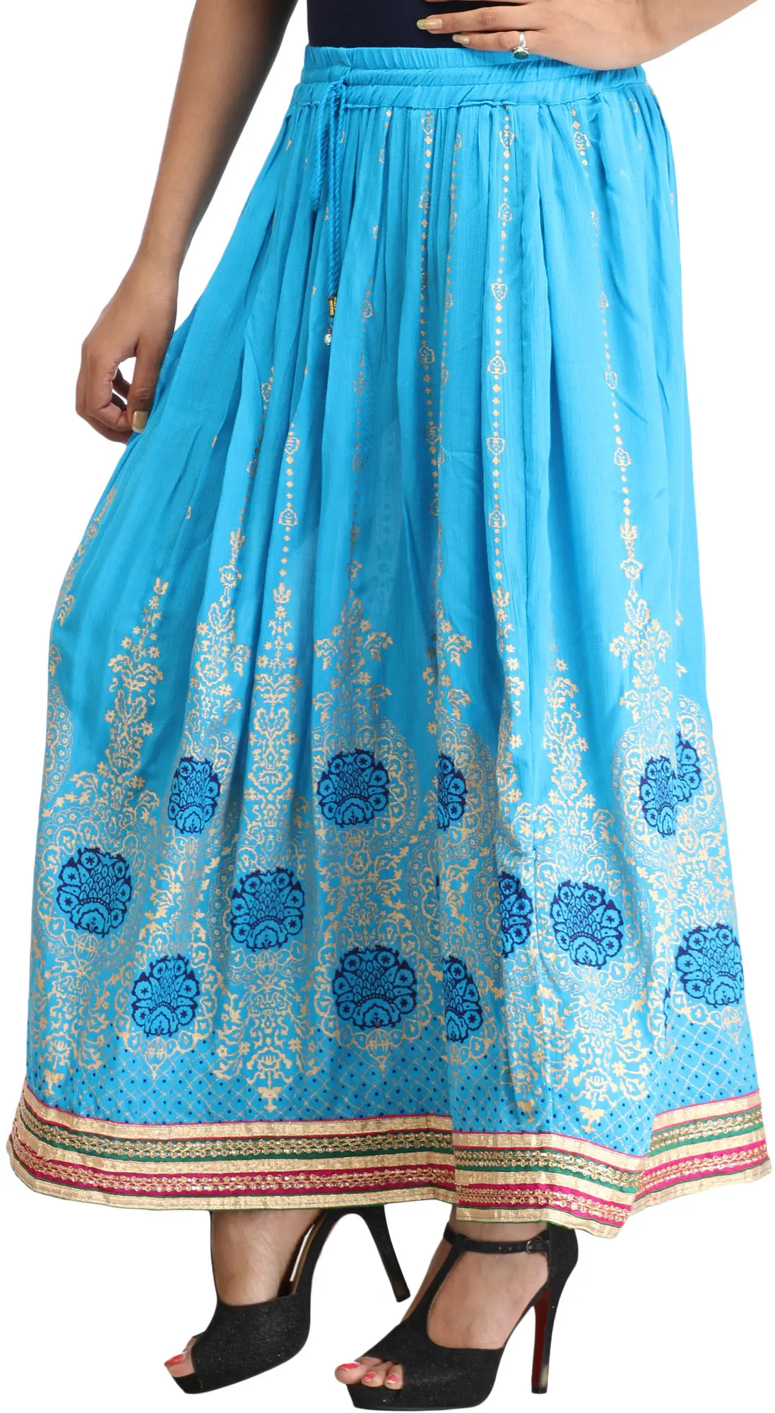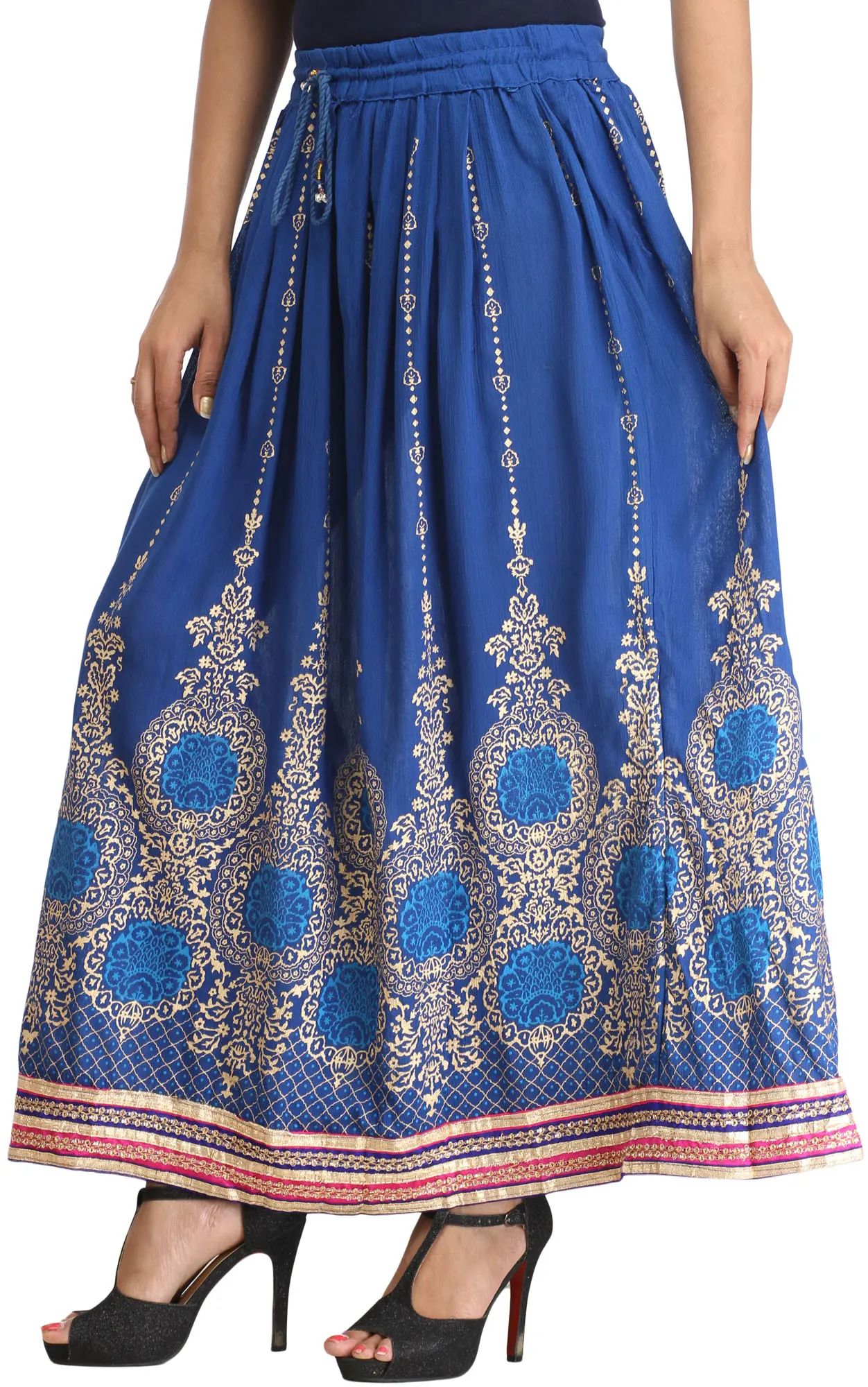 This Embellished Long Skirt with Golden Print and Embroidered Patch Border offers a unique approach to style and unparalleled comfort. The golden print adds a touch of opulence and glamour to the skirt, elevating its aesthetic appeal. Additionally, the embroidered patch border adds intricate detailing and texture, enhancing its visual interest.