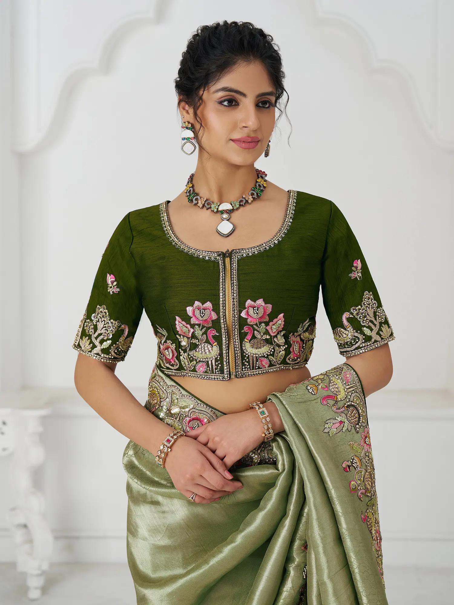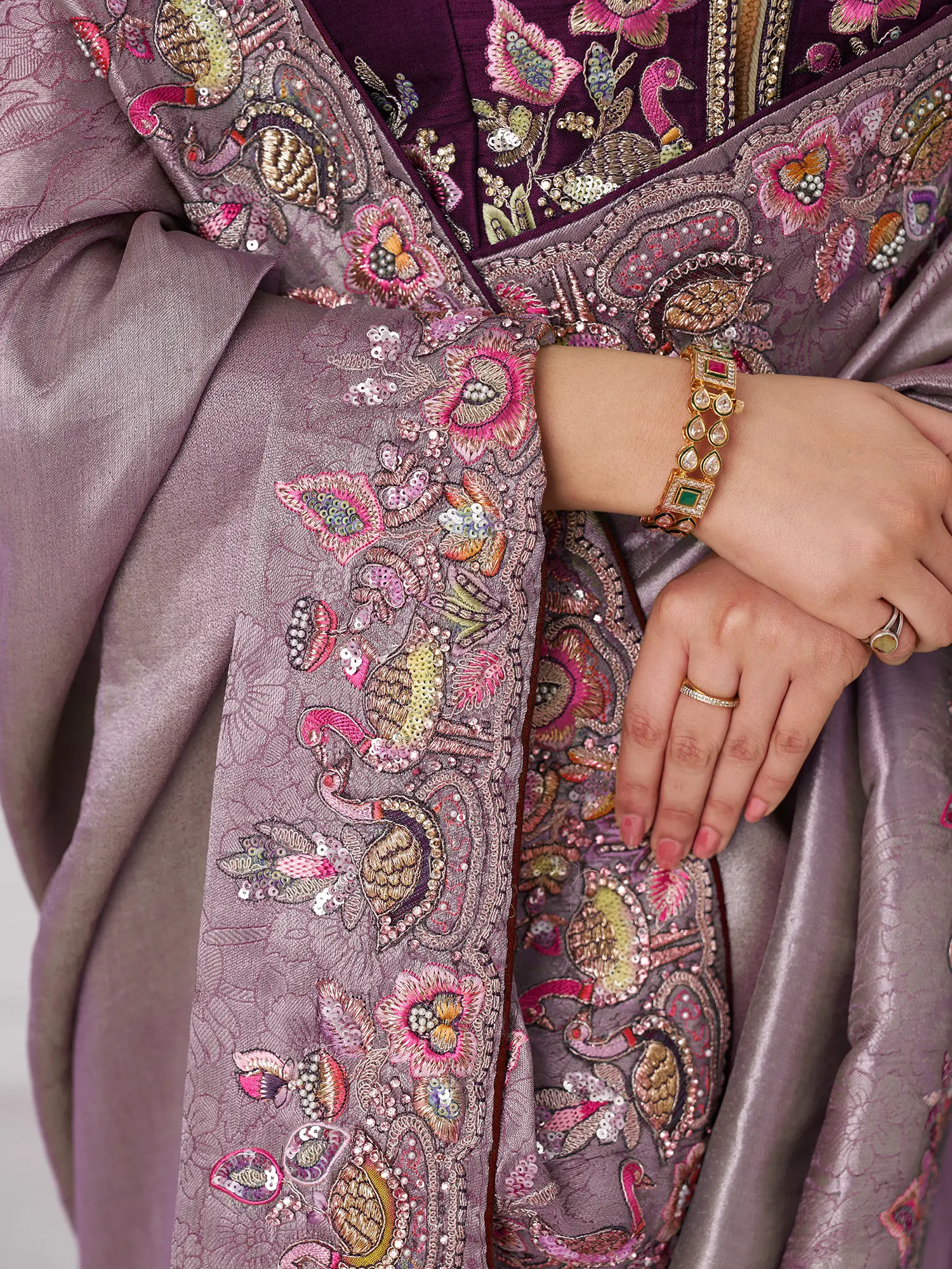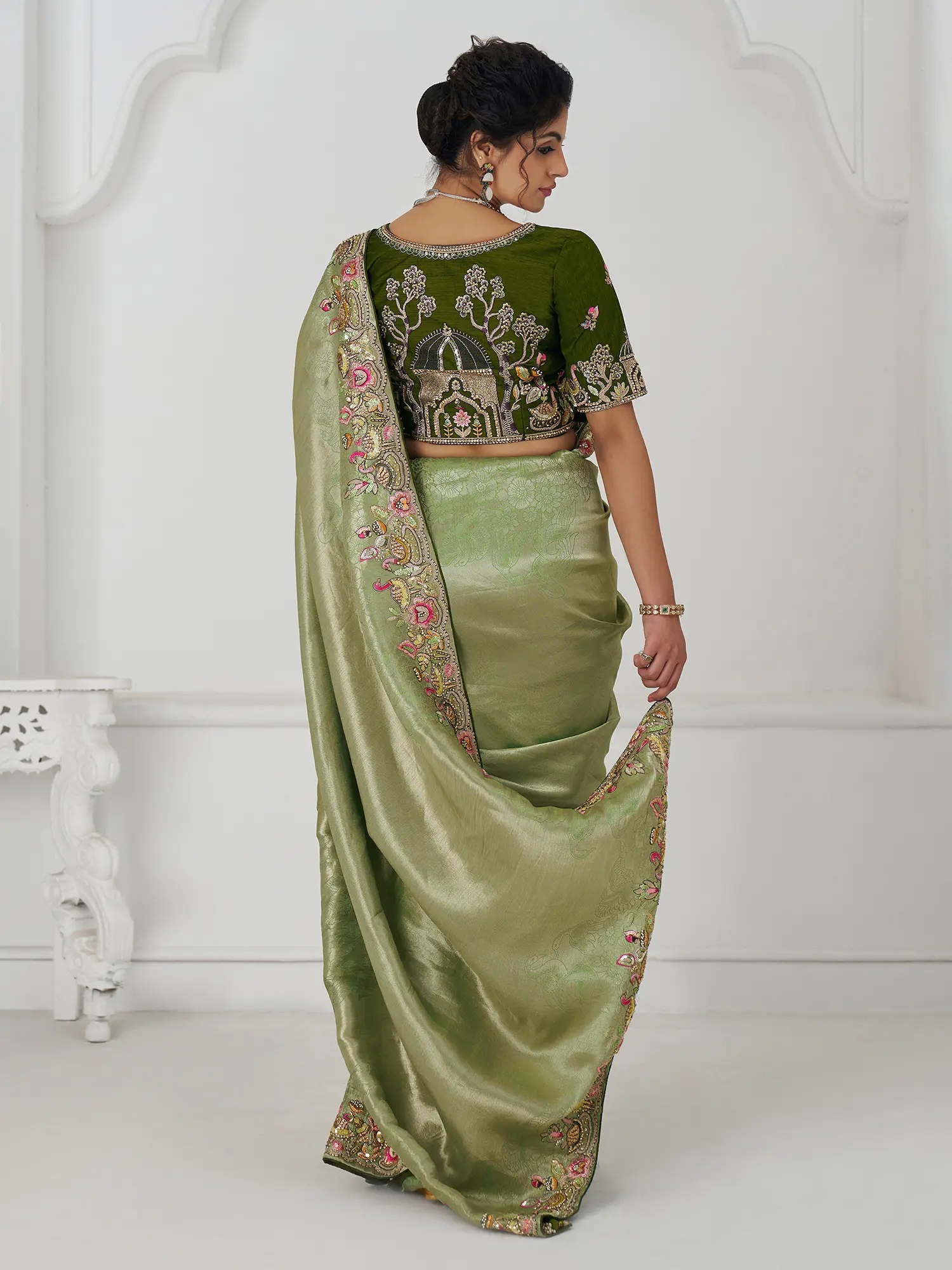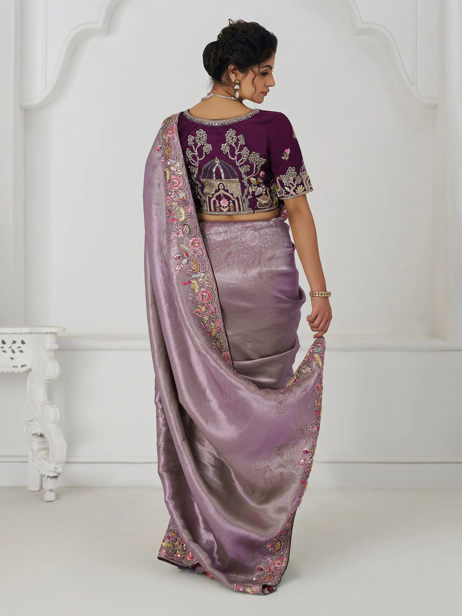 Summer-Melon Flared-Palazzo Salwar Kameez Suit with Zari-Woven Florals and Motifs