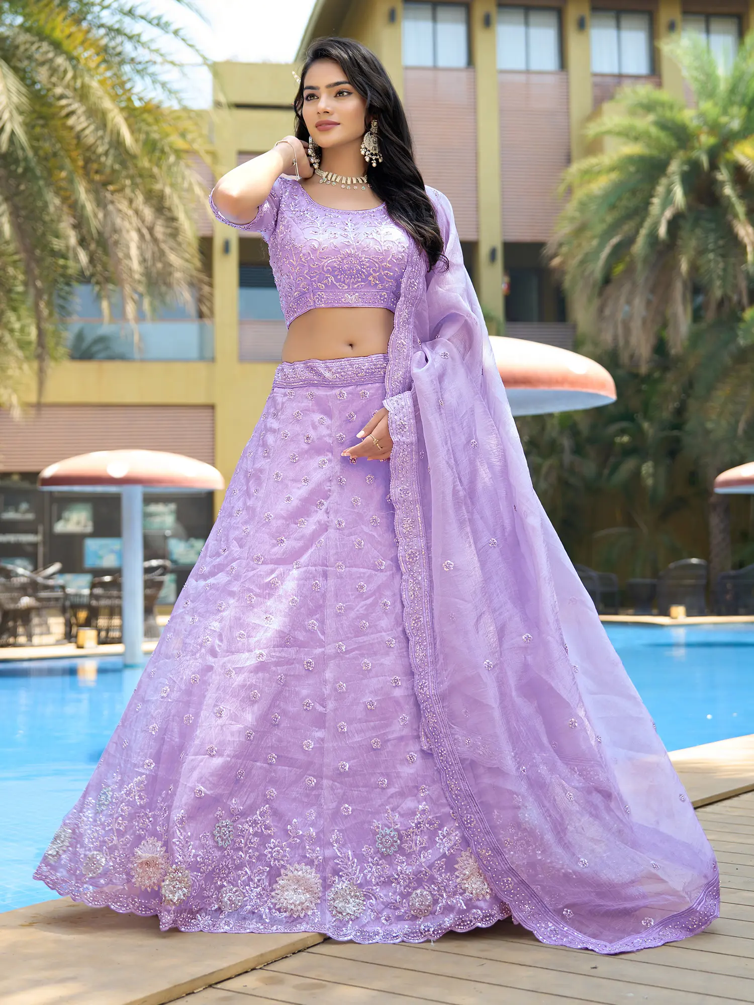 Floral Heavy Embroidery And Sequins Work Embellished Silk Lehenga Choli With Soft Net Dupatta