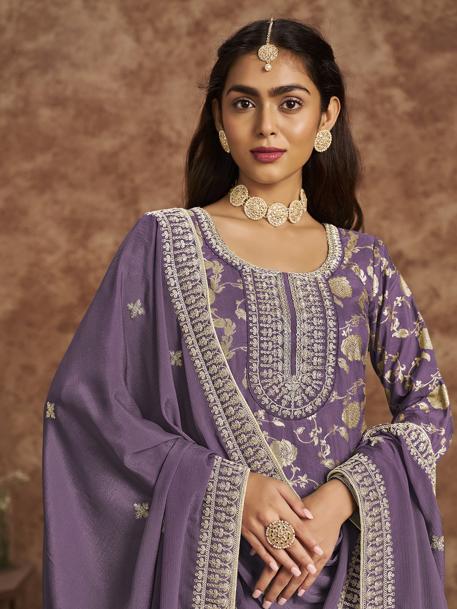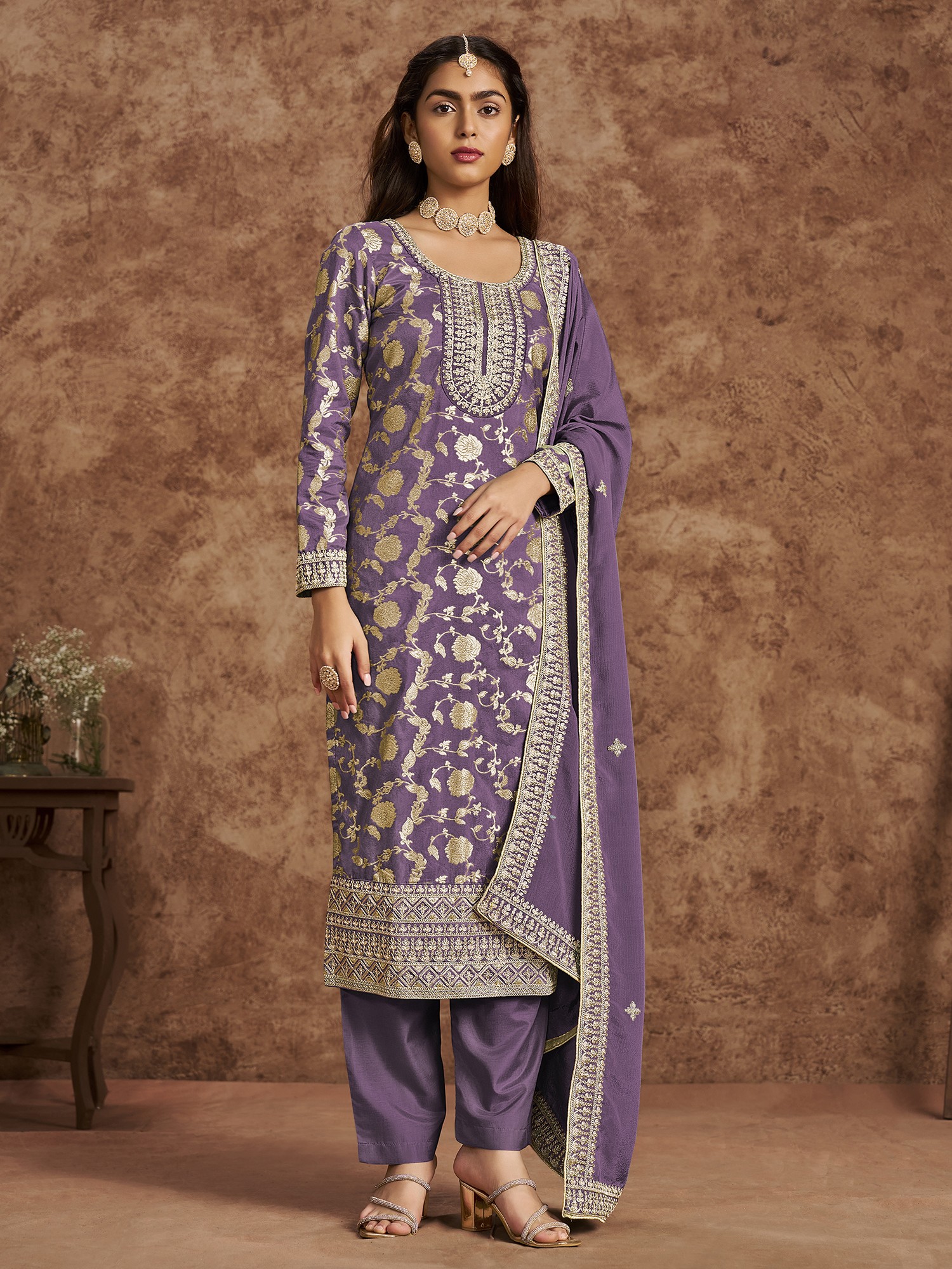Cameo-Rose Salwar Suit with Aari Embroidered Bootis and Dupatta