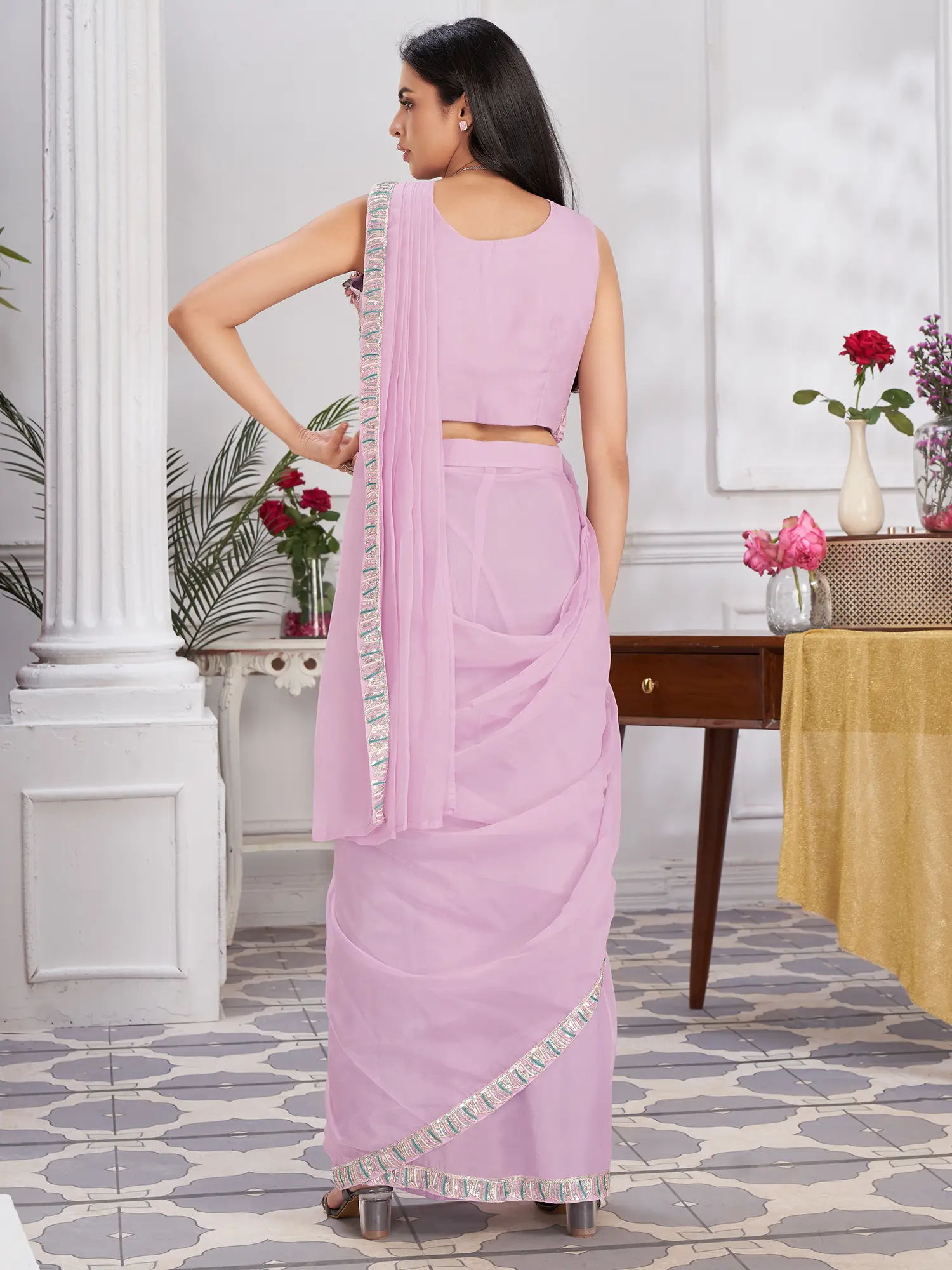 Spectra-Green Georgette Saree from Kashmir with Aari Embroidered Floral Motifs