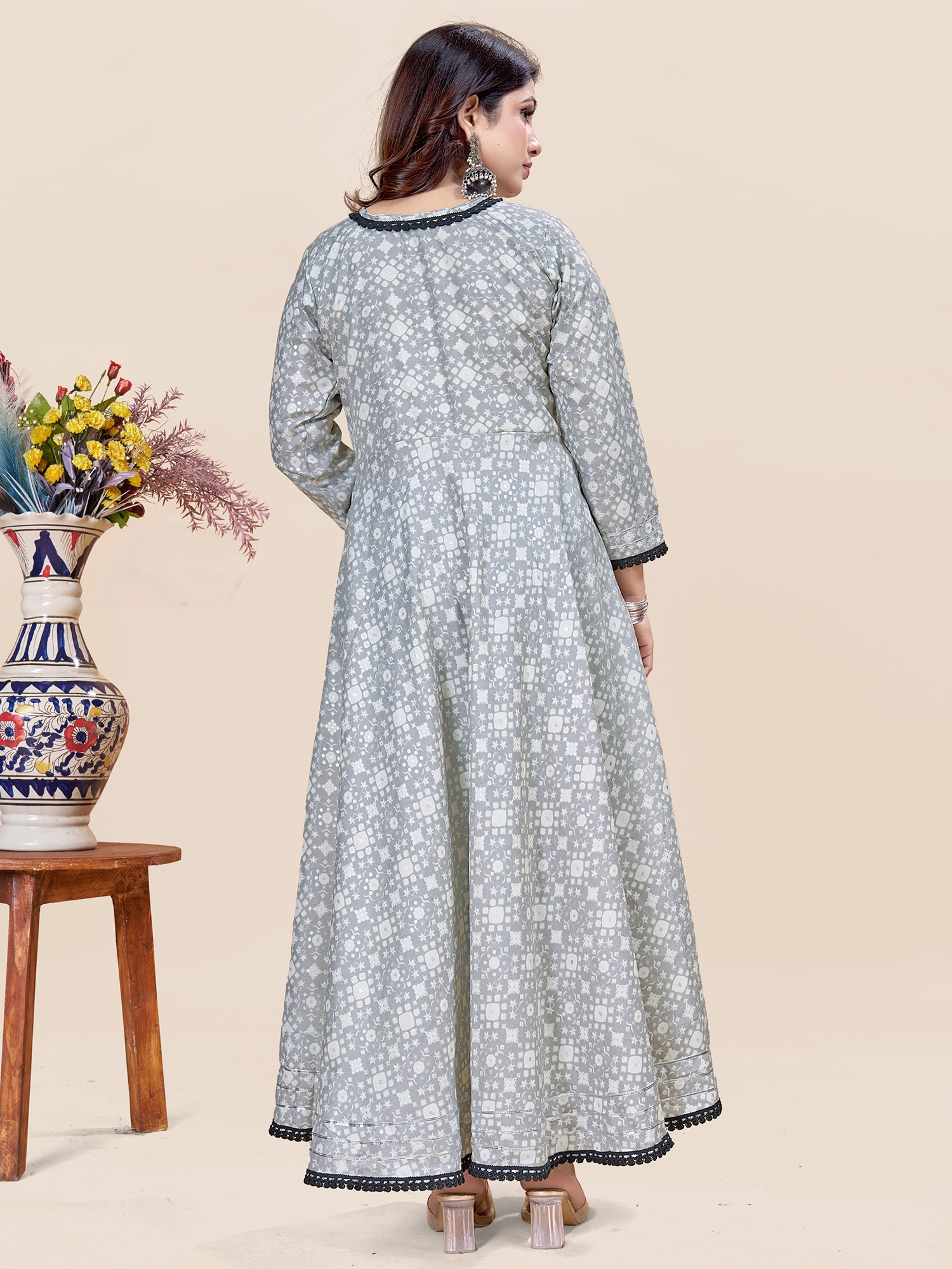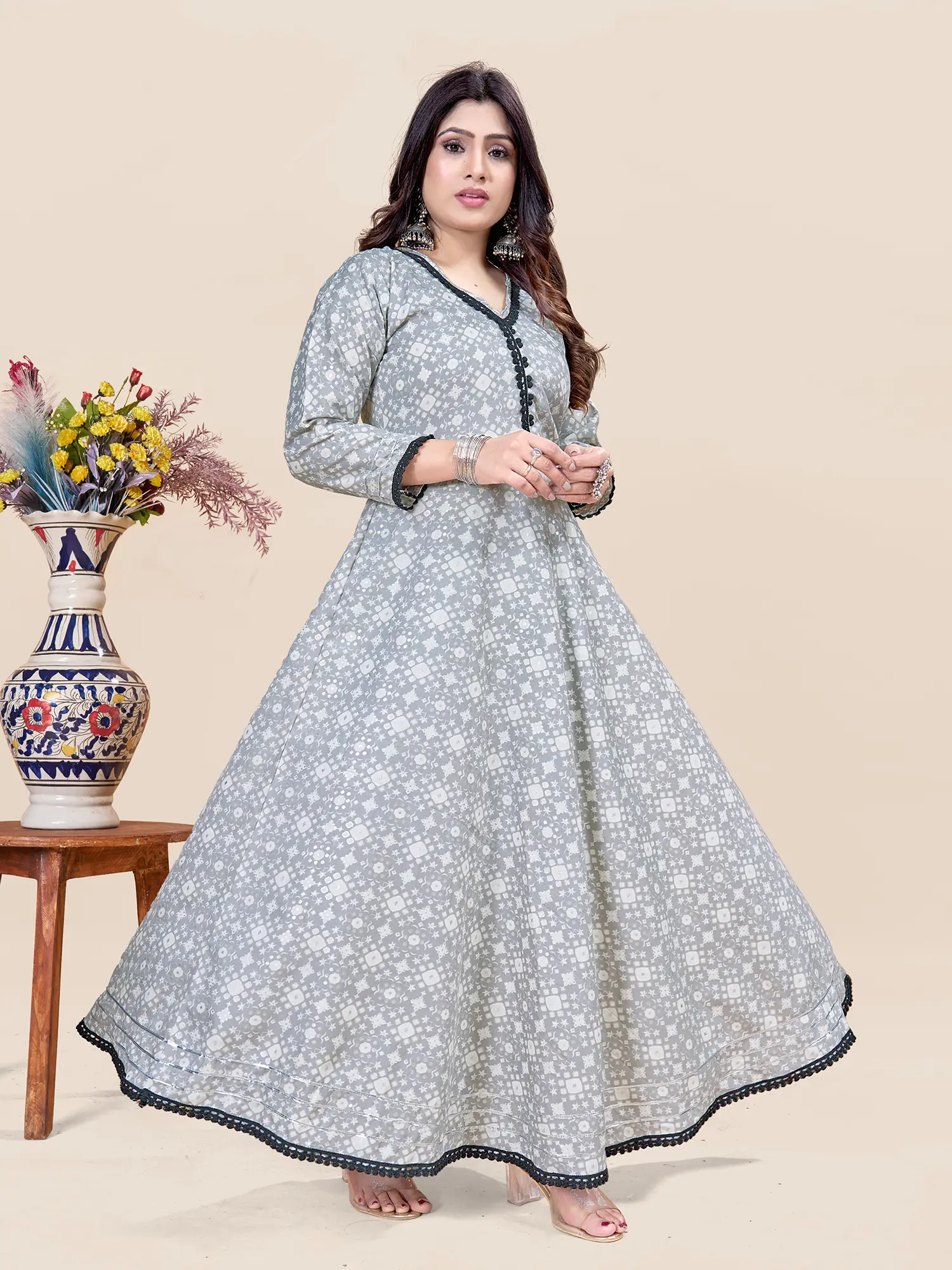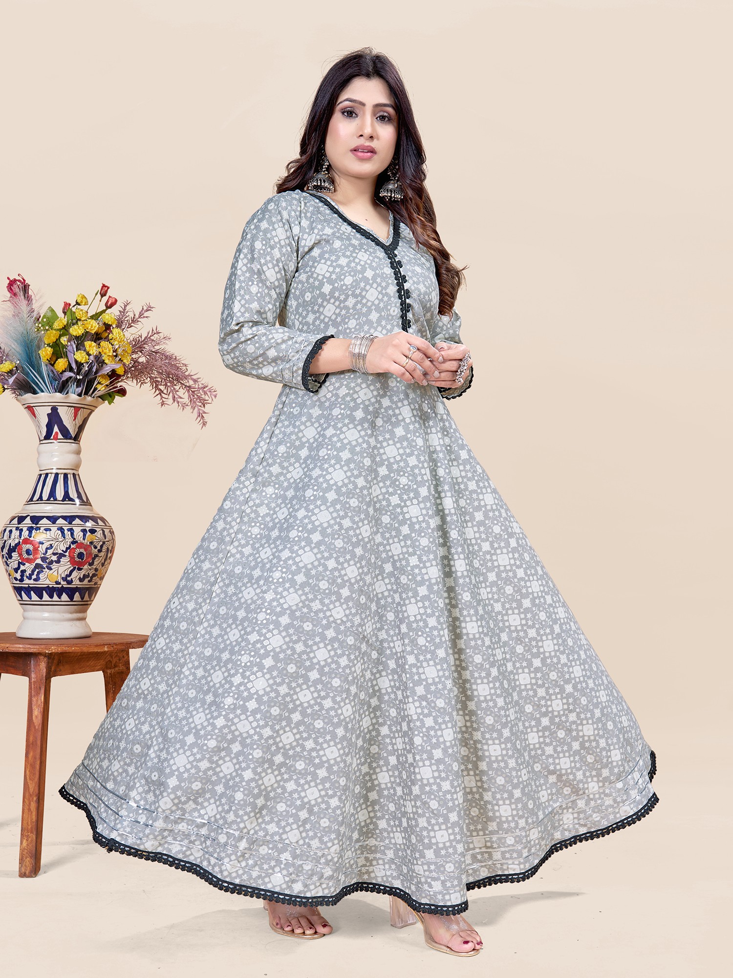 Embroidery Work And Digital Print Rayon Designer A-Line Party Wear Gown