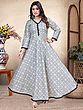 Designer Chinon Floral Print And Thread Embroidery Work Anarkali Gown For Casual Occasion