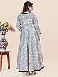 The gown features intricate details that enhance its overall charm. A delicate embroidery embellishes the neckline, adding a touch of texture and visual interest. Notice the refined touch of the delicate trim along the hem and cuffs, adding definition and a polished finish. The digital print adorning the fabric displays a subtle pattern adding depth and dimension to the design. The color palette is versatile and easy to accessorize, allowing you to create a personalized look that reflects your individual style. Pair it with delicate jewelry and heels for a glamorous ensemble, or dress it down with flats for a more relaxed yet equally chic look. This gown is a versatile addition to your wardrobe, ready to elevate your style for any occasion.