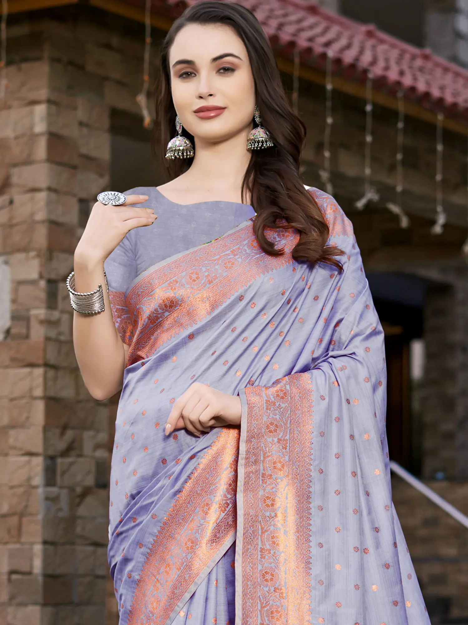 Methyl-Blue Art Silk Saree from Chennai with Brocaded Zari Bootis All-Over