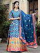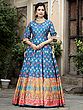 Dark-Aqua Small Motifs Lace Work Anarkali Crepe Kurta With Straight Pant And Attractive Dupatta