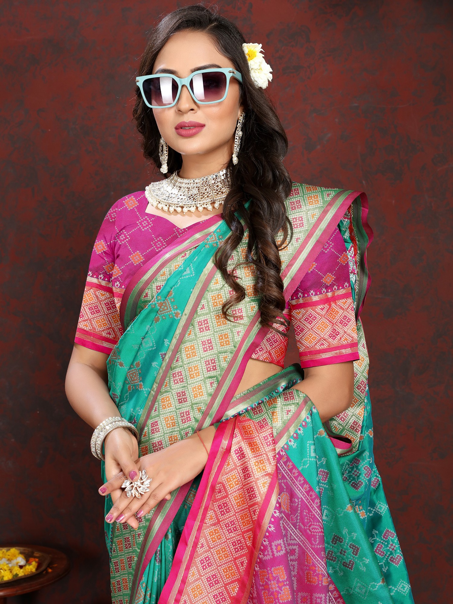 Crafted from luxurious silk, this saree drapes beautifully, offering both comfort and an unparalleled aesthetic. Its lustrous sheen and soft texture make it an ideal choice for festive occasions, weddings, parties, and cultural gatherings. The vibrant color palette and intricate ethnic work ensure that you stand out with grace and poise. Pair it with traditional jewelry and complementary accessories to create a look that is both contemporary and deeply rooted in tradition. This saree is more than just an outfit; it's an heirloom, a piece of art that embodies the spirit of celebration and festivity.